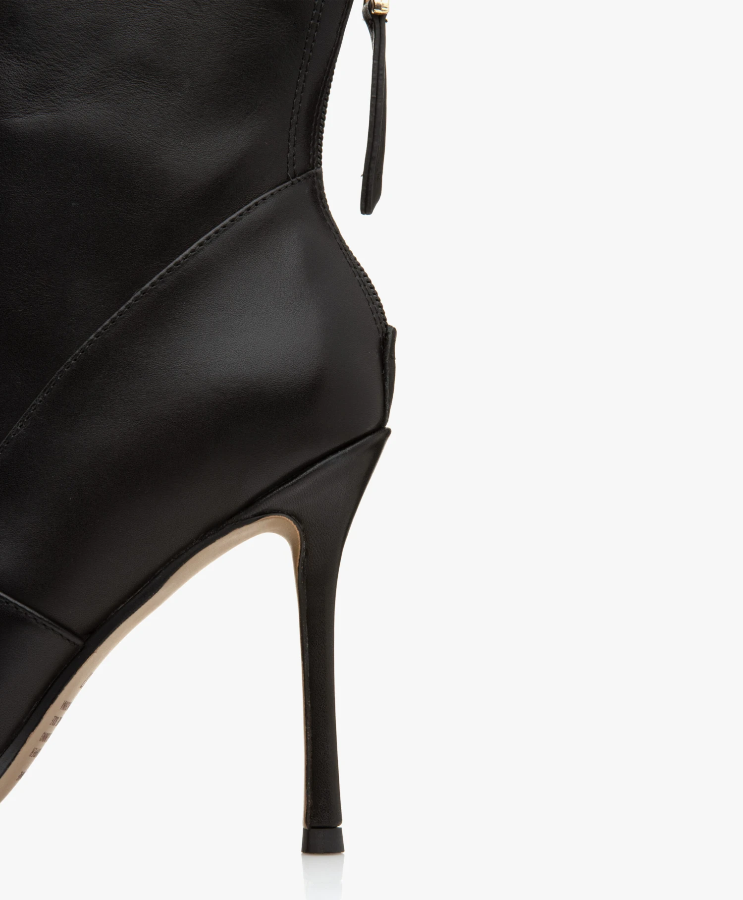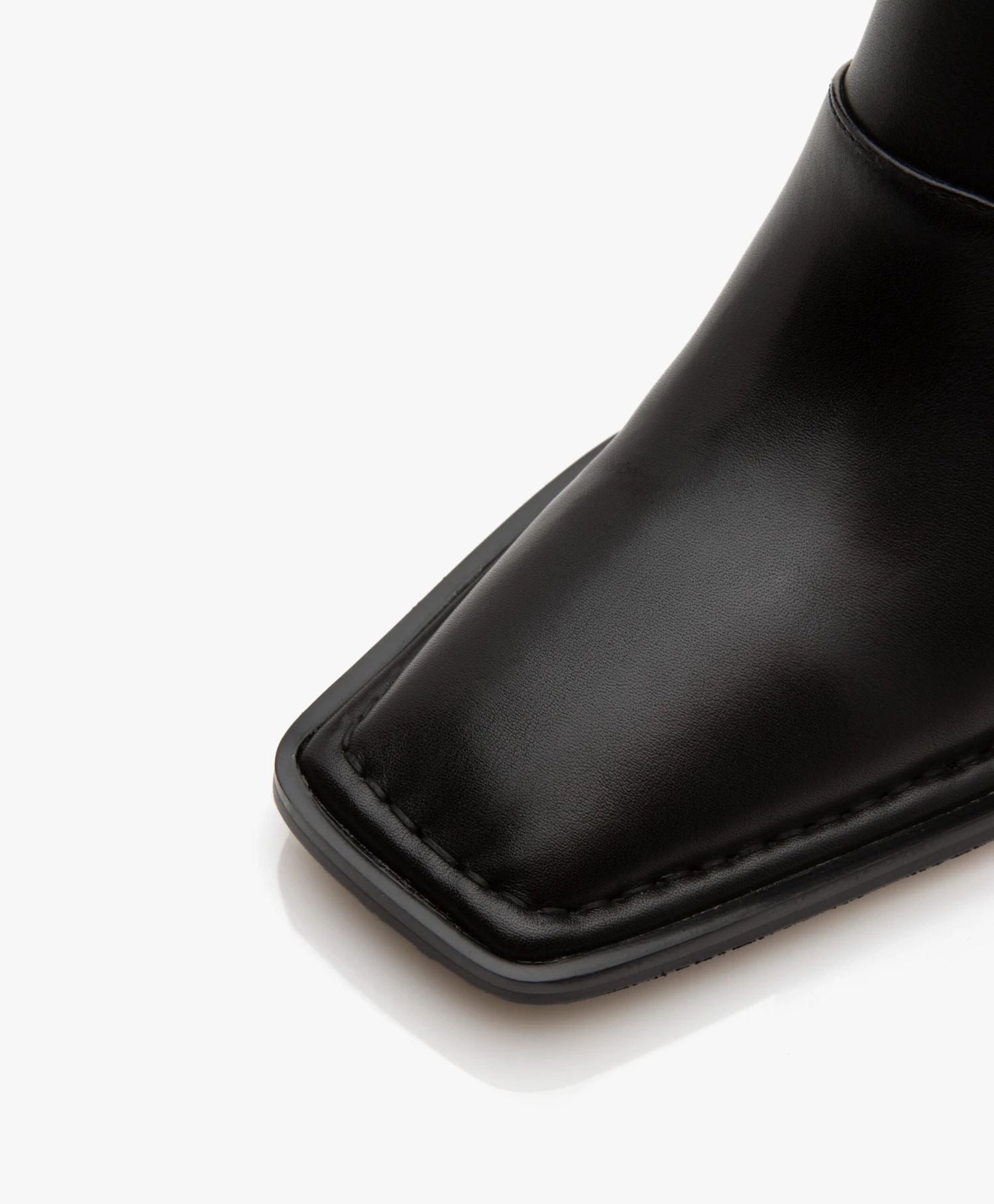 Alias Mae heeft het begrip ‘stijlvol’ uitgevonden, als je het ons vraagt. De zwarte Abbie laarzen presenteren een unieke mix aan stijlelementen die menig hoofd zal doen draaien als je deze draagt. Gemaakt van soepel en glad leer en voorzien van decoratieve deelnaden, een vierkante neus met grove sierstiksels langs de zool en een stilettohak waar je U tegen zegt.