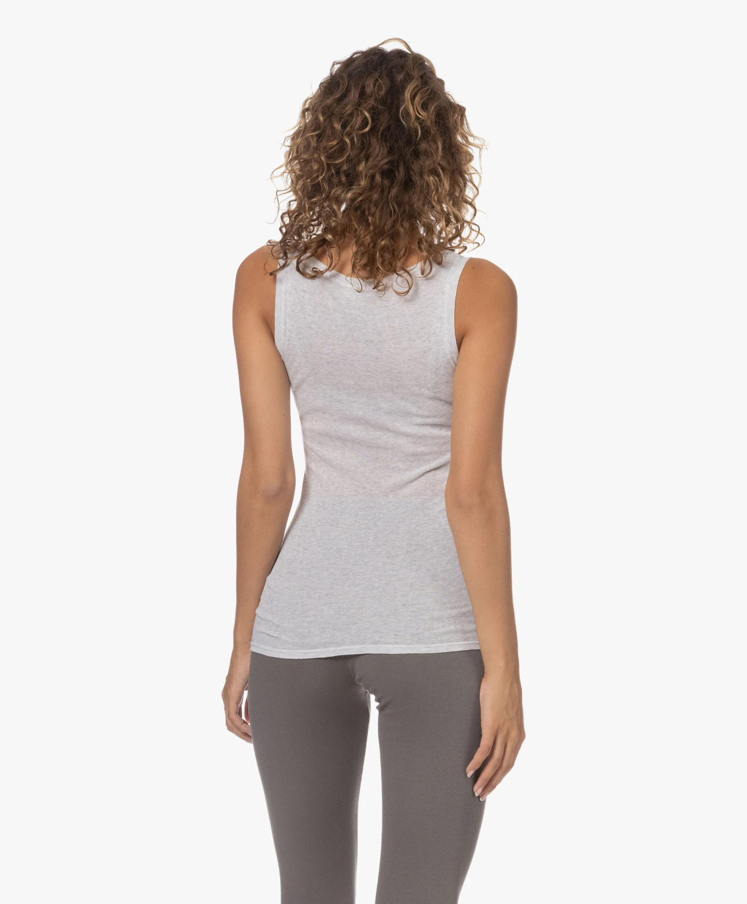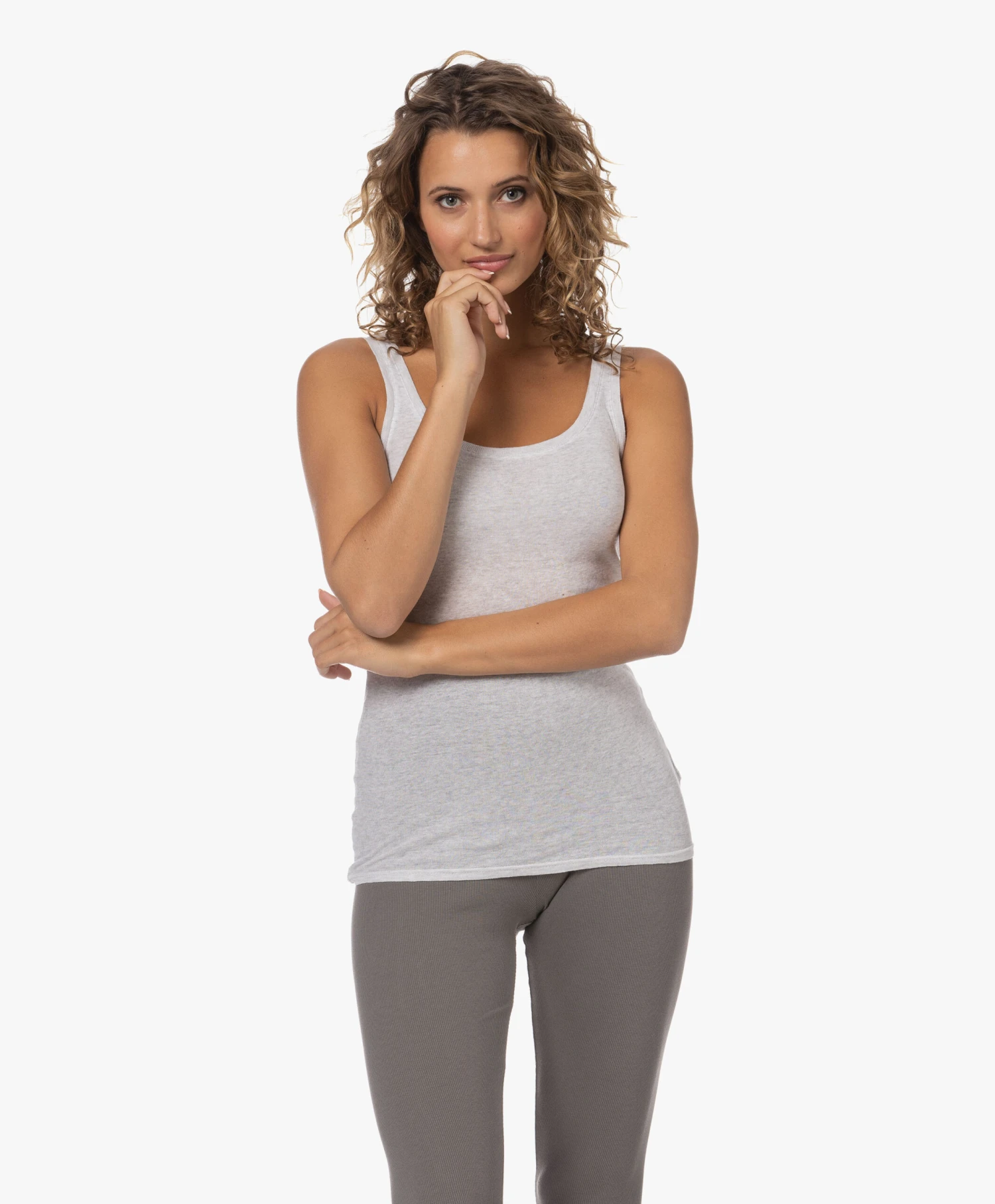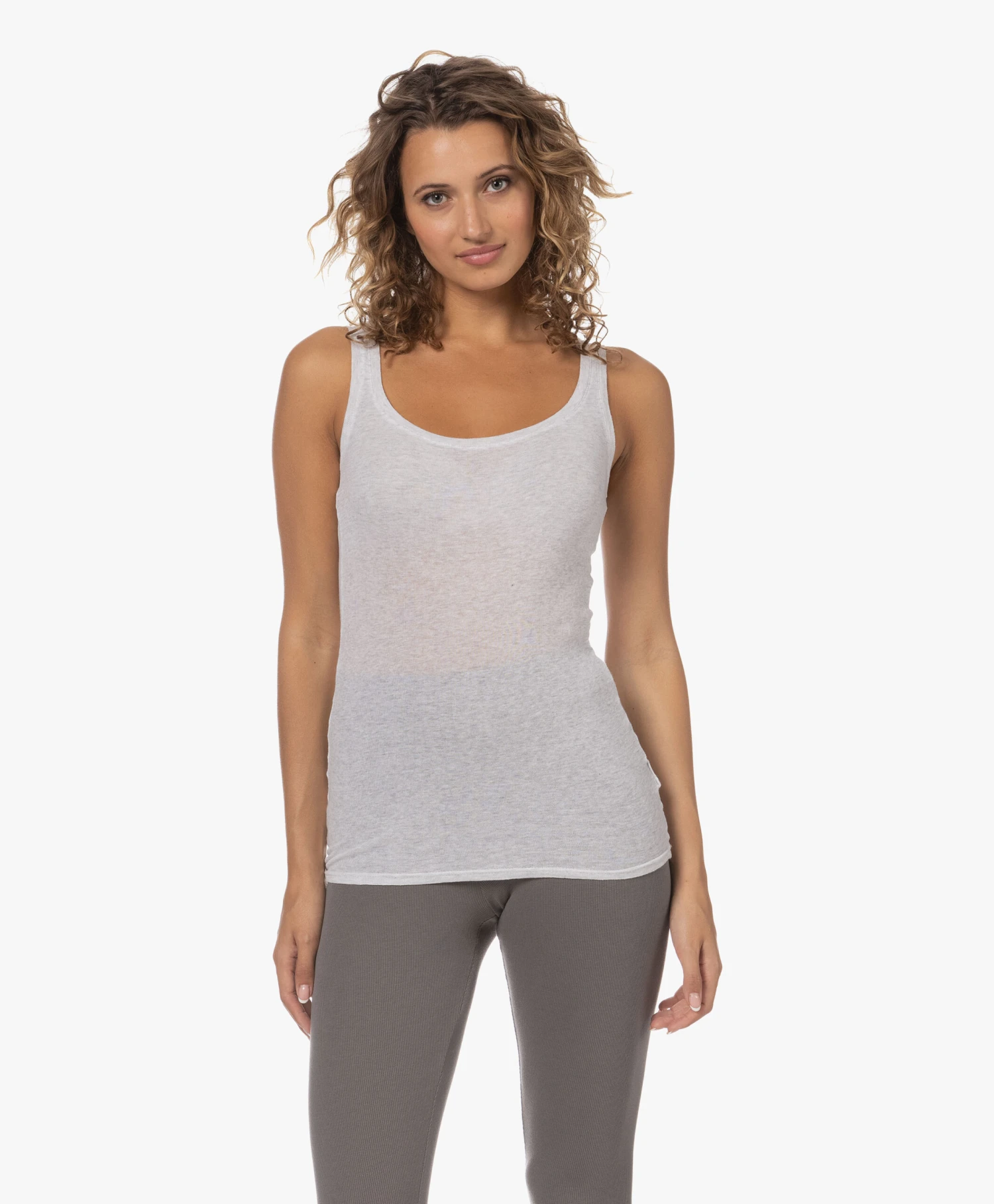 Second skin ronde hals Massachusetts tanktop van American Vintage in Supima katoen. Deze lichtgrijze mêlee tanktop is gemaakt van een iets transparante, zachte en lichtgewicht rib jersey kwaliteit – een comfortabele basis voor verschillende looks!