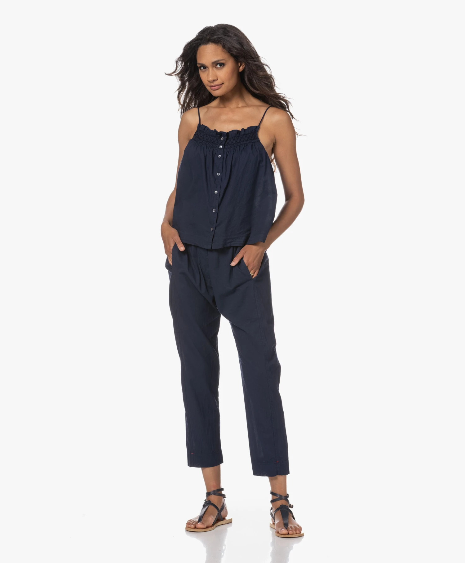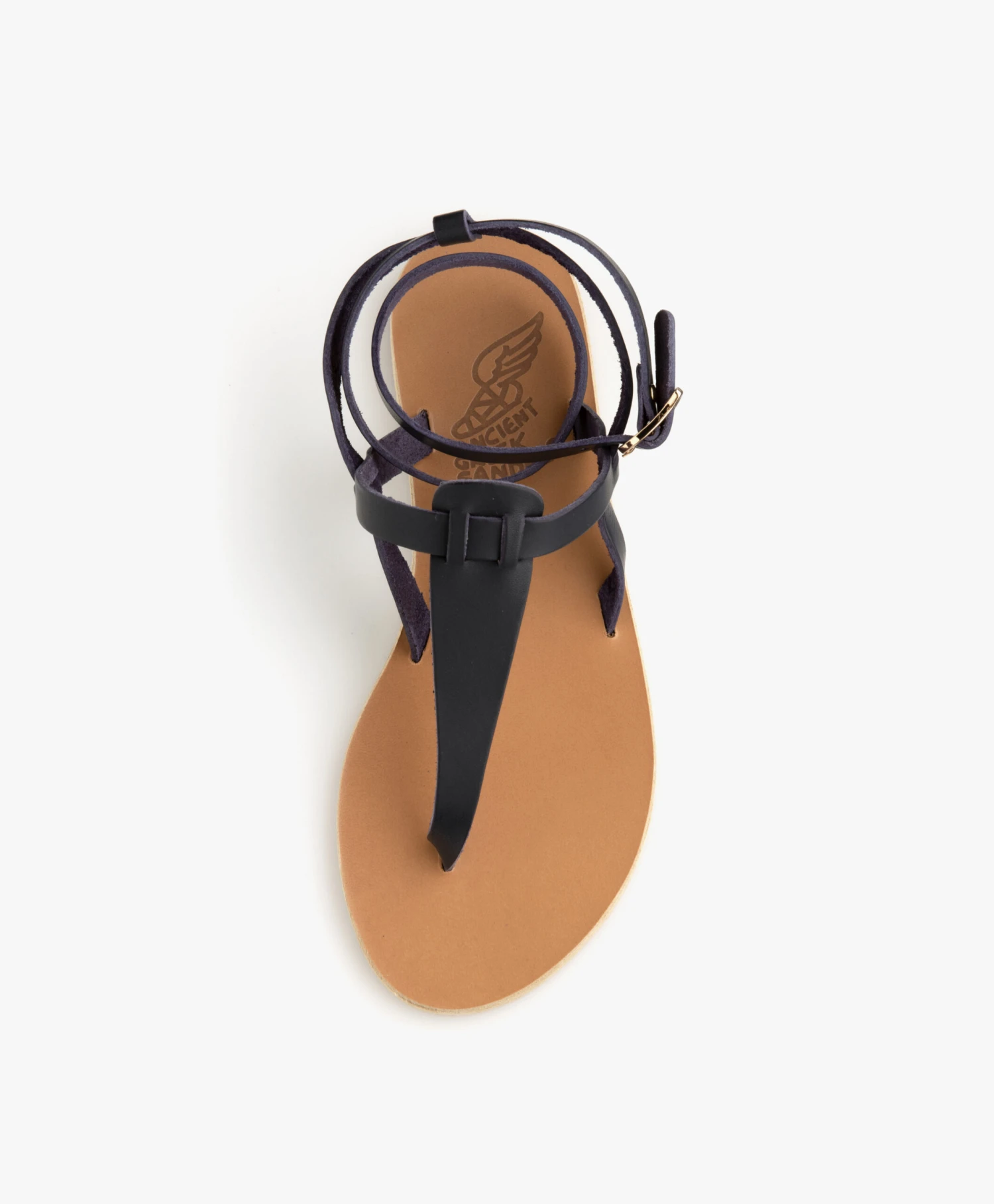 Deze donkerblauwe Estia sandalen van Ancient Greek Sandals zijn eenvoudig en klassiek in design, maar dat betekent niet dat het merk details achterwegen heeft gelaten. De handgemaakte sandalen tonen een leren wrap-around enkelbandje met een zijdelingse vleugelvormige gespsluiting als iconisch element. De glad leren buitenzool heeft een lage, gelaagde hak met rubberen onderkant om naast een dosis elegantie ook in comfort te voorzien.