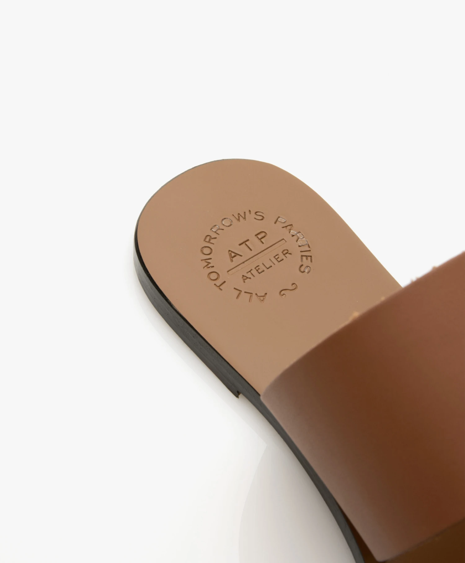 – Lage, gelaagde leren hak, hakhoogte: 1 cm