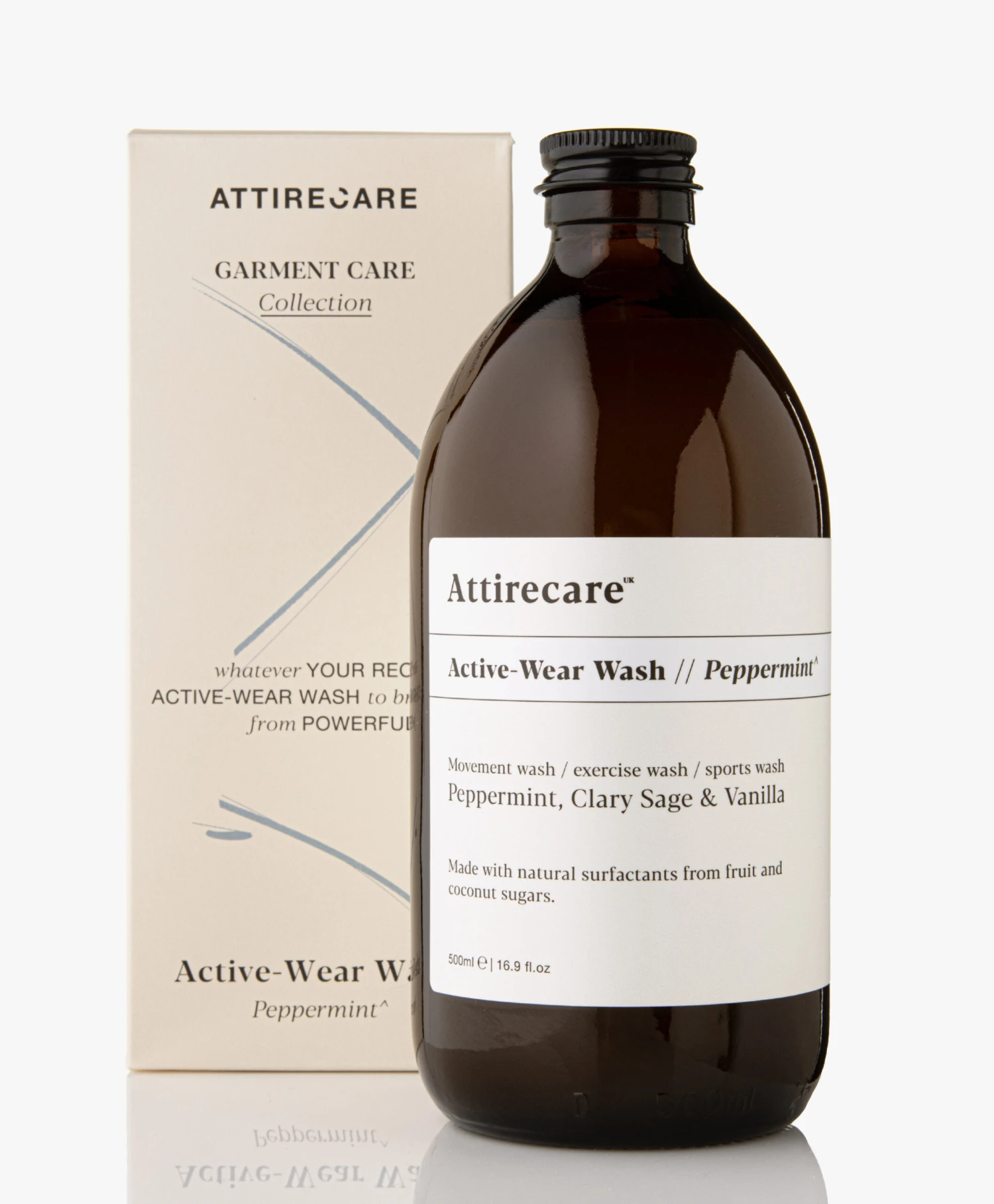 Houdt de ‘high-performance’ vezels van je activewear kleding intact en elimineer sterke geuren met de Active-wear Wash van Attirecare. Dit wasmiddel is plantaardig en ontwikkeld met pepermunt, salie en vanille. Pepermunt is krachtig van nature dankzij de eliminerende eigenschappen. Gecombineerd met de kruidige kracht van salie die favoriet is binnen de Attirecare producten, en vanille voor een verfrissende geur.