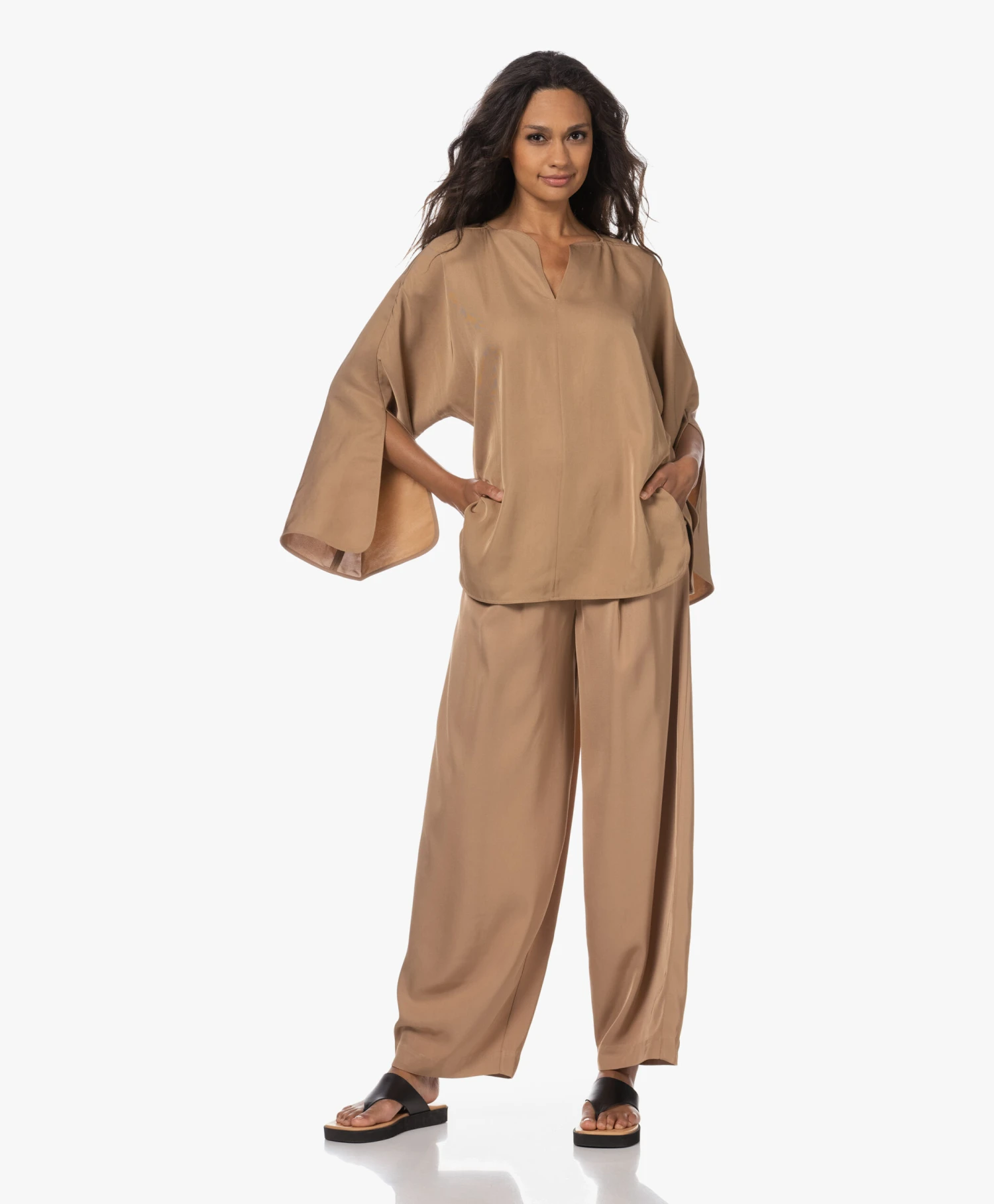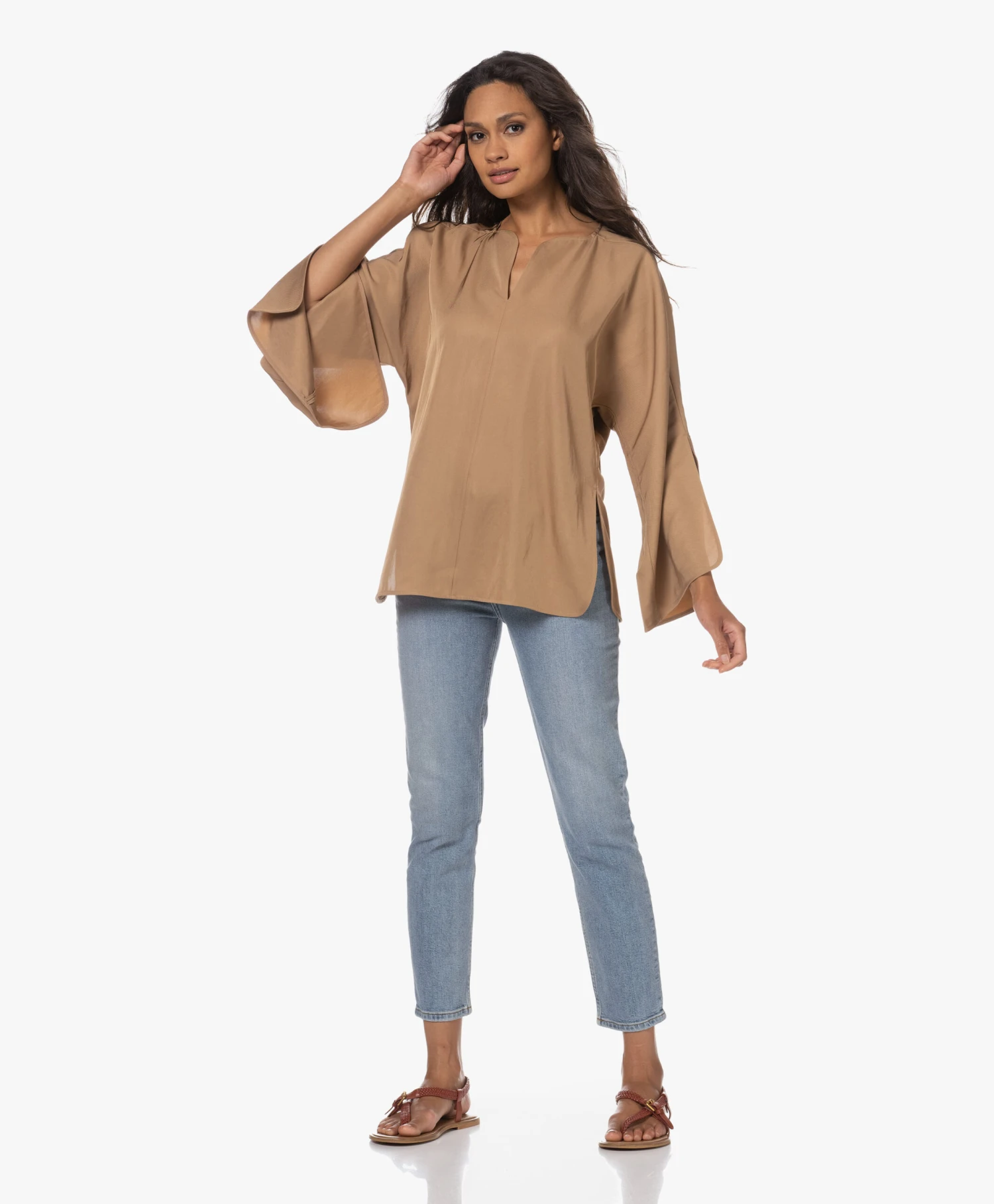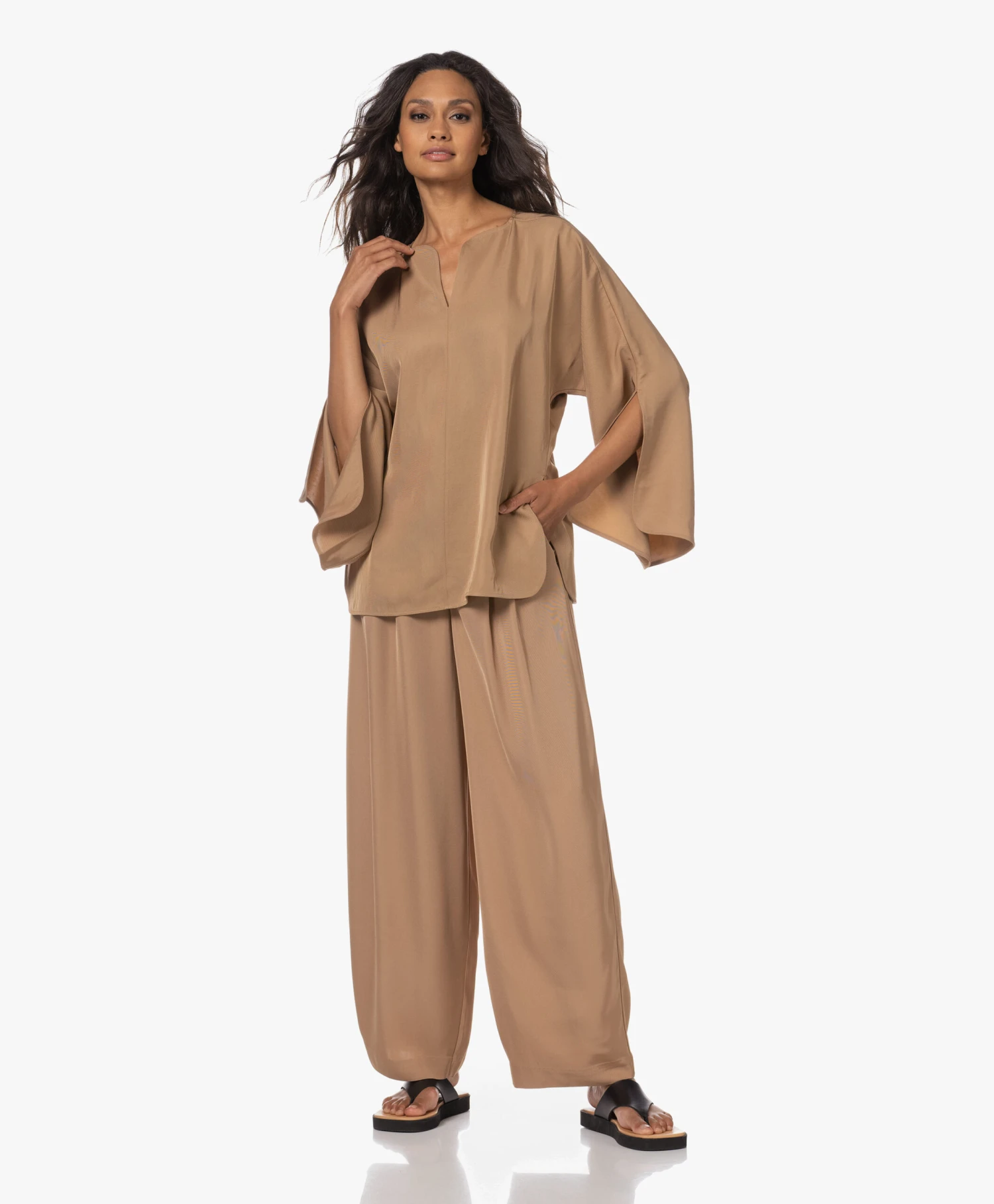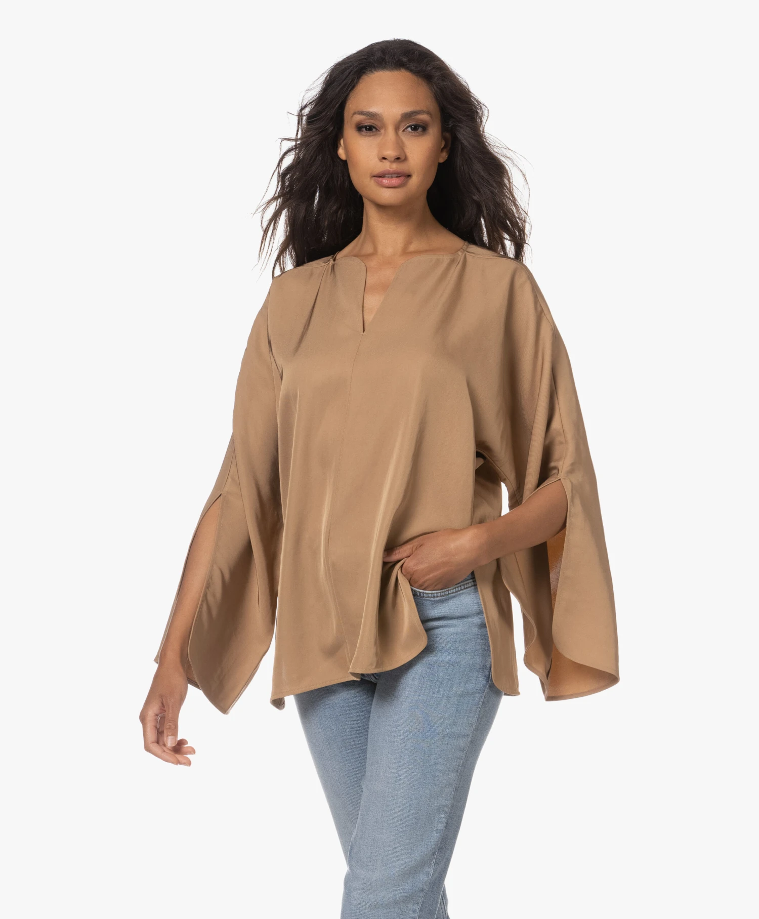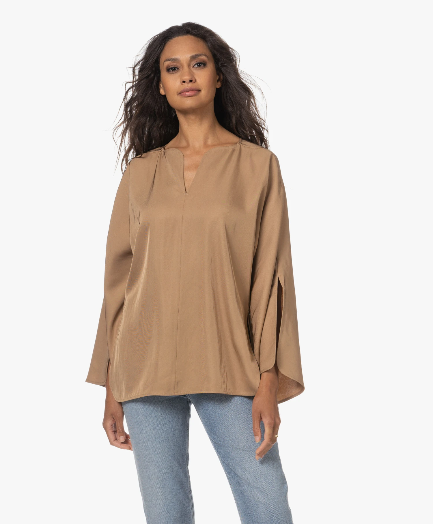 – Ronde hals, V-split