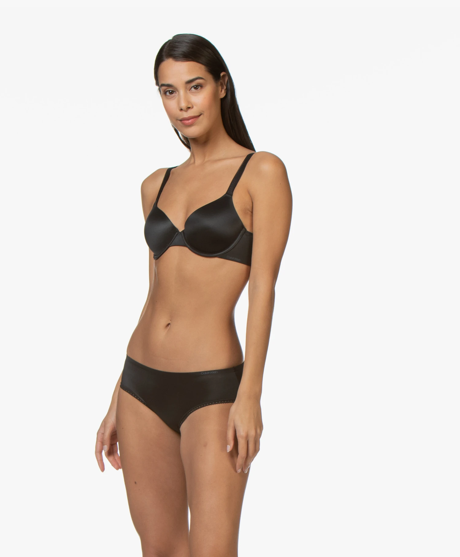 Deze zwarte Lightly Lined BH van Calvin Klein is onderdeel van de Liquid Touch lijn die innovatieve technologie combineert met verleidelijk en eigentijds design. Gemaakt van een subtiel glanzende microvezel jersey kwaliteit met ‘Liquid Siliconen’ technologie die ultieme bewegingsvrijheid biedt en de ondersteuning evenredig verdeelt over de gehele vleugel.