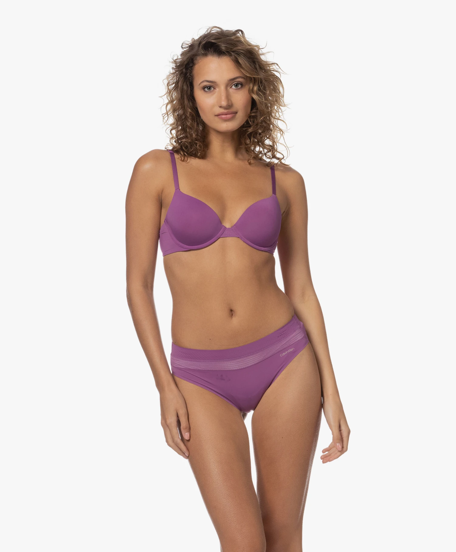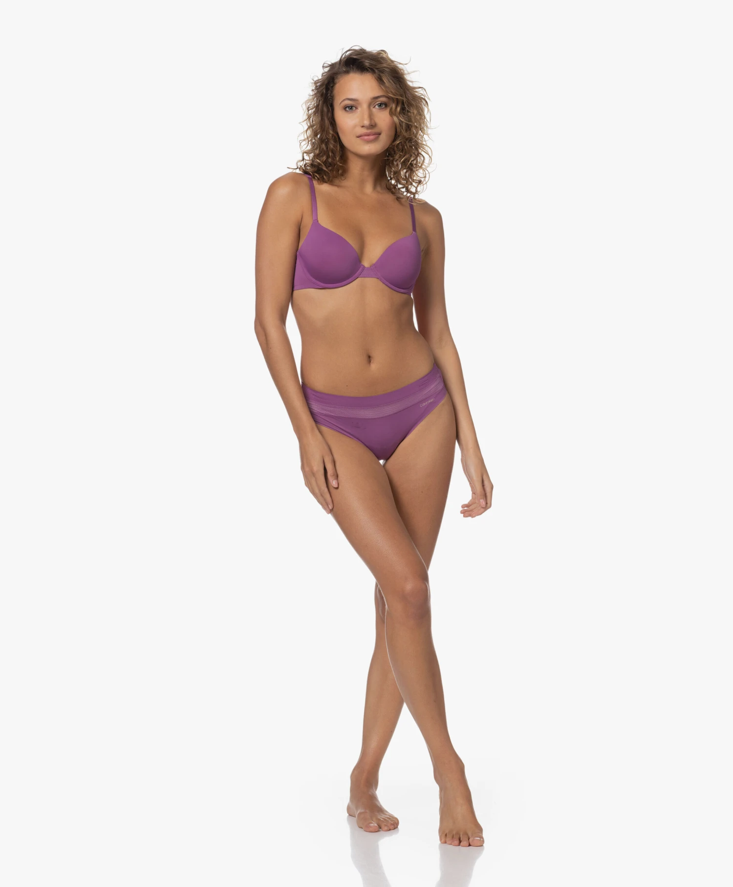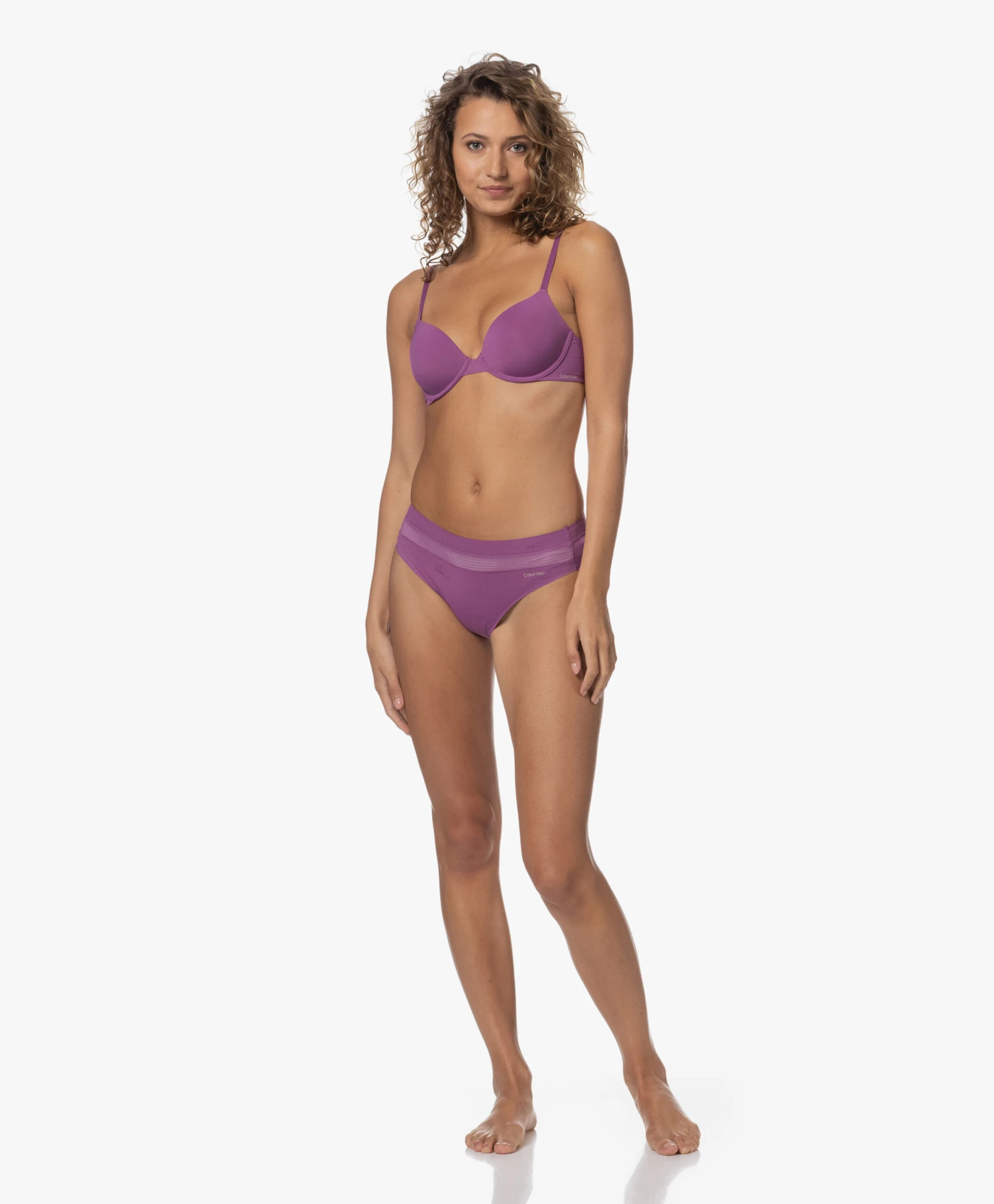 Delicate mesh kanten details zorgen voor verleidelijke variatie in het ontwerp van deze microfiber slip van Calvin Klein. De paarse slip toont medium bedekking aan de achterzijde, een brede, dubbellaagse tailleband en laser-cut randen die samen optimaal comfort bieden, maar waarbij een stijlvolle esthetiek de boventoon voert.