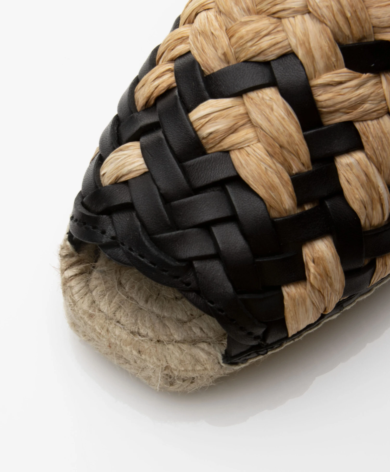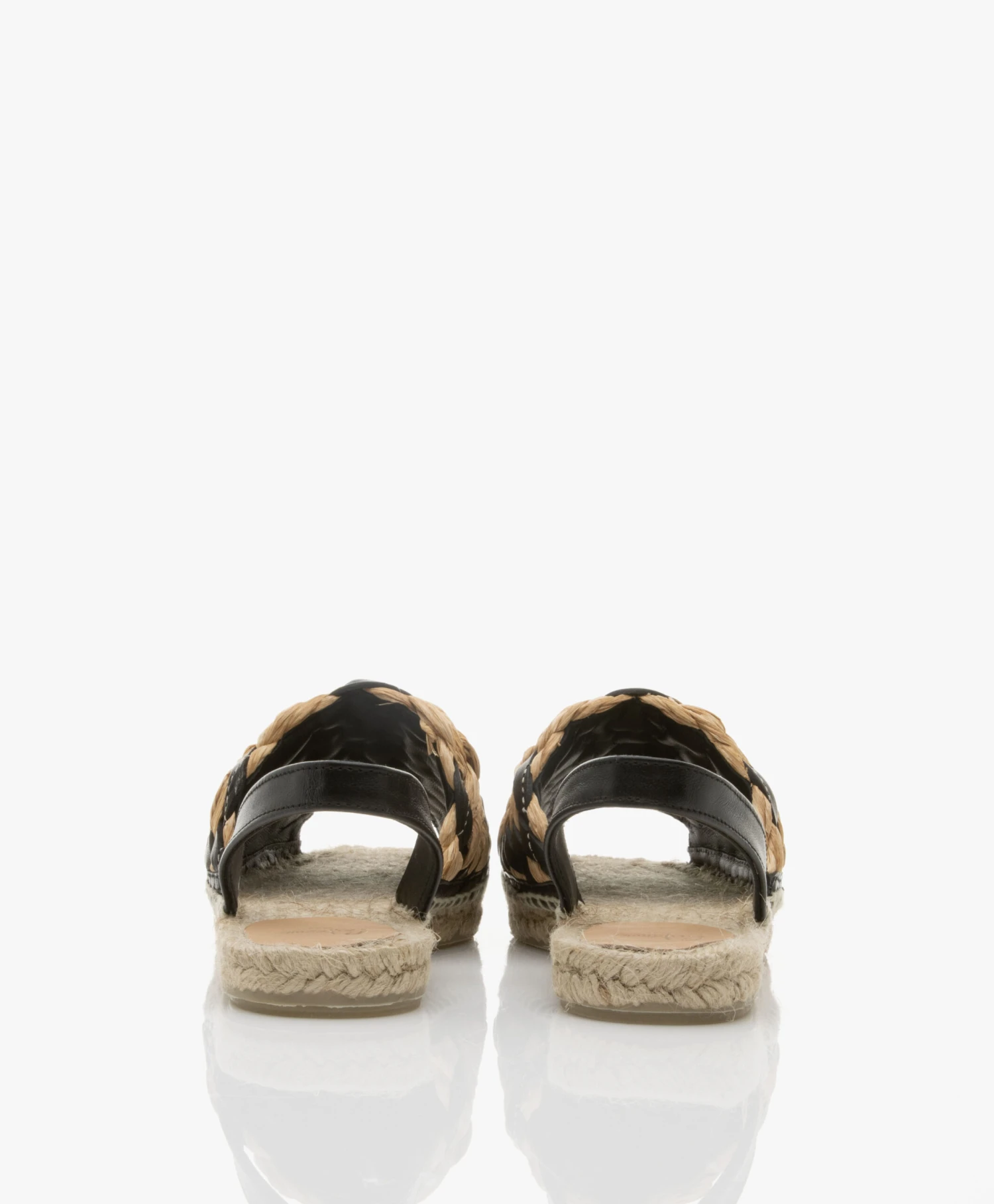 Espadrilles van het Spaanse Castañer staan bekend het traditionele vakmanschap met een moderne twist. De zwart met beige Pomila slingback espadrilles zijn ontworpen met een gevlochten voorvoet in raffia en leer. De sisal binnenzool is afgewerkt met zacht leer voor een optimaal comfort. De rubberen loopzool maakt de authentieke touwzool slijtage-bestendig.