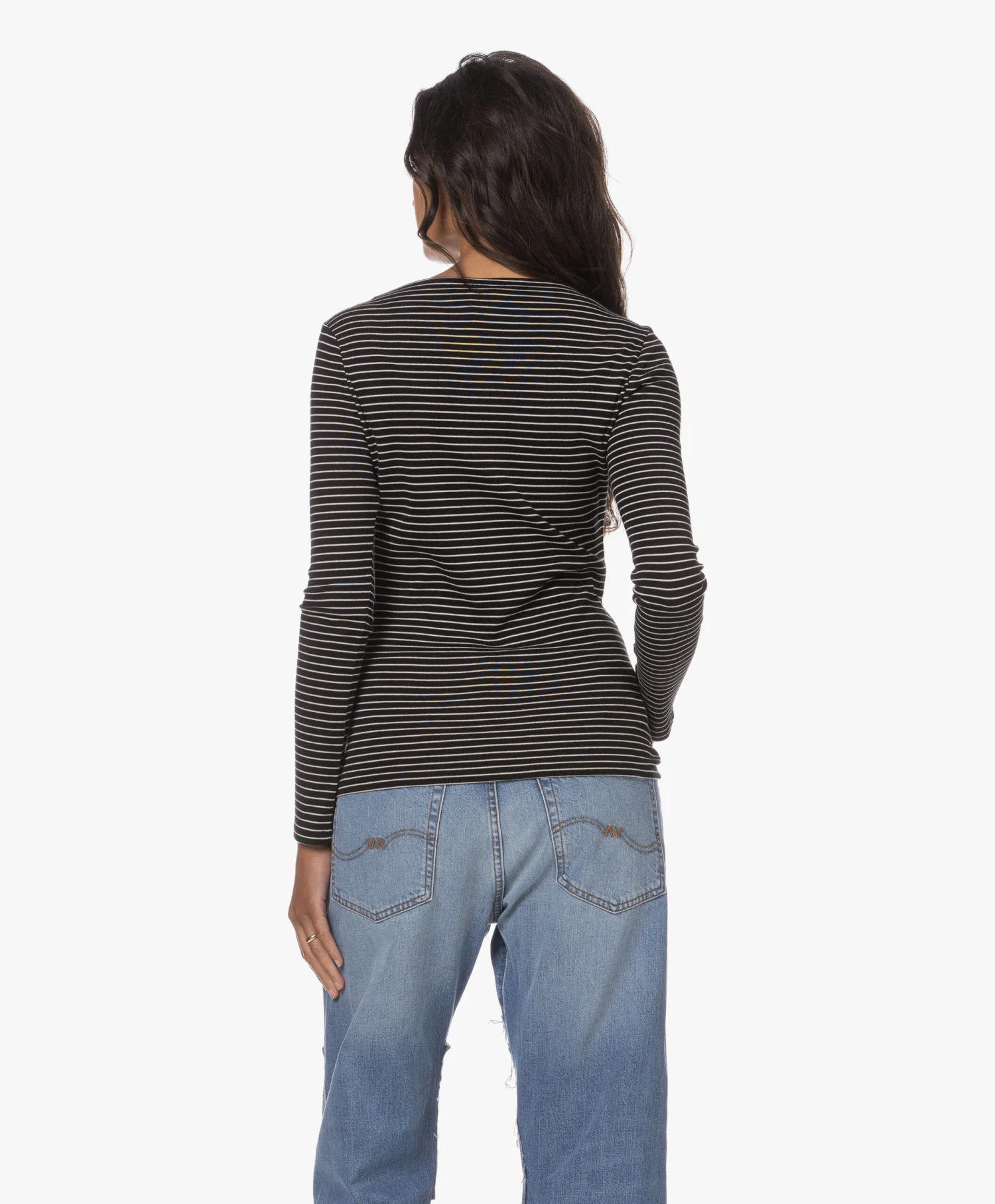 Je hebt altijd een streepje voor met deze longsleeve met boothals van Closed. De strepen zijn tijdloos, de zachte katoenmix met stretch zit altijd goed en is op eindeloos veel manieren te combineren. De hoge boothals geeft de top een moderne look en accentueert de horizontale strepen.