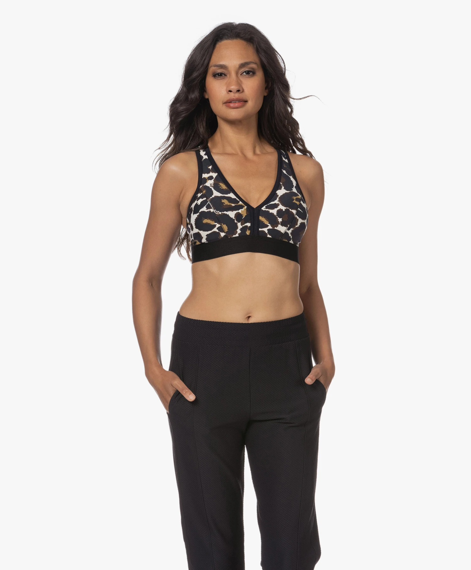 Deblon Sports weet wat vrouwen verlangen van hun sportkleding. Niet alleen een hoog prestatielevel maar ook een stijlvolle look. BH top Charly met luipaardprint in off-white, bruine en zwarte tinten voldoet aan dat eisenlijstje. De sport-BH is gemaakt van een stevige tech kwaliteit, is ontworpen met een sportief racerback design en komt met verwijderbare BH-pads om zelf de gradatie van steun de bepalen.