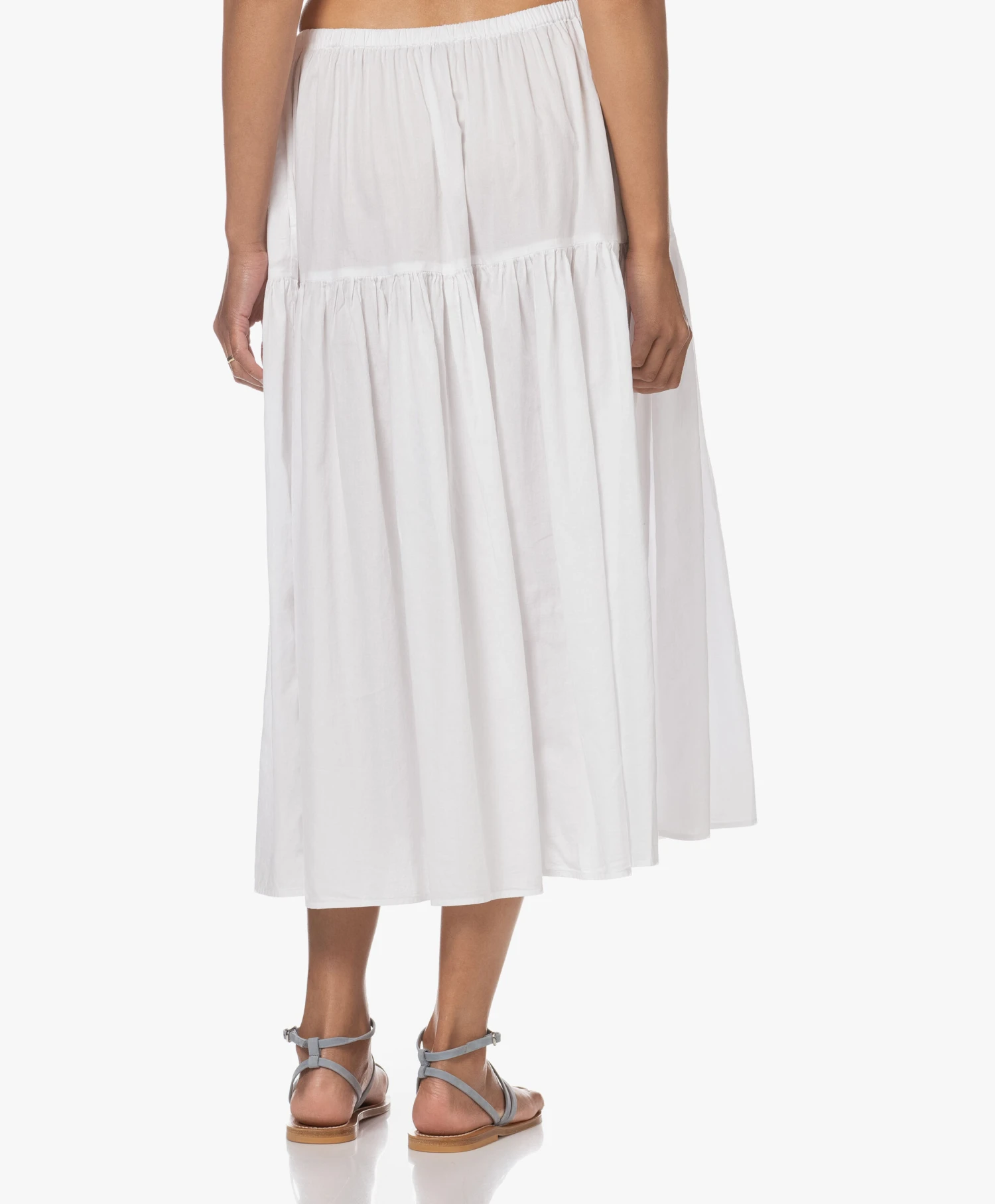 Cleane romantiek – hoe tegenstrijdig het ook klinkt: het bestaat! Met de enkellange witte katoenen strokenrok van Enza Costa beweeg je soepeltjes tussen alle stijlen door. Eén ding is zeker: het geeft je alle ruimte voor stylingexperimenten. Van top tot teen in het wit, gecombineerd met een felle accentkleur, in de mix met een print… have fun!