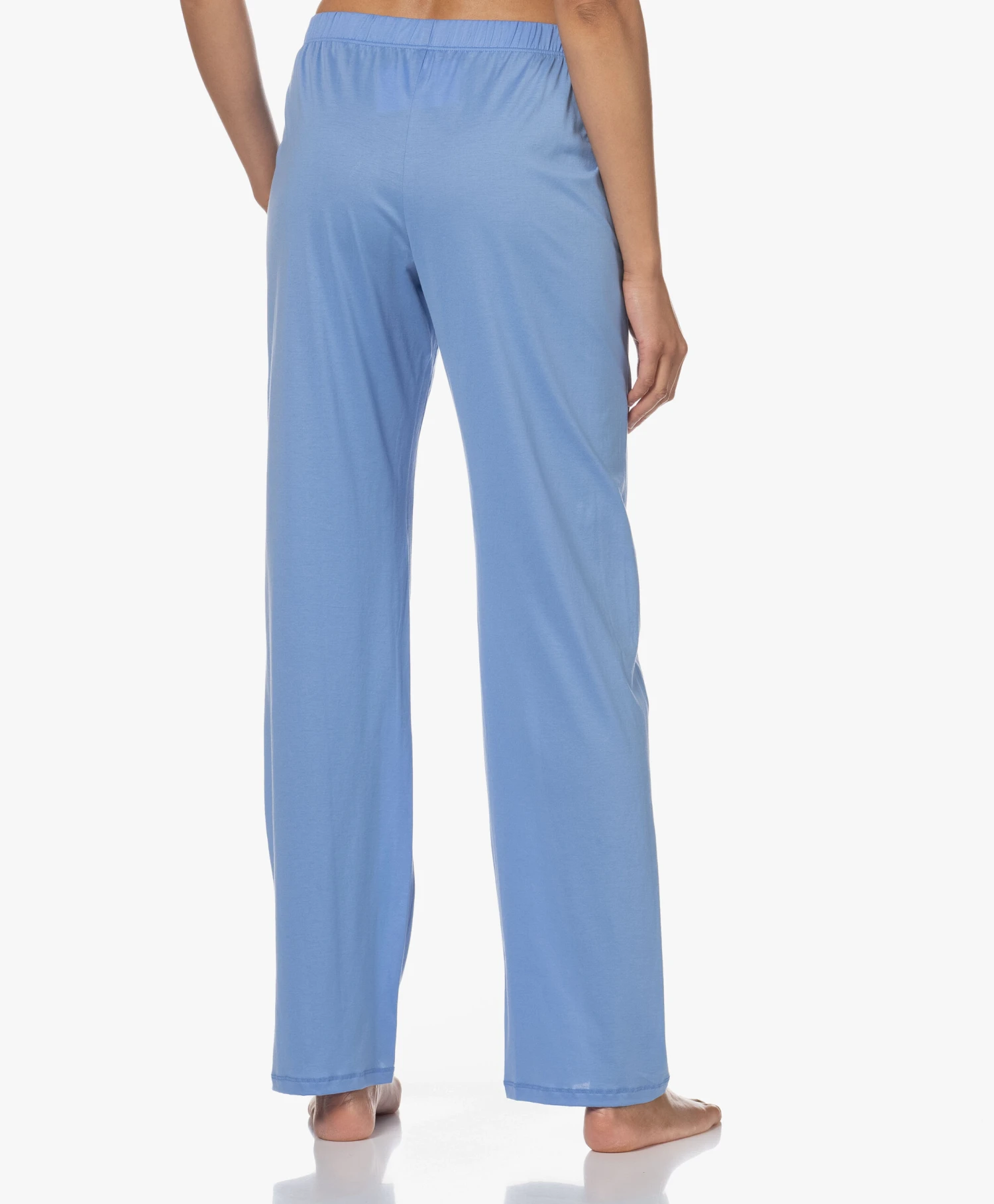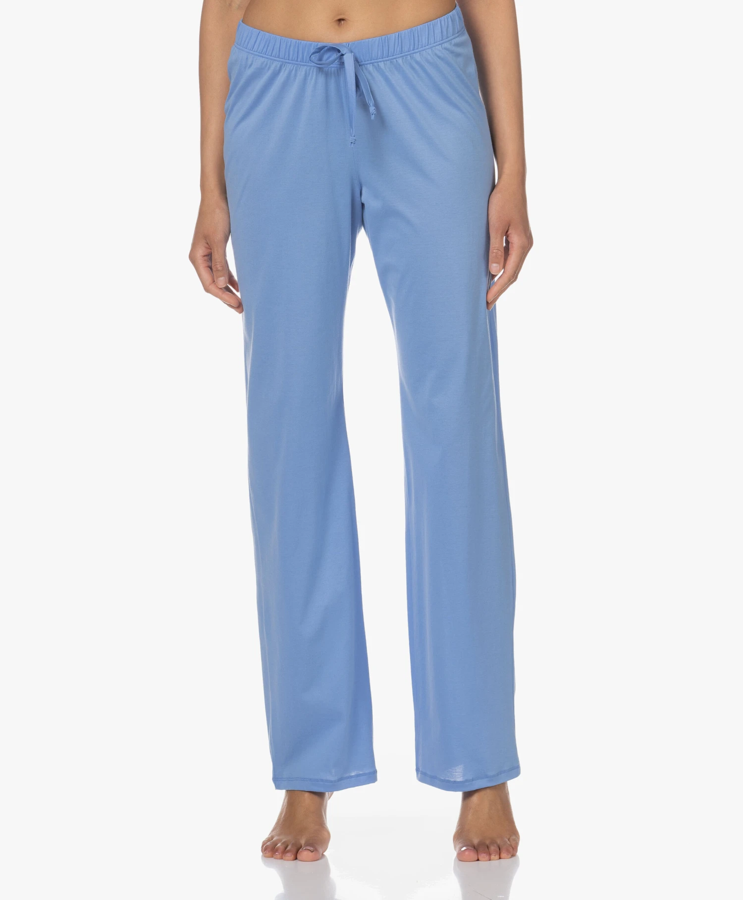 Deze azuurblauwe pyjamabroek van de HANRO Cotton Deluxe collectie is gemaakt van een soepel vallende, lichtgewicht en comfortabele gemerceriseerde Supima katoen kwaliteit met een iets glanzend karakter. Deze pyjamabroek is ontworpen met een striksluiting – creëer dé perfecte pasvorm. Combineer met een HANRO top en de badjas van het merk.
