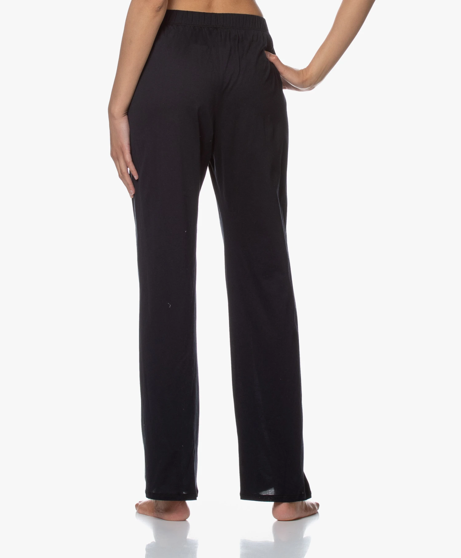 Deze zwarte pyjamabroek van de HANRO Cotton Deluxe collectie is gemaakt van een soepel vallende, lichtgewicht en comfortabele pure gemerceriseerde Supima katoen kwaliteit met een iets glanzend karakter. Deze pyjamabroek is ontworpen met een striksluiting – creëer dé perfecte pasvorm. Combineer met een HANRO top en de badjas van het merk.