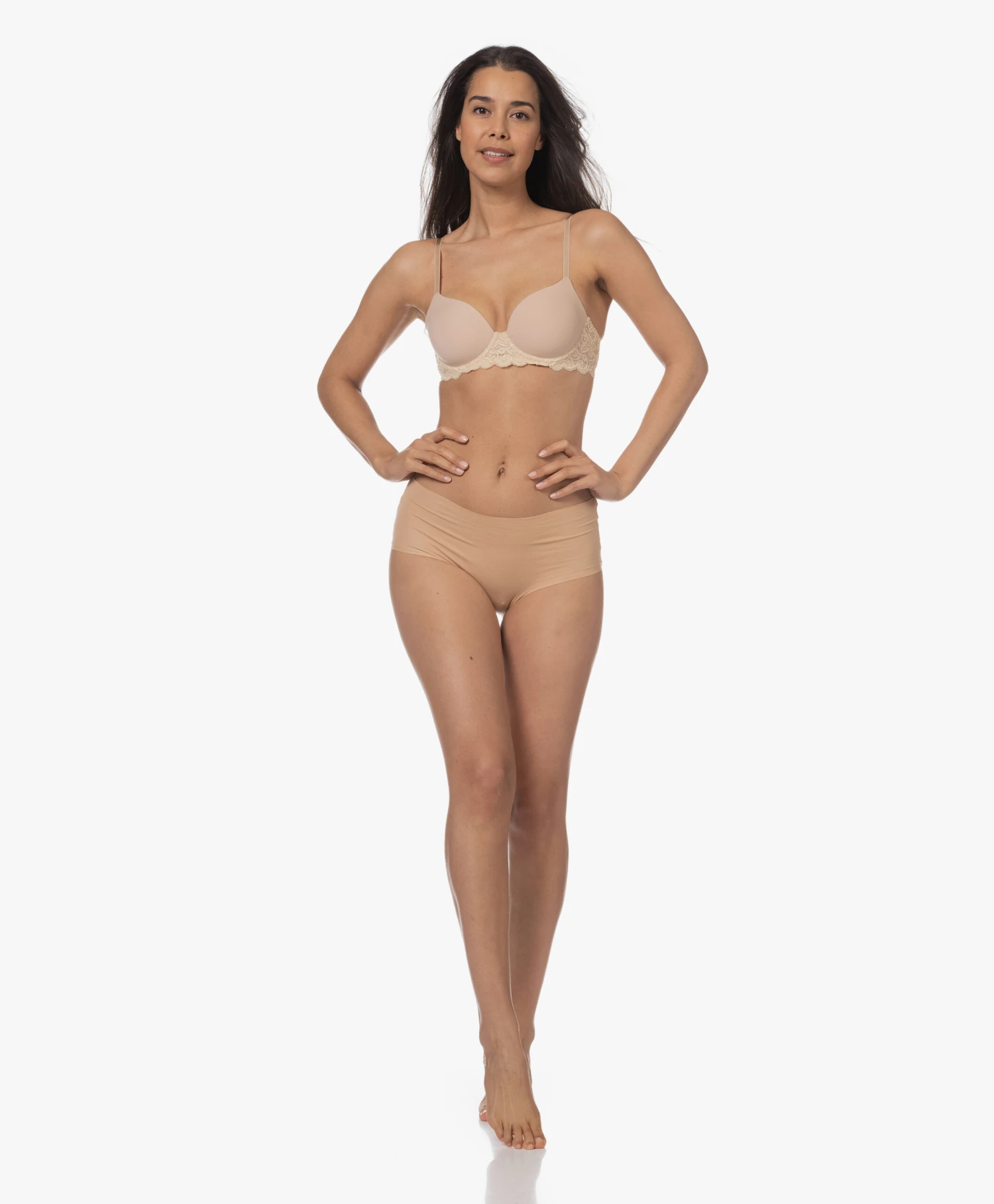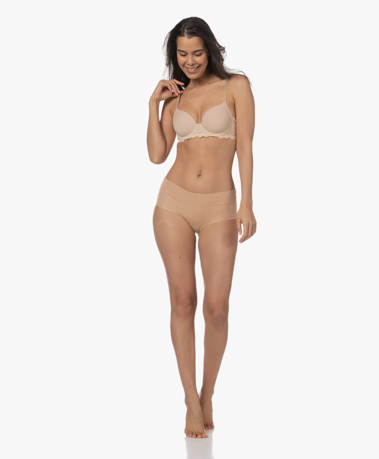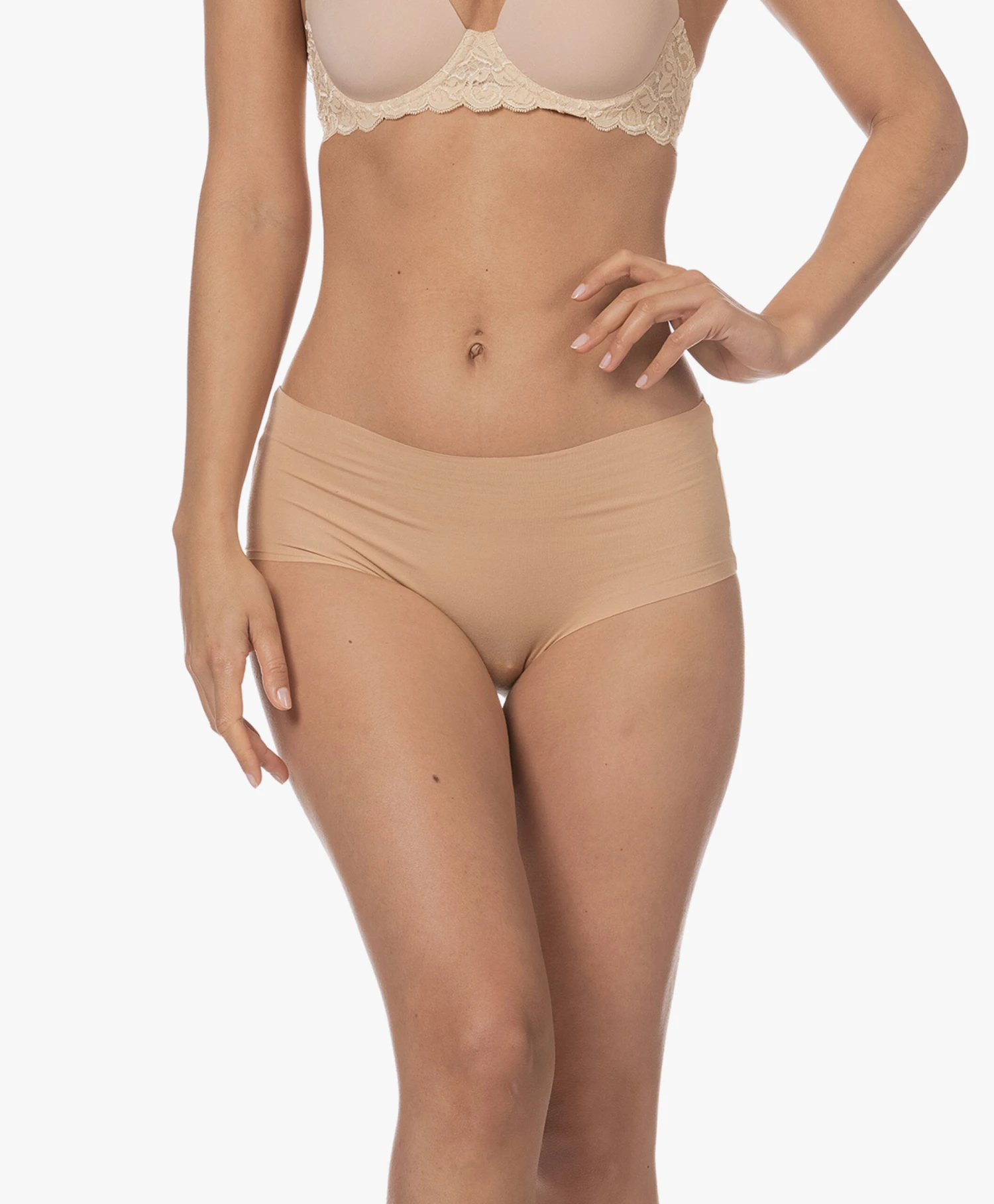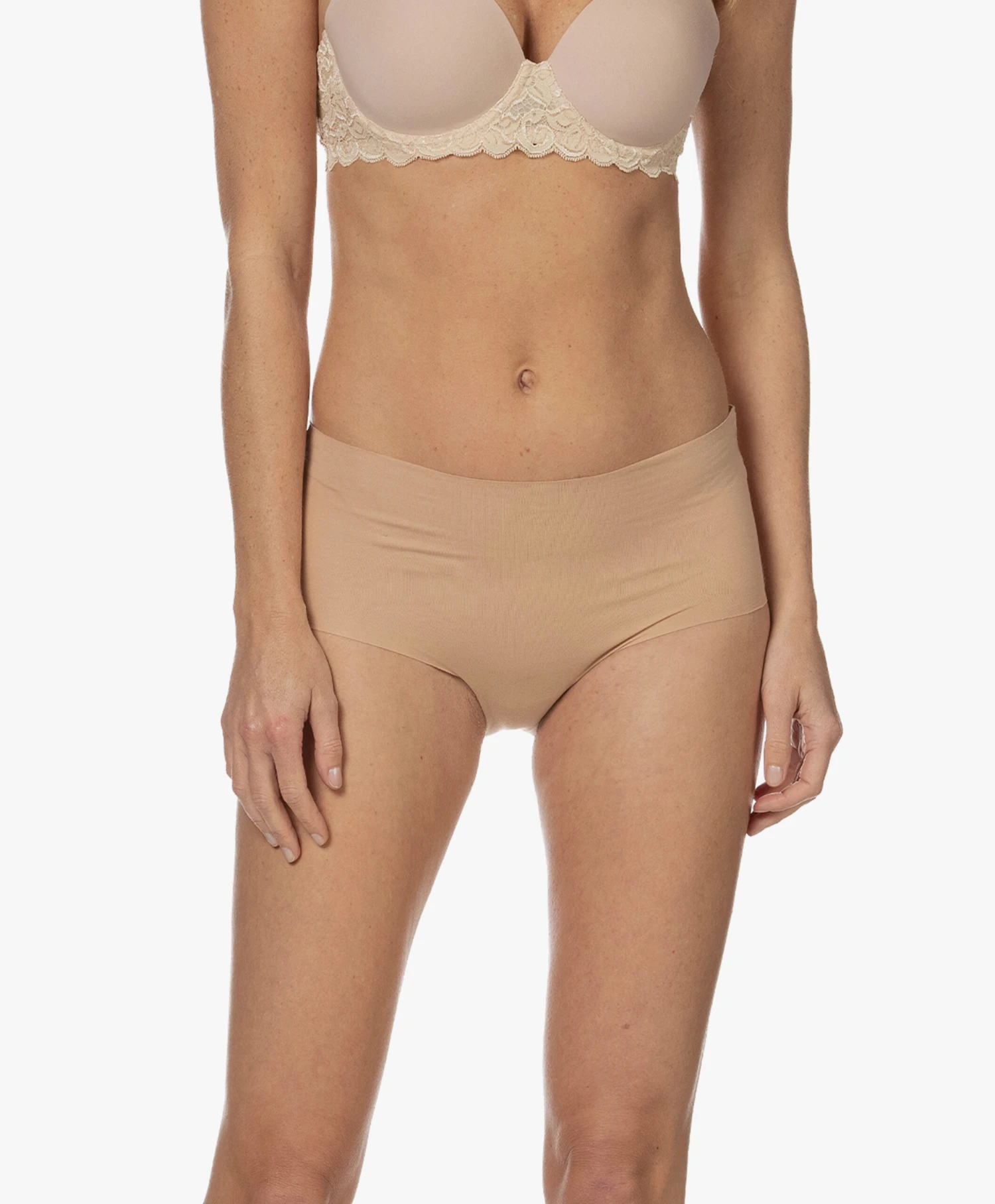Deze hooggetailleerde beige slip van HANRO creëert een flatterend en gestroomlijnd silhouet – deze slip vormt de perfecte basis onder een figuurvolgend kledingstuk. Gemaakt van een gladde en lichtgewicht interlock jersey met ultra-platte ‘laser-cut’ randen – vervaardigd van de fijnste en superlichte stretchy katoen kwaliteit voor optimaal comfort.