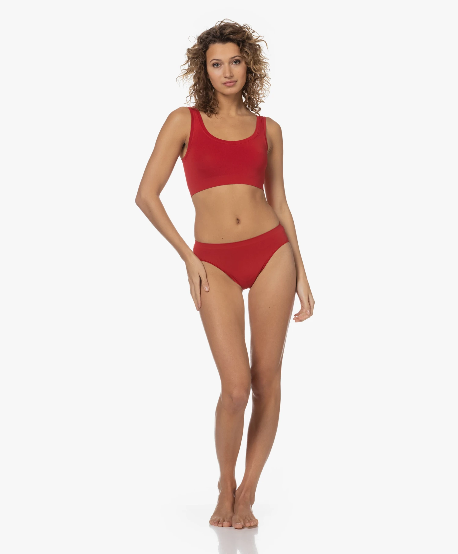 Deze rode slip van de HANRO Touch Feeling collectie is een vrouwelijke en flatterende basis in een ultra-comfortabele kwaliteit. De klassieke stijl heeft een naadloos design en de lichtgewicht, stretchy en ademende microfiber kwaliteit creëert een ‘second-skin’ pasvorm. Draag met de bijpassende tanktop of BH top.