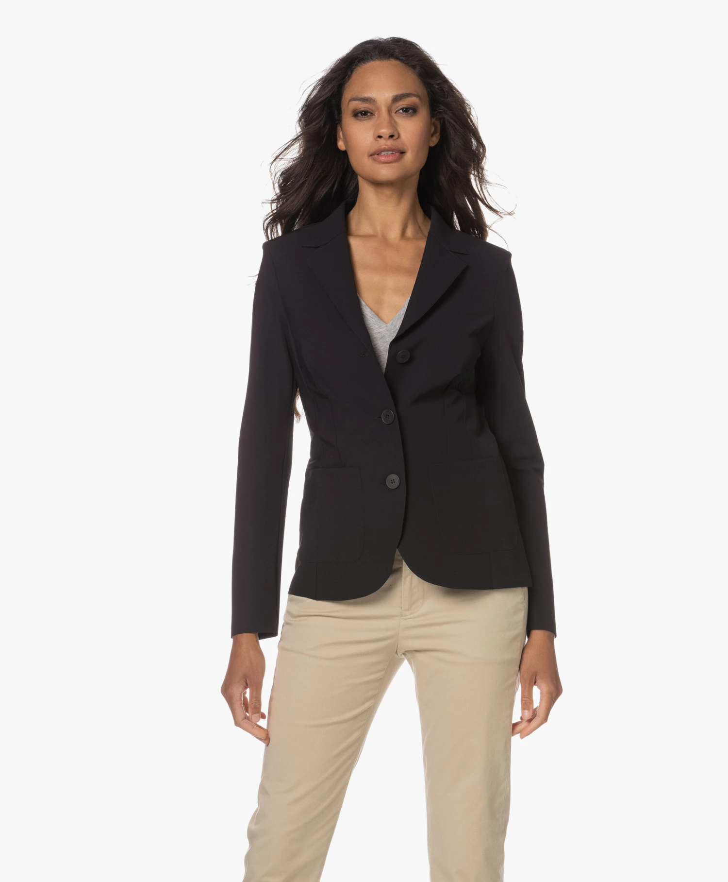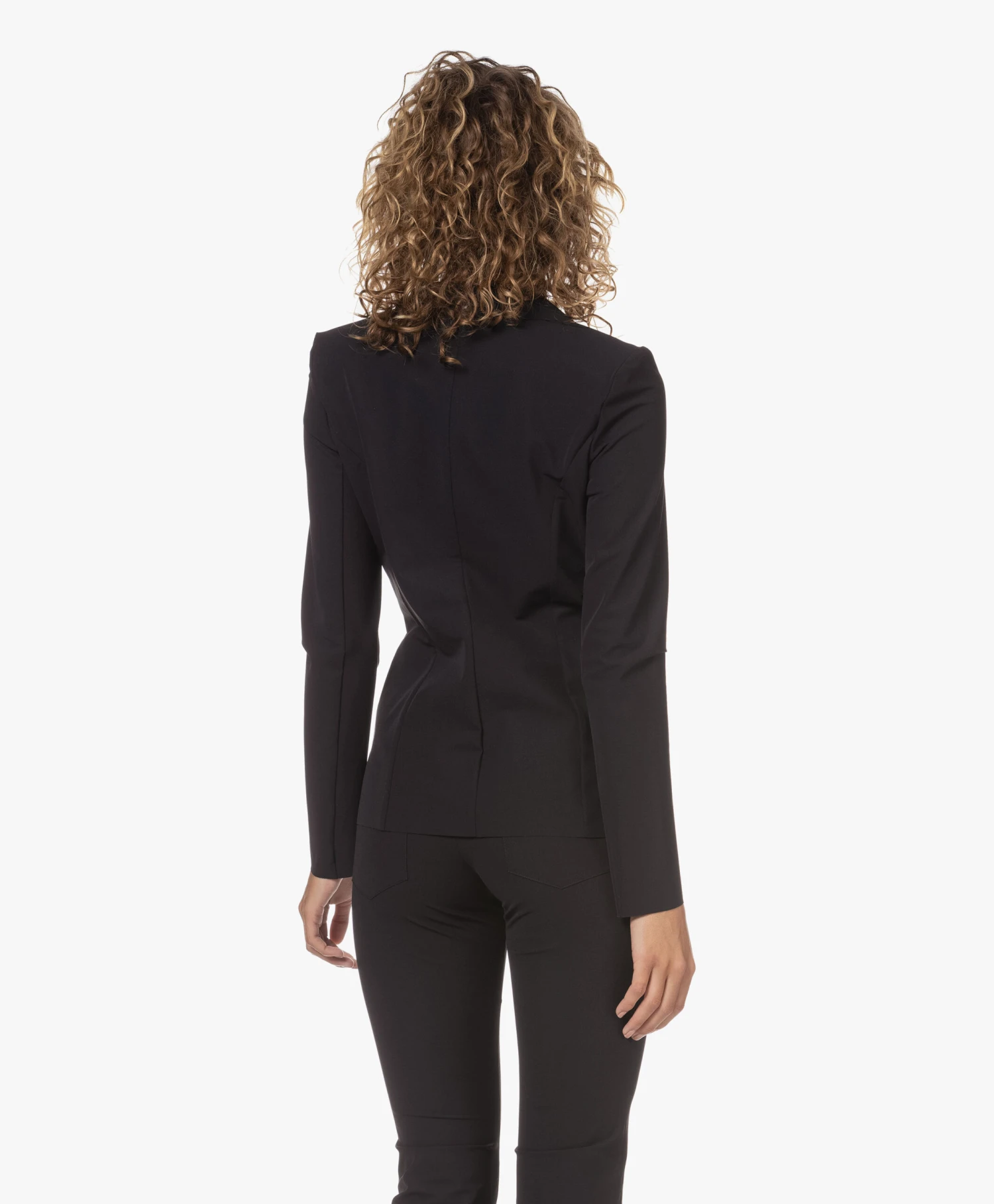 Deze vrouwelijke zwarte Yuuka blazer van JapanTKY is gemaakt van een ultra-stretchy doch stevige materialenmix voor optimaal draagcomfort en is daarnaast gemakkelijk te wassen, kreukvrij én sneldrogend! Perfect om mee te nemen op een business-trip óf voor meer casual gelegenheden.
