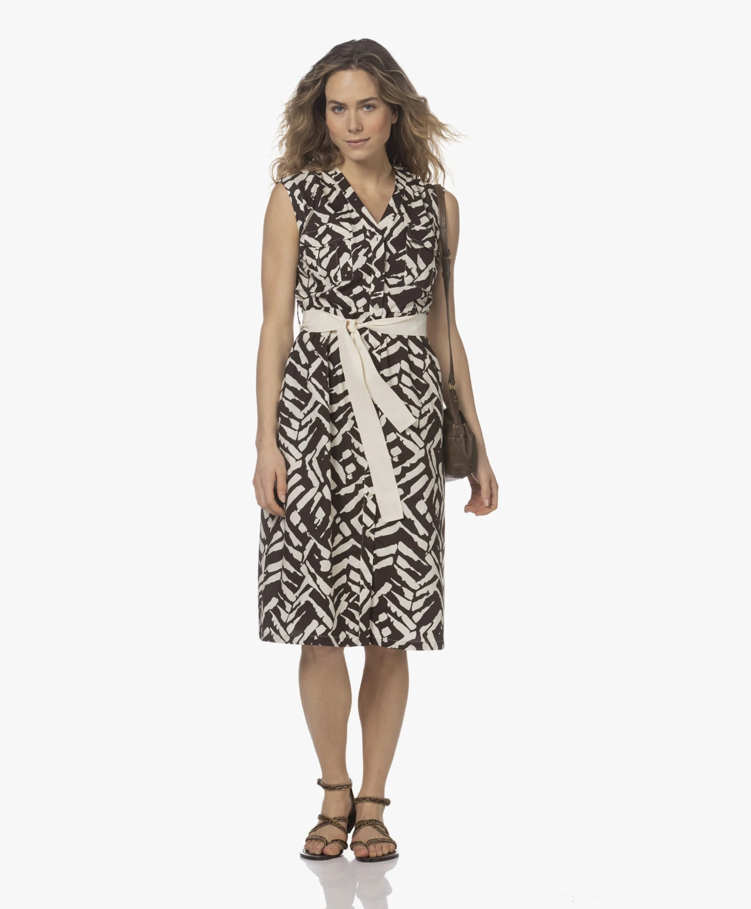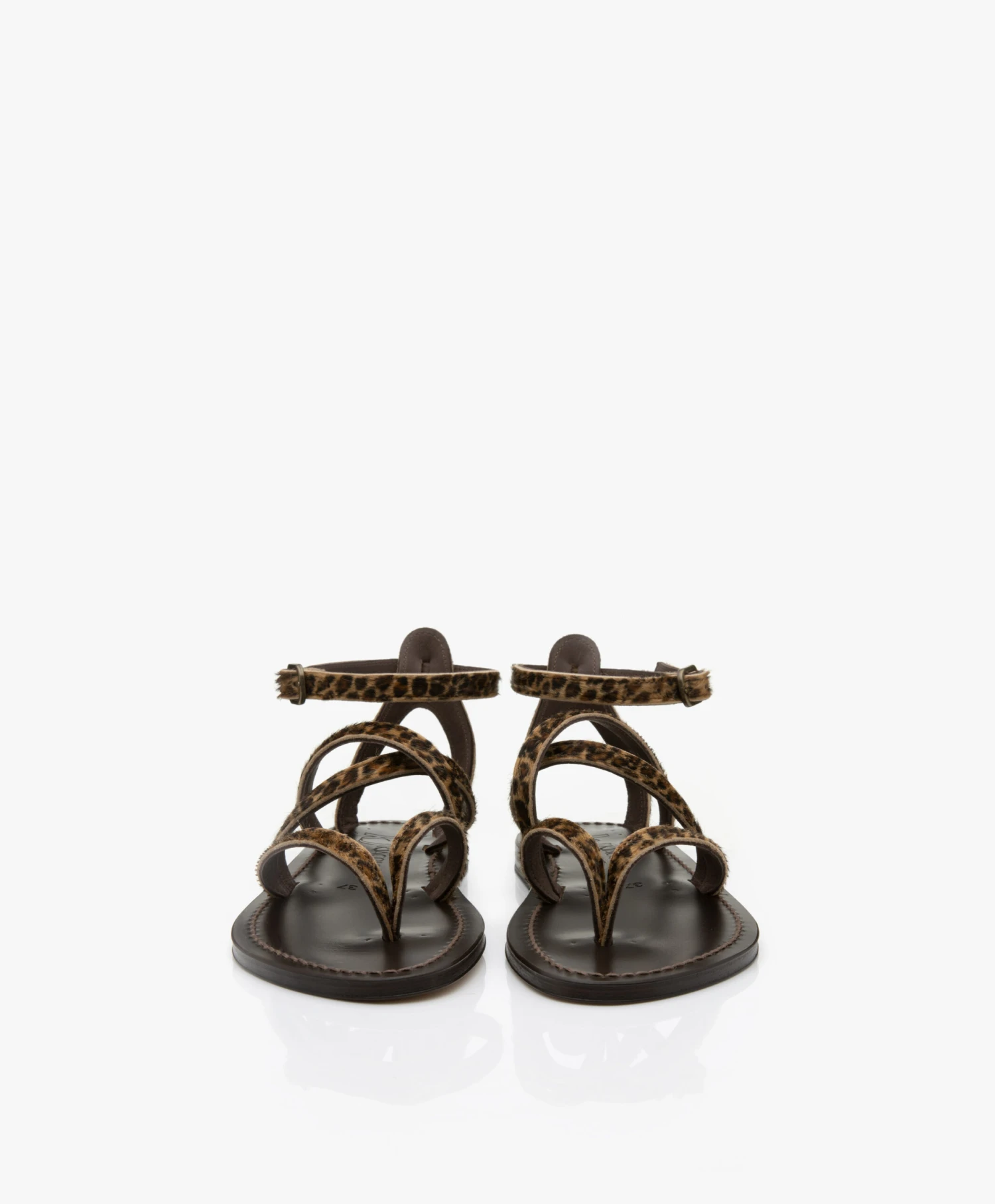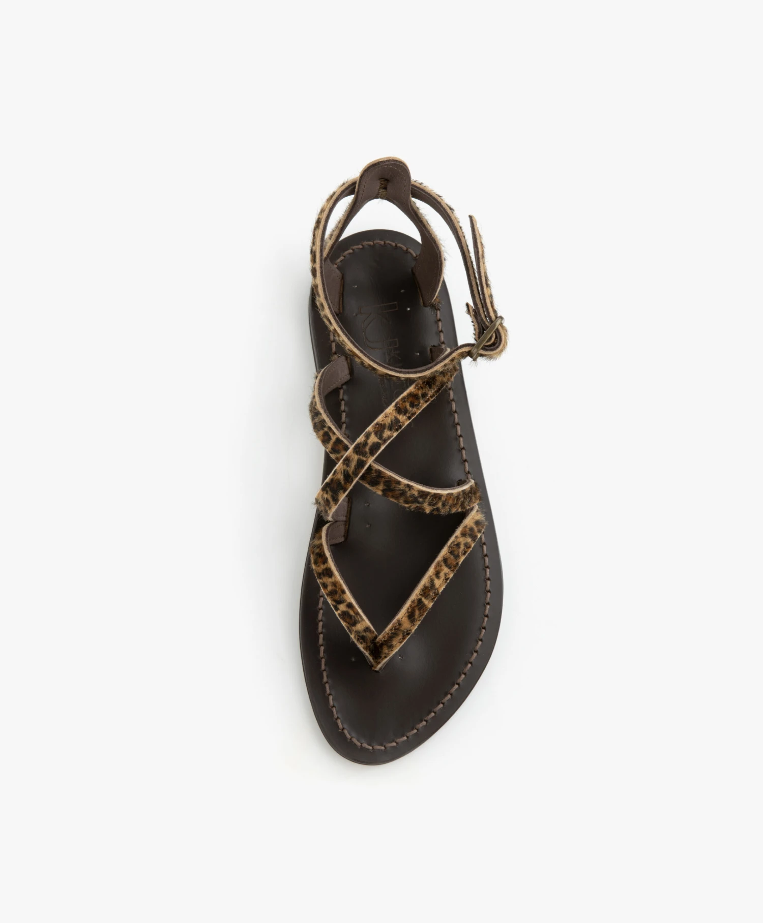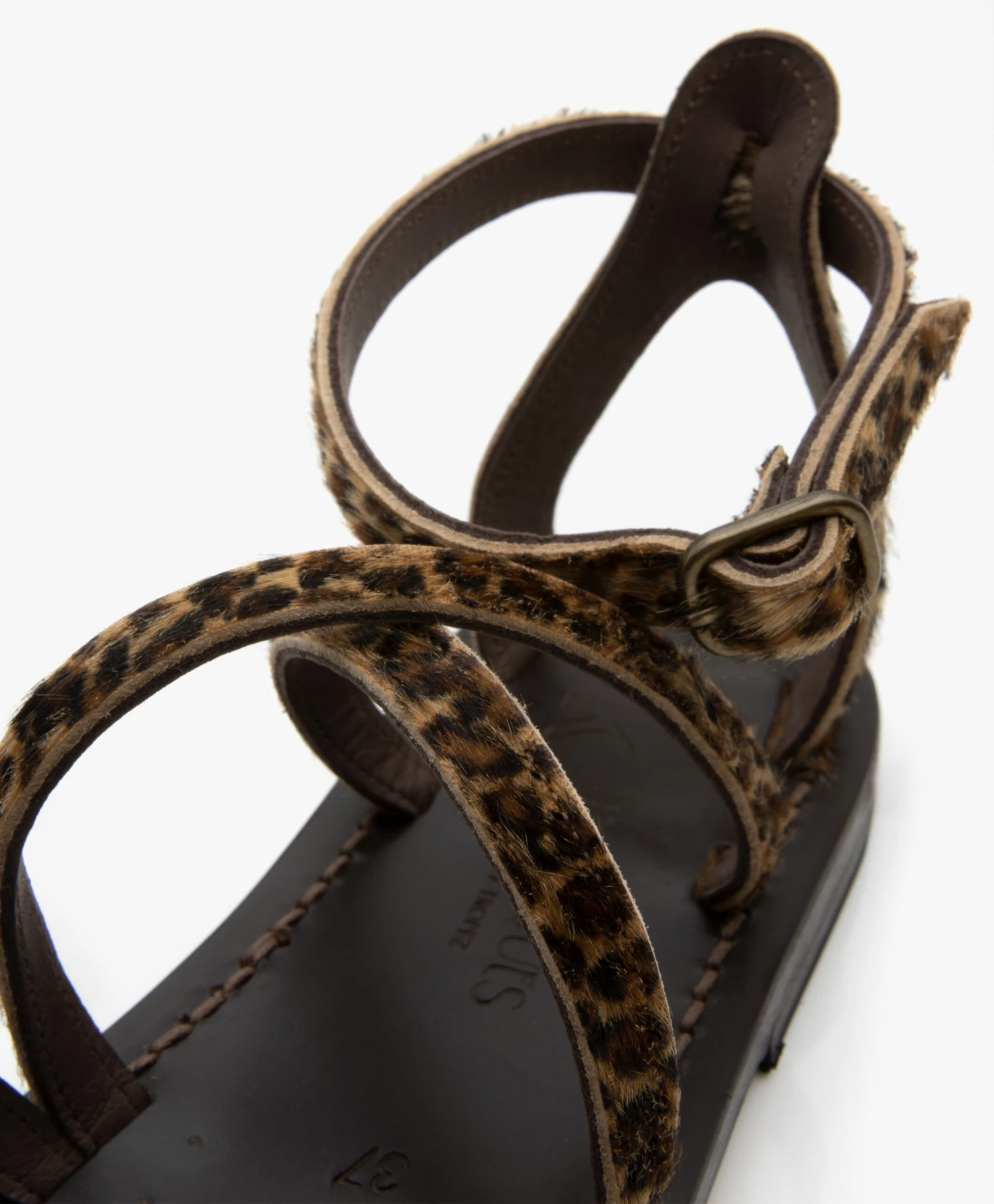 – Platte leren sandaal met crisscross bandjes
