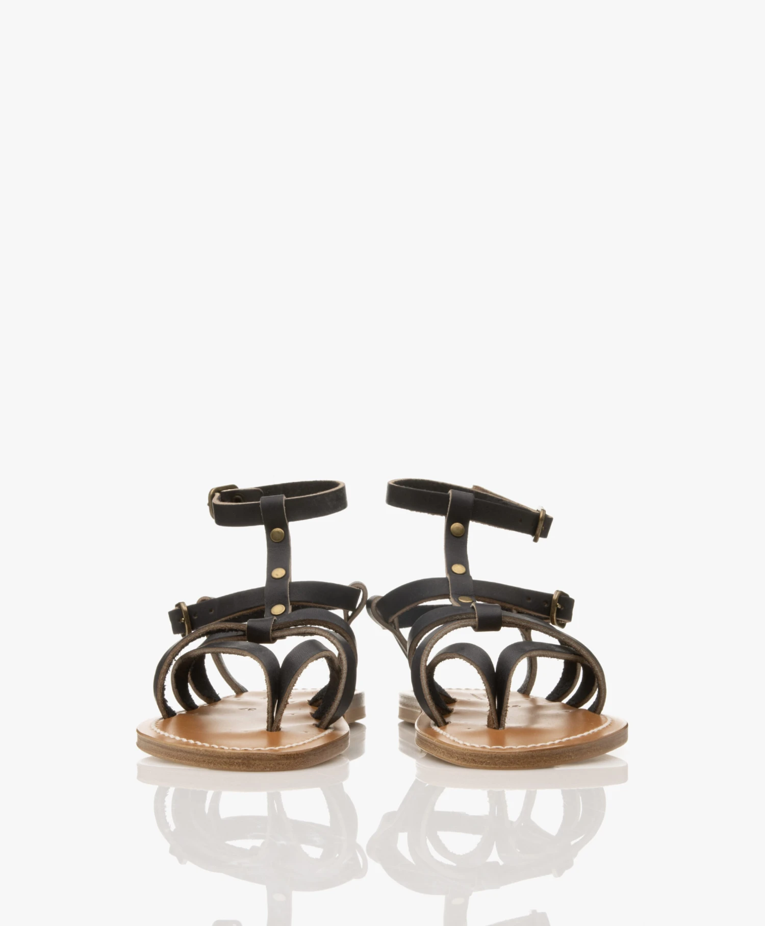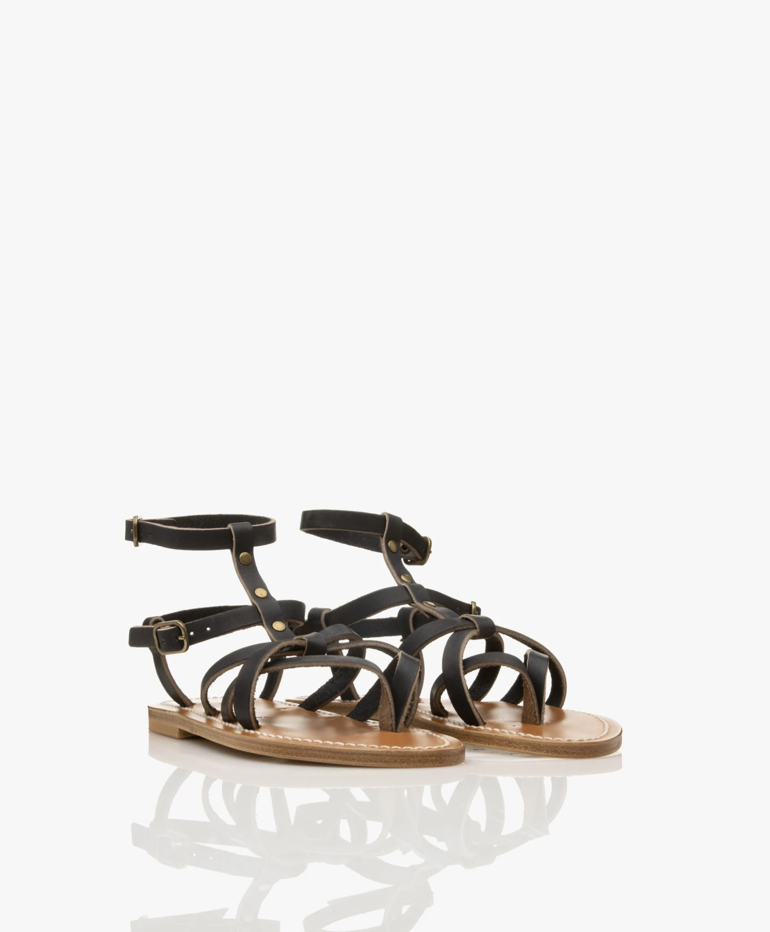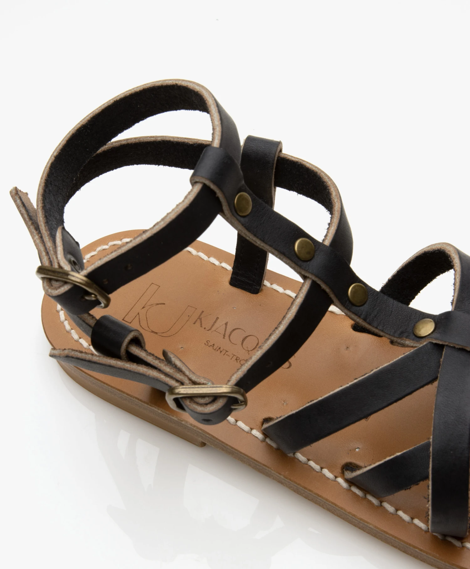De leren Larissa sandalen van K.Jacques Saint Tropez ademen een tijdloze stijl. Deze sandalen zijn met de hand gemaakt van donkerblauw leer en ontworpen met smalle leren bandjes in een kruislings design en zijn gedetailleerd met vintage metalen studs. Deze gladiator-stijl sandalen complementeren iedere look, seizoen na seizoen.