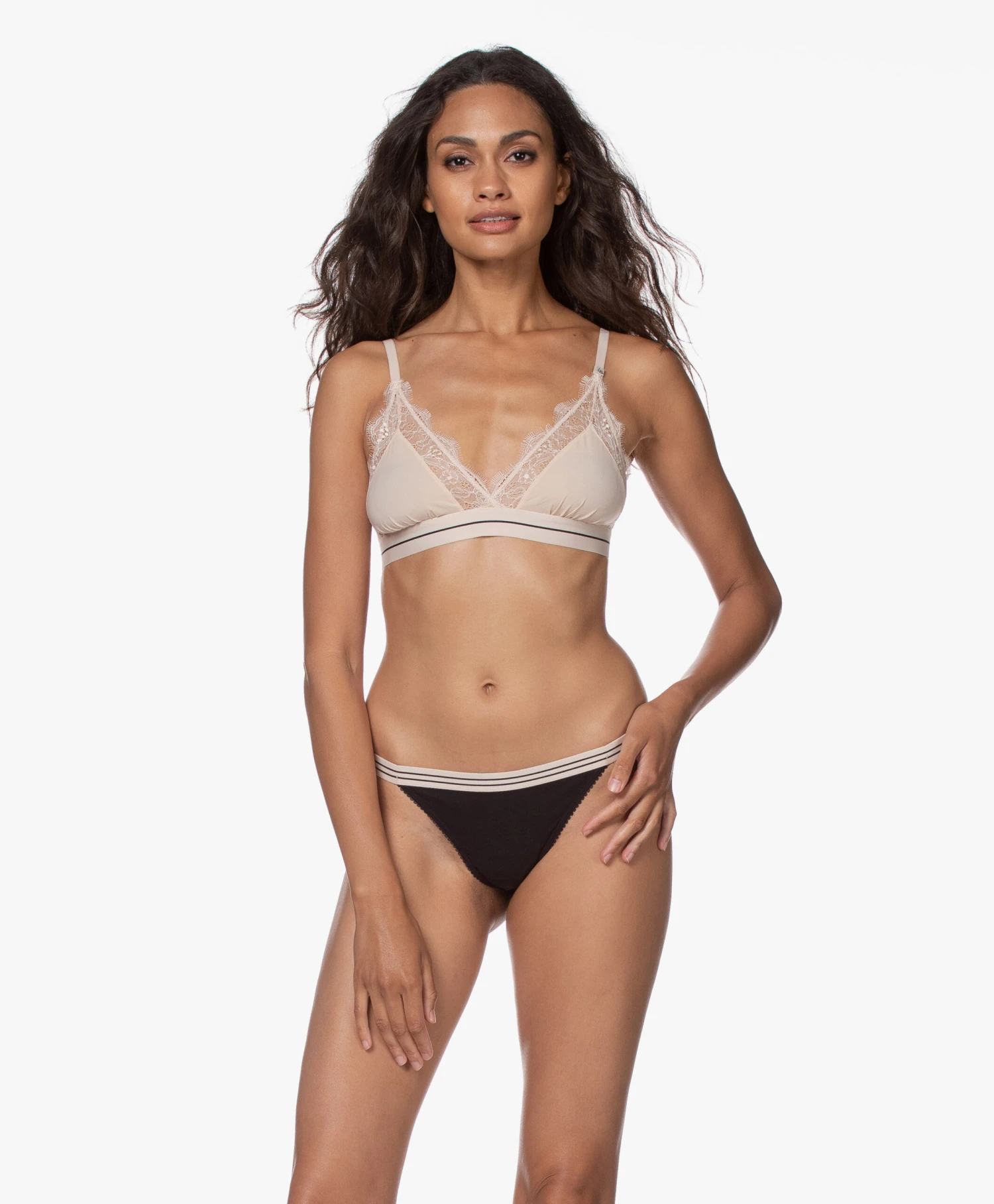 Niet voor niets een best-seller van Love Stories, deze Wild Rose slip biedt het beste van twee werelden; een onweerstaanbare stijl en ultiem comfort. Deze slank gesneden, tanga-stijl slip is gemaakt van een zachte microvezel stretch-kwaliteit in een zandkleurige tint, met een achterkant van ‘eyelet’ geschulpt kant. De sportief gestreepte, elastische tailleband zit laag op de heup voor een flatterende pasvorm.