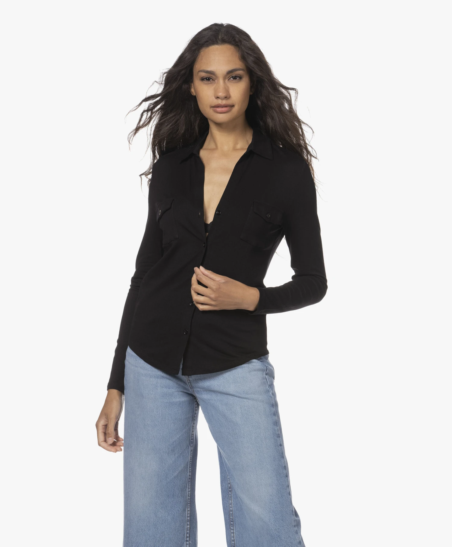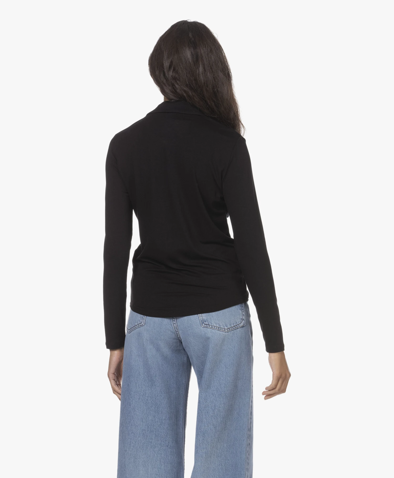 Deze zwarte blouse van Majestic Filatures is gemaakt van de voor het merk karakteristieke ‘superwashed soft touch’ jersey kwaliteit van viscose met extra stretch voor een perfecte pasvorm. Ontworpen met een V-hals en een semi-aangesloten pasvorm voor een ultra-vrouwelijke en tijdloze feel.