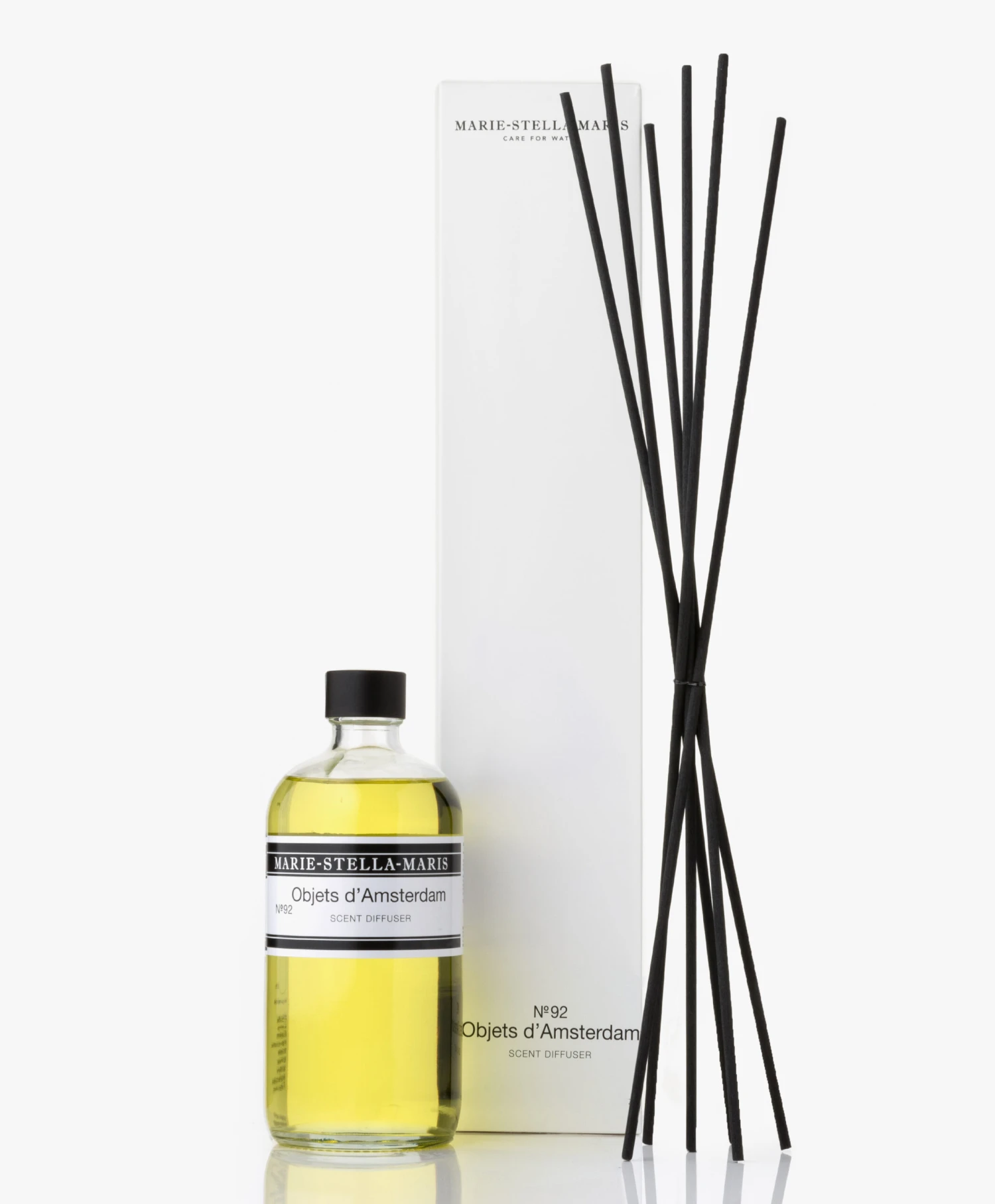 Deze geurstokjes van Marie-Stella-Maris in de iconische geur Objets d’Amsterdam zorgen voor een optimale geurbeleving én sfeer voor in huis. De geurstokjes verspreiden een sprankelende geursensatie van groene thee met citrusakkoorden van bergamot en citroen, met een warme basis van diverse houtsoorten en musk.