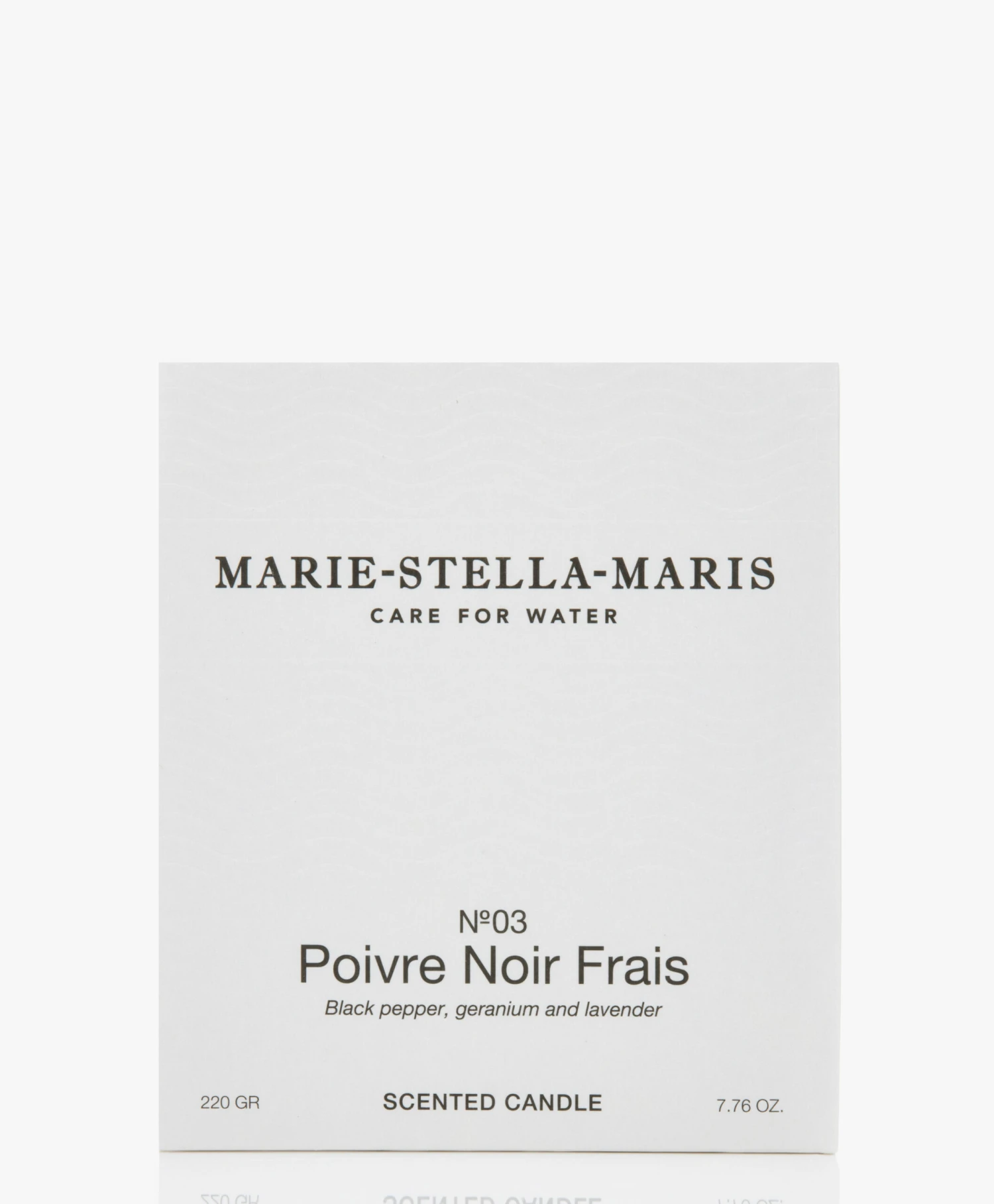 Creëer een unieke geurbeleving in huis met deze luxe geurkaars van Marie-Stella-Maris. Poivre Noir Frais is een krachtige en kruidige geur met warme geurtonen van zwarte peper, geranium en lavendel. De 100% natuurlijke was van soja, raapzaadolie en bijenwas brandt en verspreid de geur gelijkmatig.