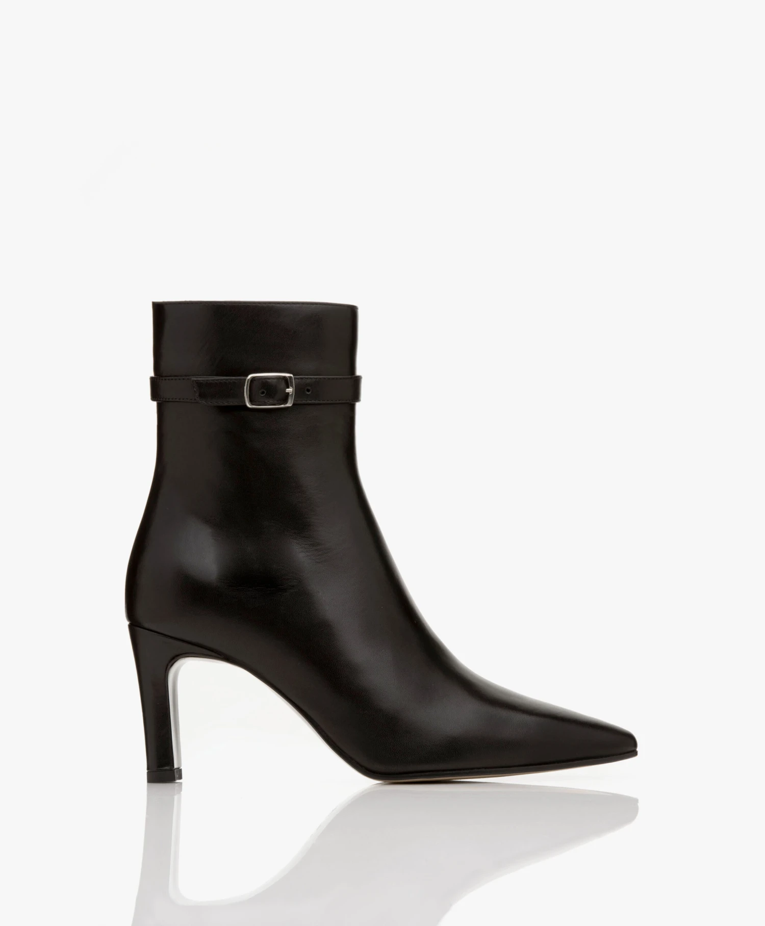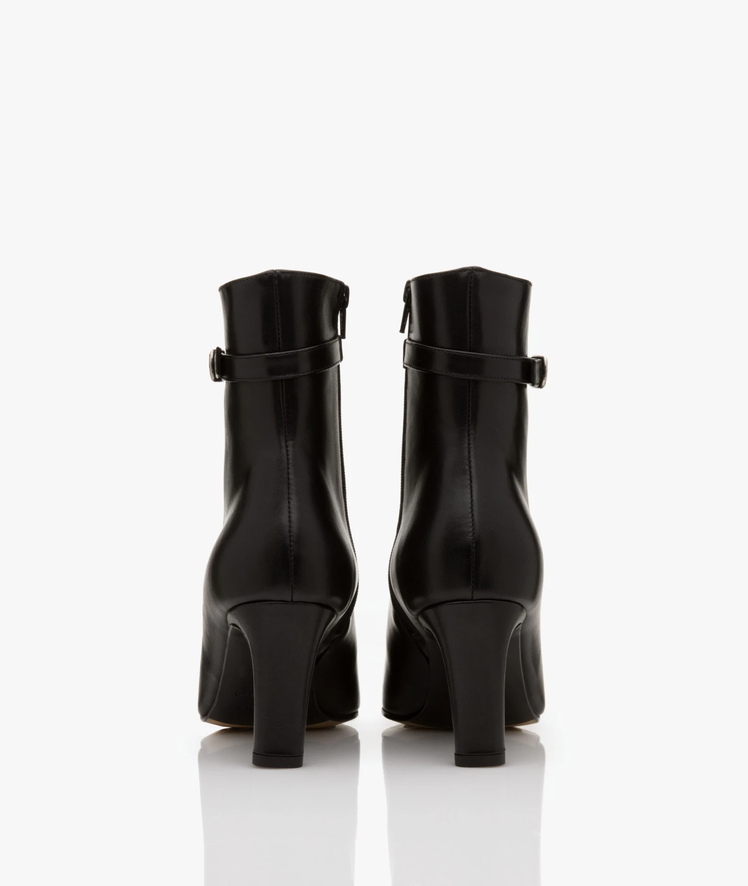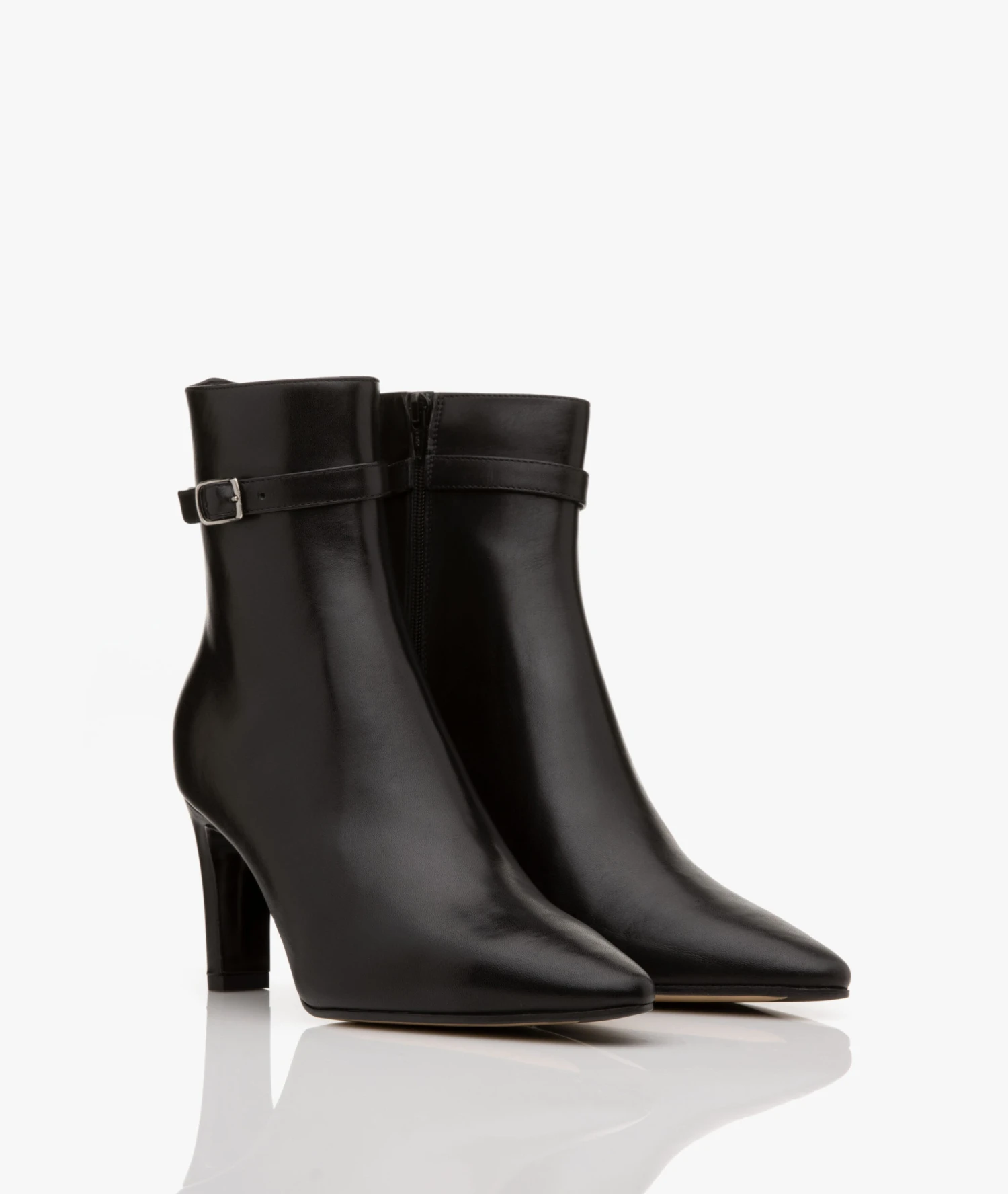 Deze stijlvolle enkellaarzen van Panara zijn uitgevoerd in een zwarte, hoogwaardige leerkwaliteit. Ontworpen met een decoratief gespbandje, een met leer bekleedde middelhoge hak, een elegante schachthoogte en een puntige neus voor een vrouwelijke uitstraling. Door de ritssluiting aan de binnenkant zijn de laarzen gemakkelijk aan te trekken.