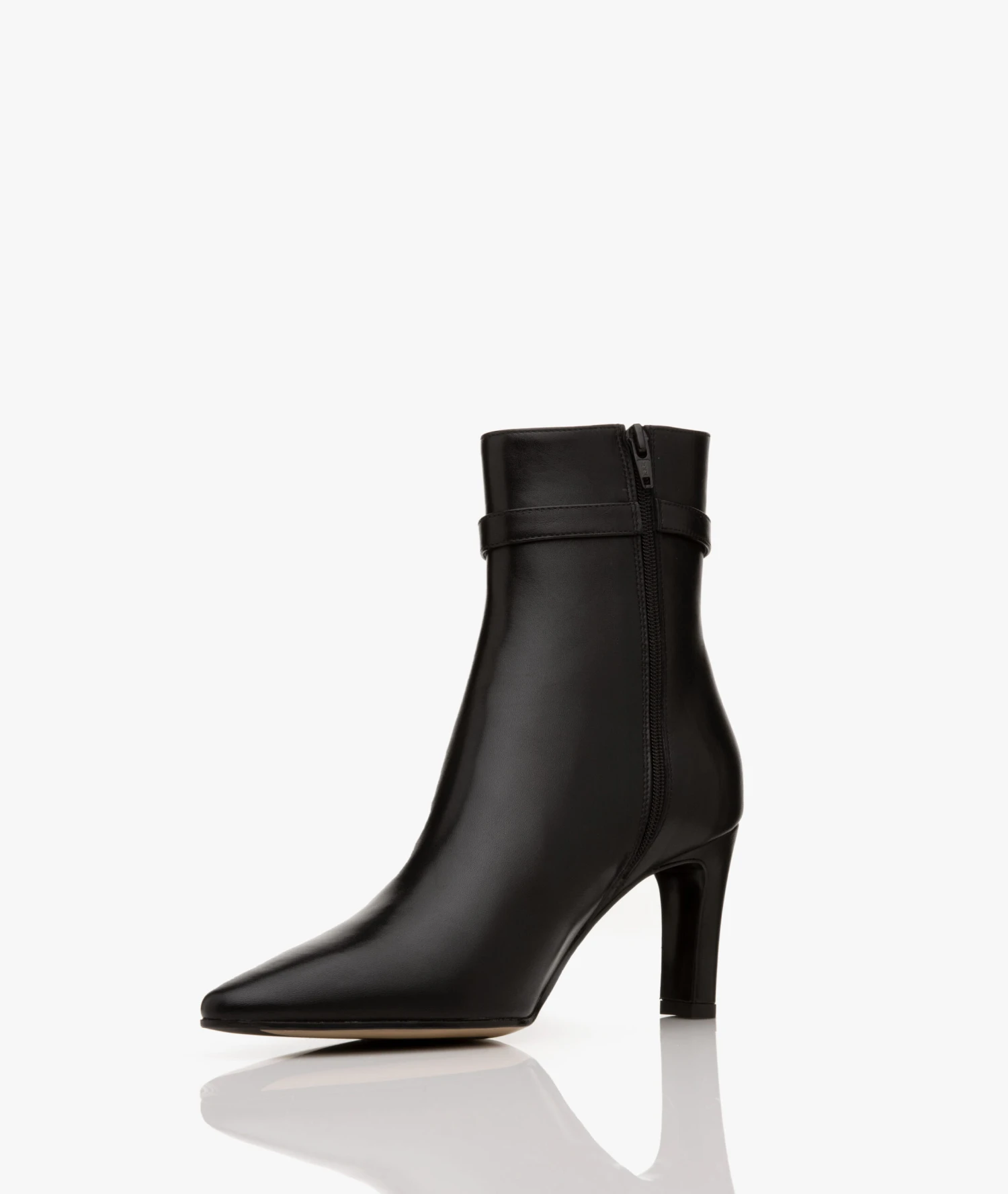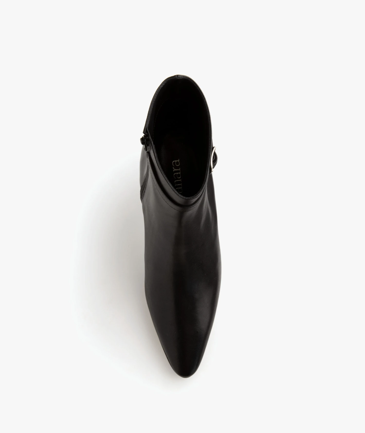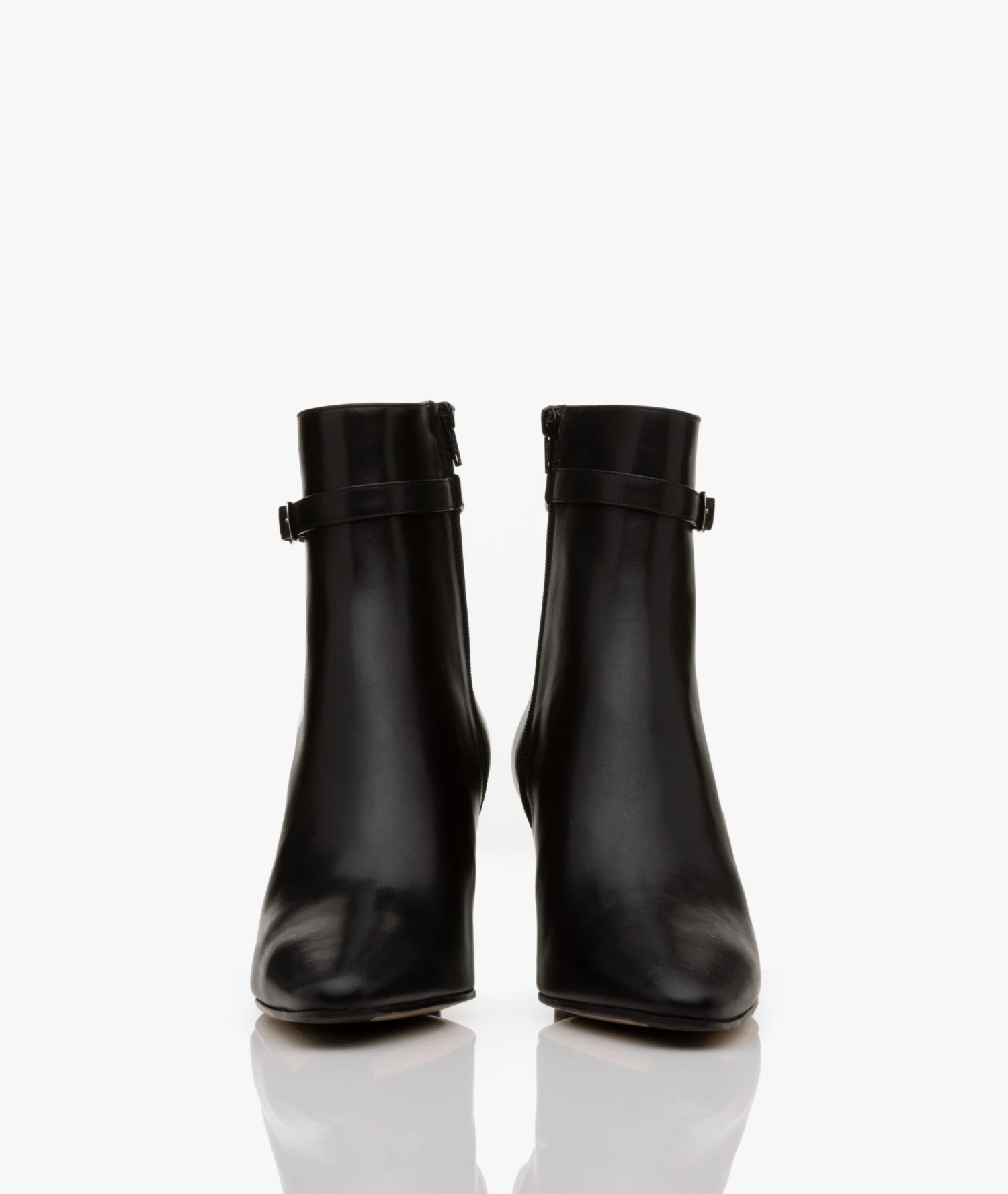 Deze stijlvolle enkellaarzen van Panara zijn uitgevoerd in een zwarte, hoogwaardige leerkwaliteit. Ontworpen met een decoratief gespbandje, een met leer bekleedde middelhoge hak, een elegante schachthoogte en een puntige neus voor een vrouwelijke uitstraling. Door de ritssluiting aan de binnenkant zijn de laarzen gemakkelijk aan te trekken.