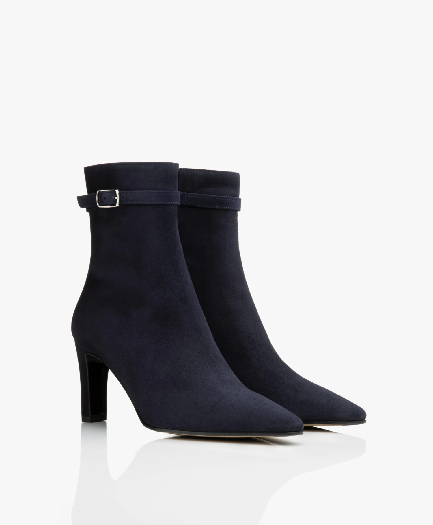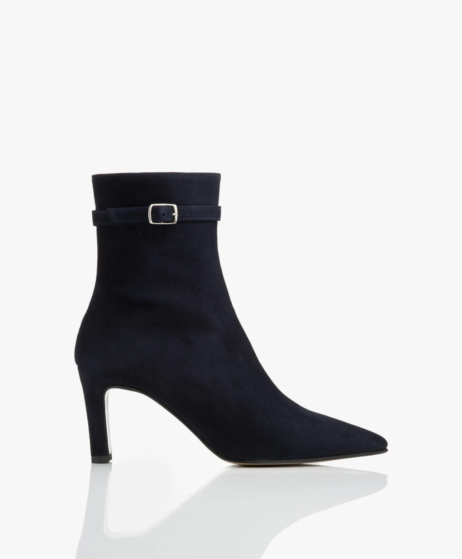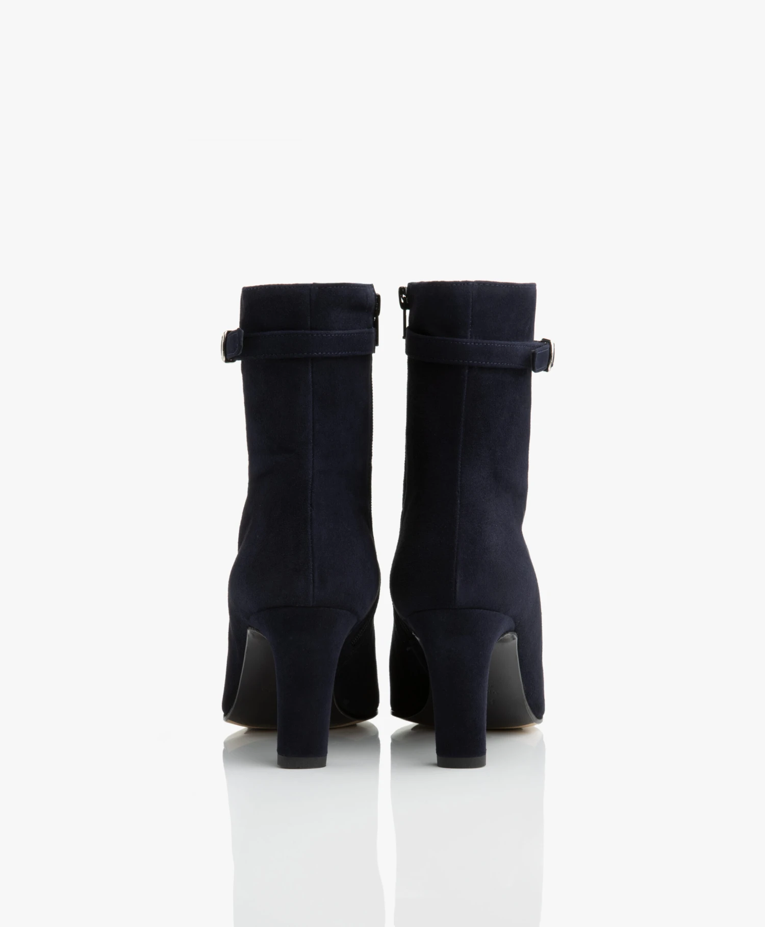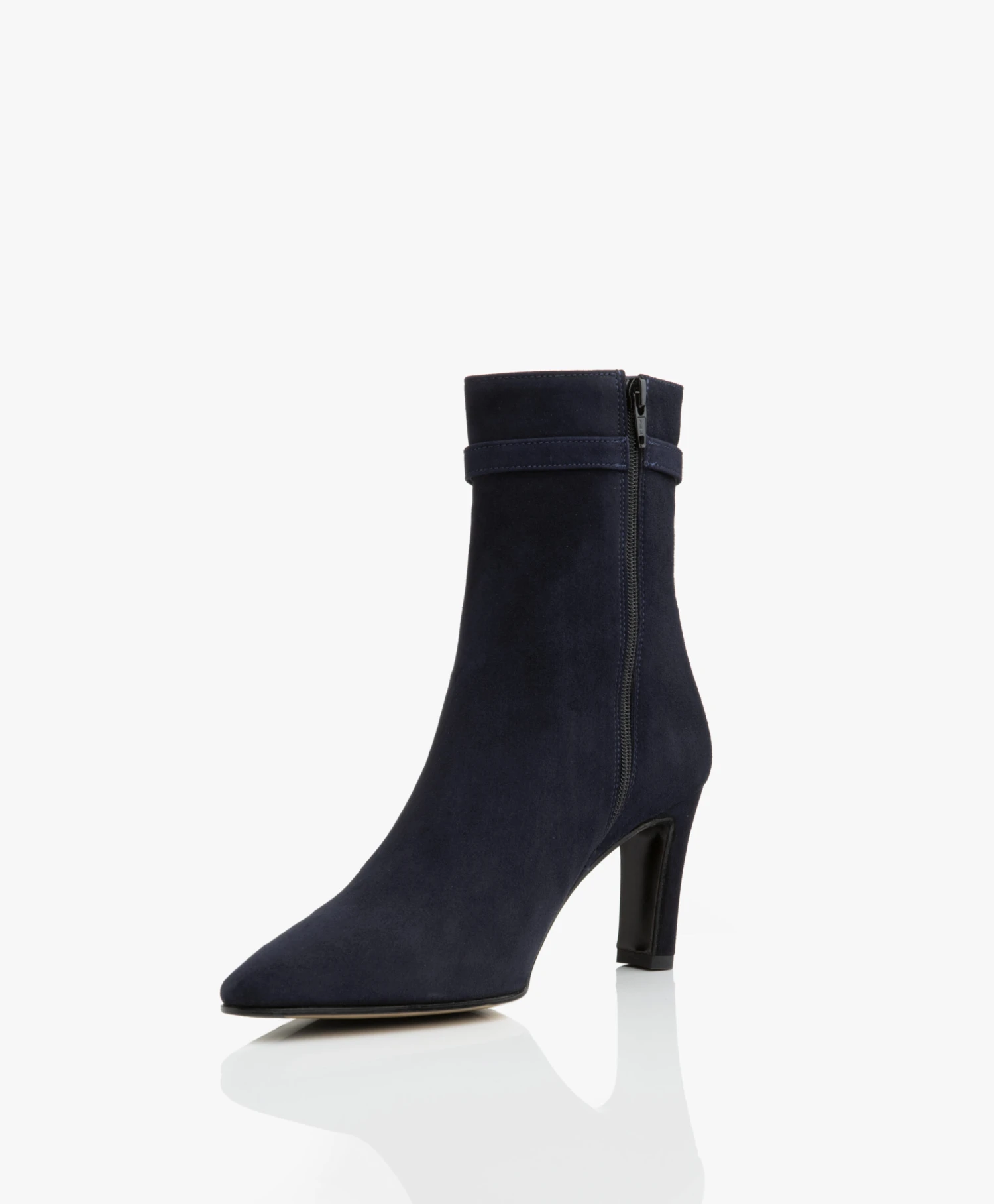 Deze stijlvolle enkellaarzen van Panara zijn uitgevoerd in een donkerblauwe, hoogwaardige suède kwaliteit. Ontworpen met een decoratief gespbandje, een met suède bekleedde middelhoge hak, een elegante schachthoogte en een puntige neus voor een vrouwelijke uitstraling. Door de ritssluiting aan de binnenkant zijn de laarzen gemakkelijk aan te trekken.