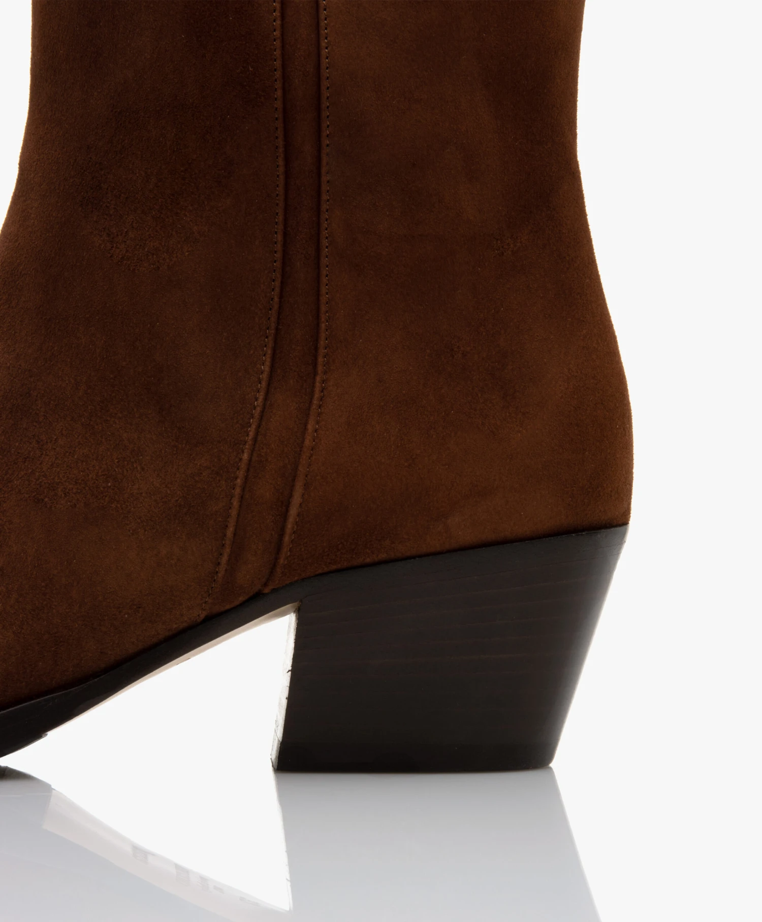 Met een stijl die tijdloosheid ademt en de mooiste kwaliteit suède, is dit een typsiche Panara laars. De kastanjebruine enkellaarzen knipogen met hun puntige neus, schuin geslepen blokhak en halfhoge schaft met pull-tabs subtiel naar een Western stijl, maar zijn tegelijkertijd minimalistisch genoeg om werkelijk met alles te combineren.