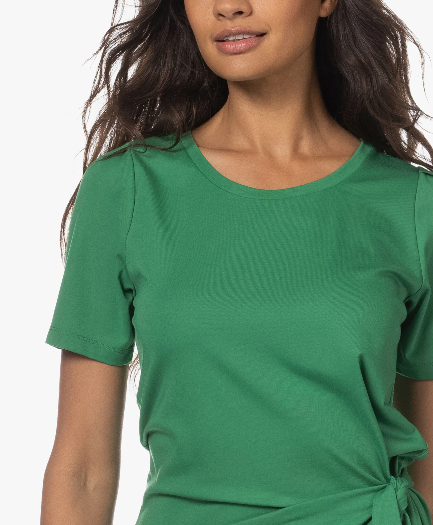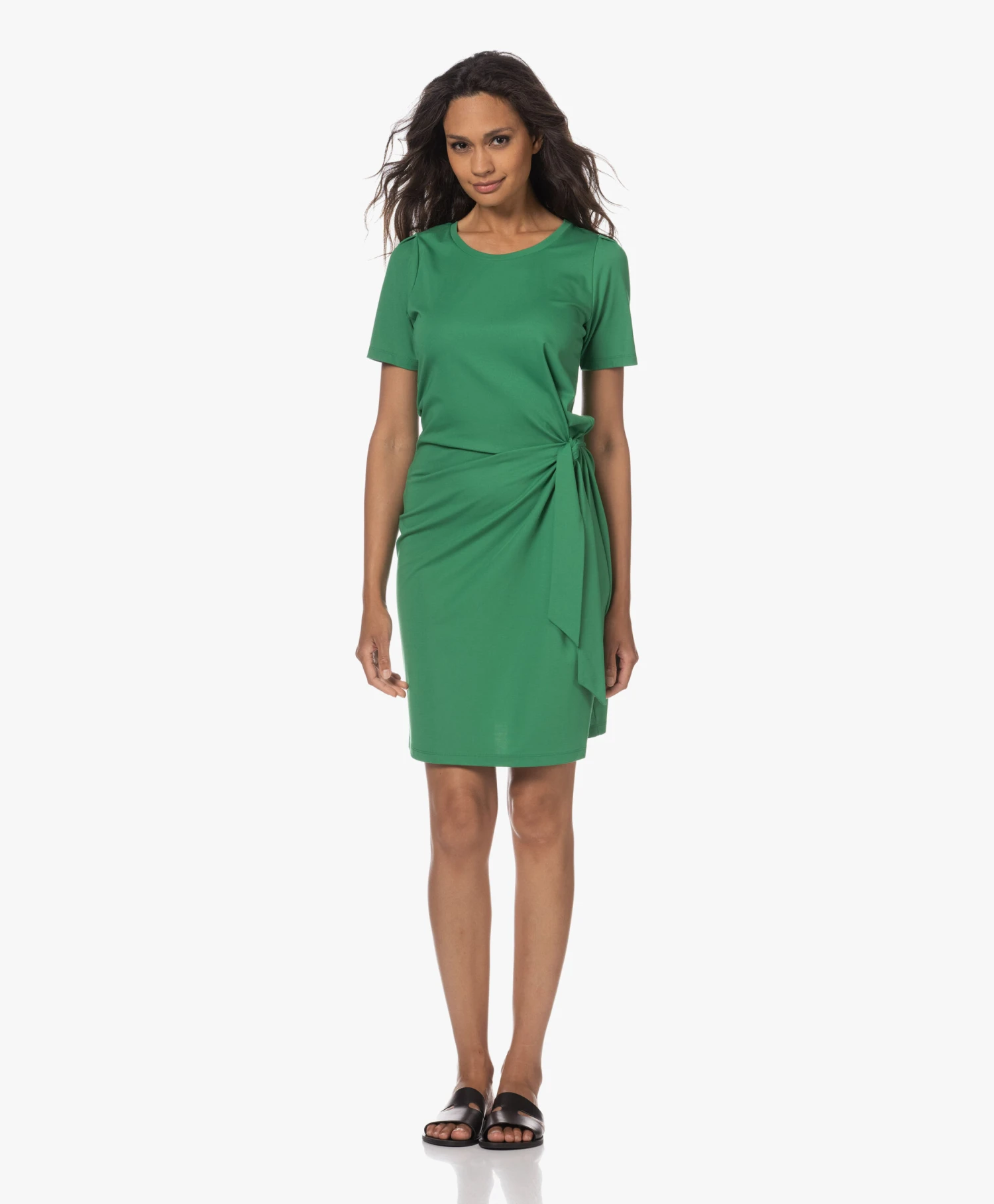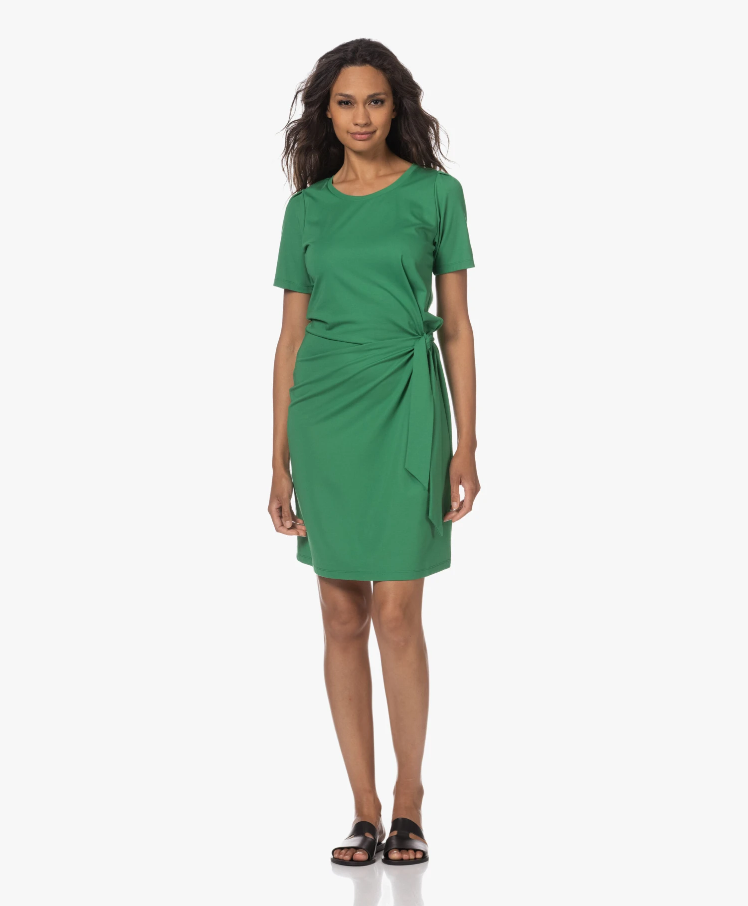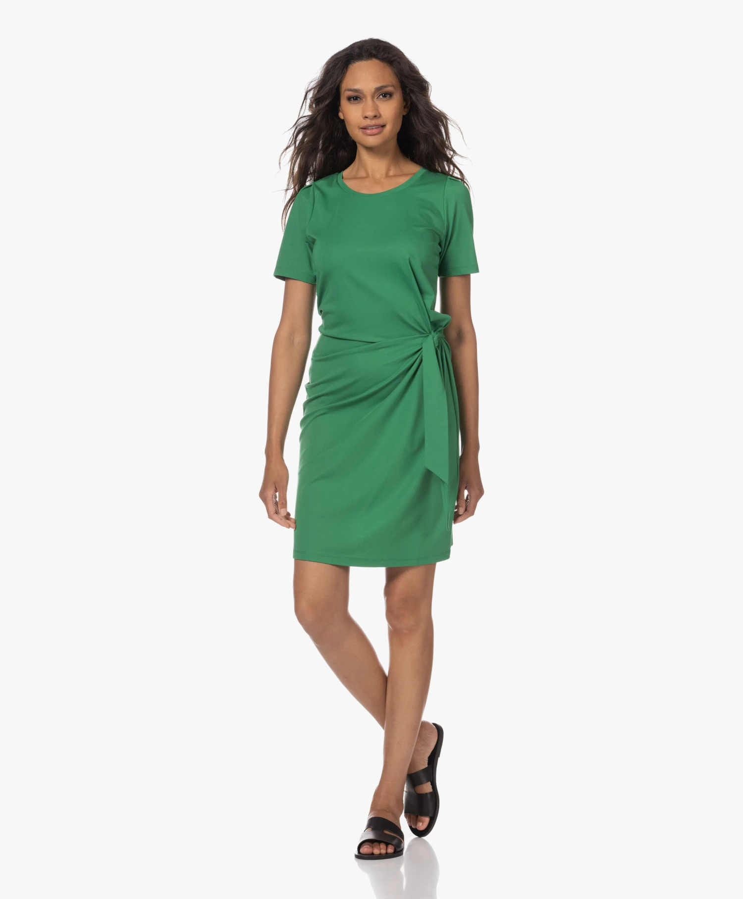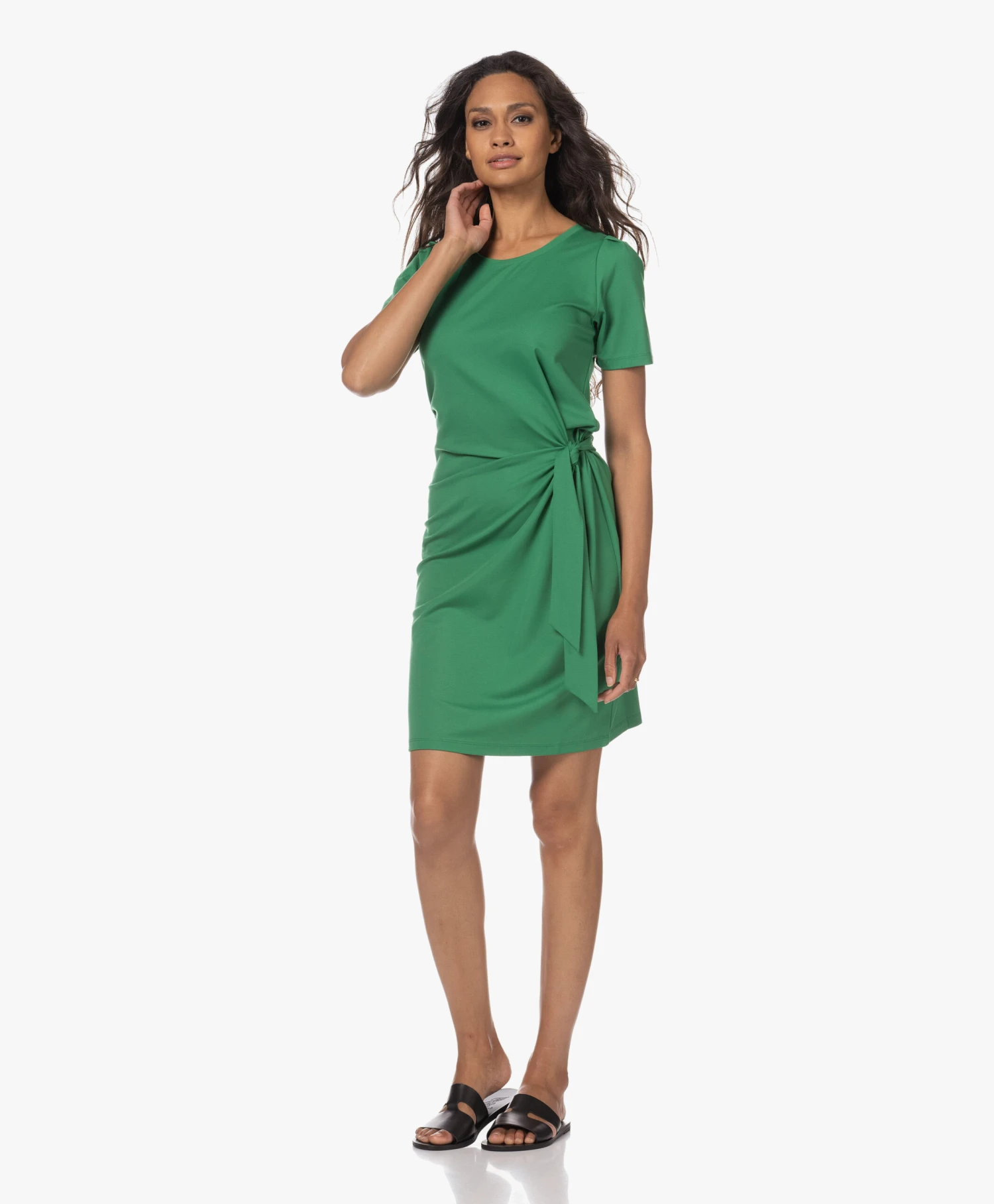 Je elegant en comfortabel kleden kan zo simpel zijn. Plein Publique laat het zien met jurk La Fee in heldergroen. Het is de combinatie van de ronde hals, de (faux) wikkelconstructie en de lengte tot boven de knie ten grondslag ligt aan de stijlvolle look. En het comfort? Dat zit ‘m in de glad aanvoelende interlock stretch-jersey van viscosemix die net even wat zwaarder is, en dus mooi valt.