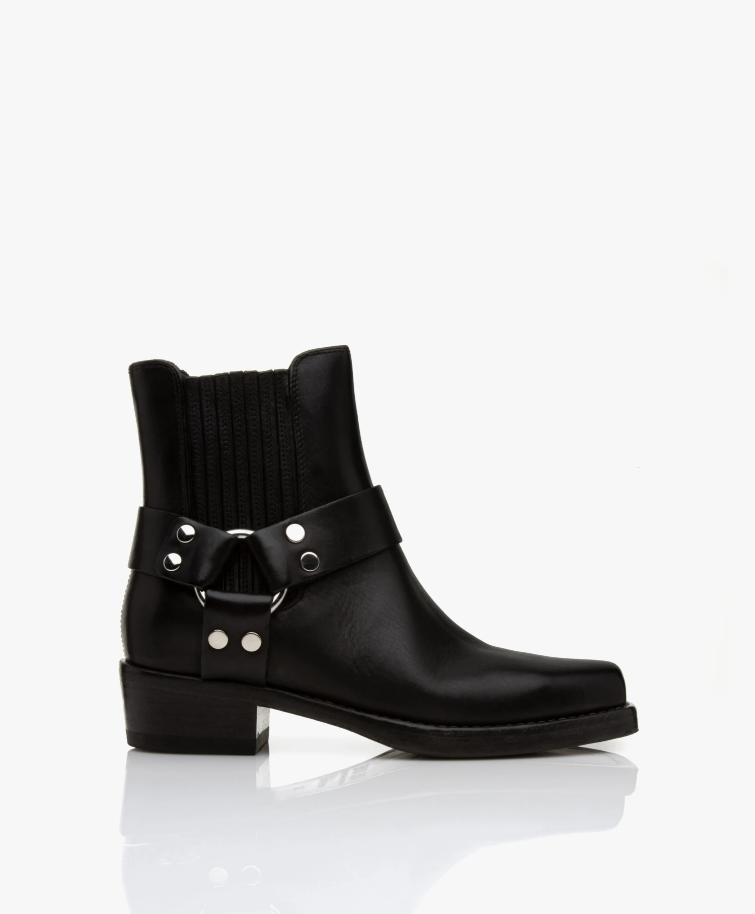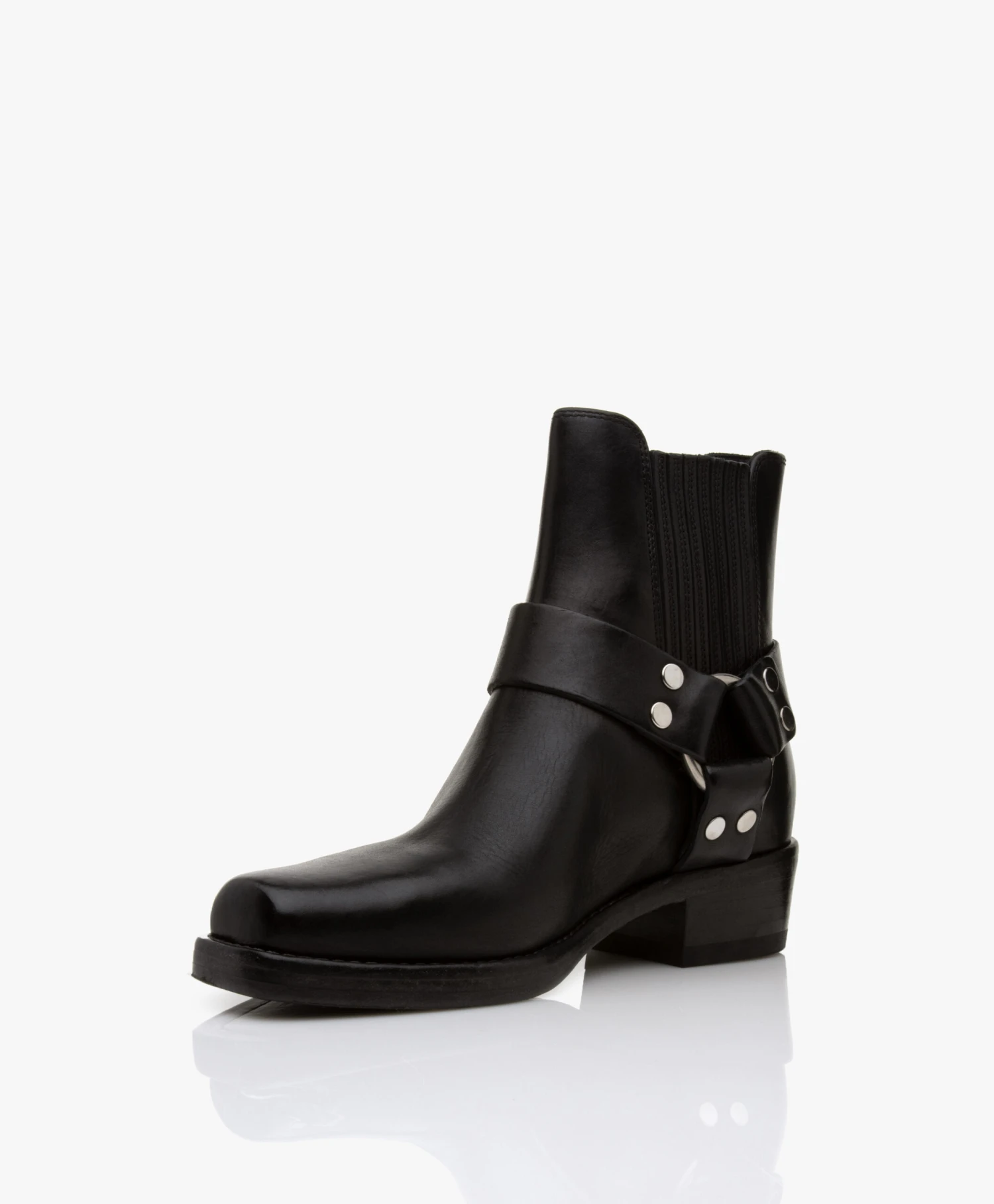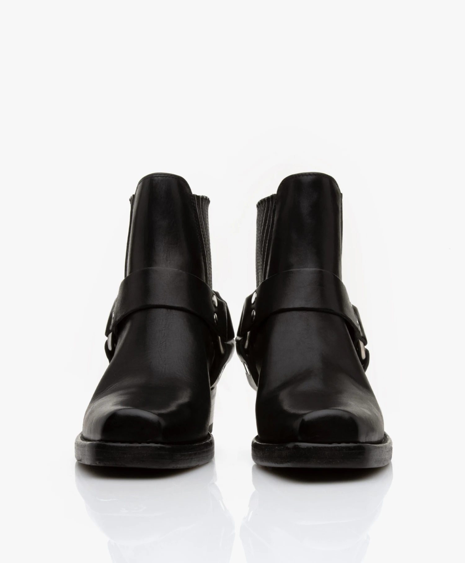 RE/DONE brengt met de Cavalry enkellaarzen een iconische stijl die op eigentijdse én modische wijze refereert aan een Western-geïnspireerde look en feel. Deze zwarte korte laarzen zijn vervaardigd van een hoogwaardige, gladde leerkwaliteit die gecombineerd is met een opgeschuurde hak én zool. De veelzijdigheid van dit ontwerp laat zich blijken in de eindeloze combinatiemogelijkheden.