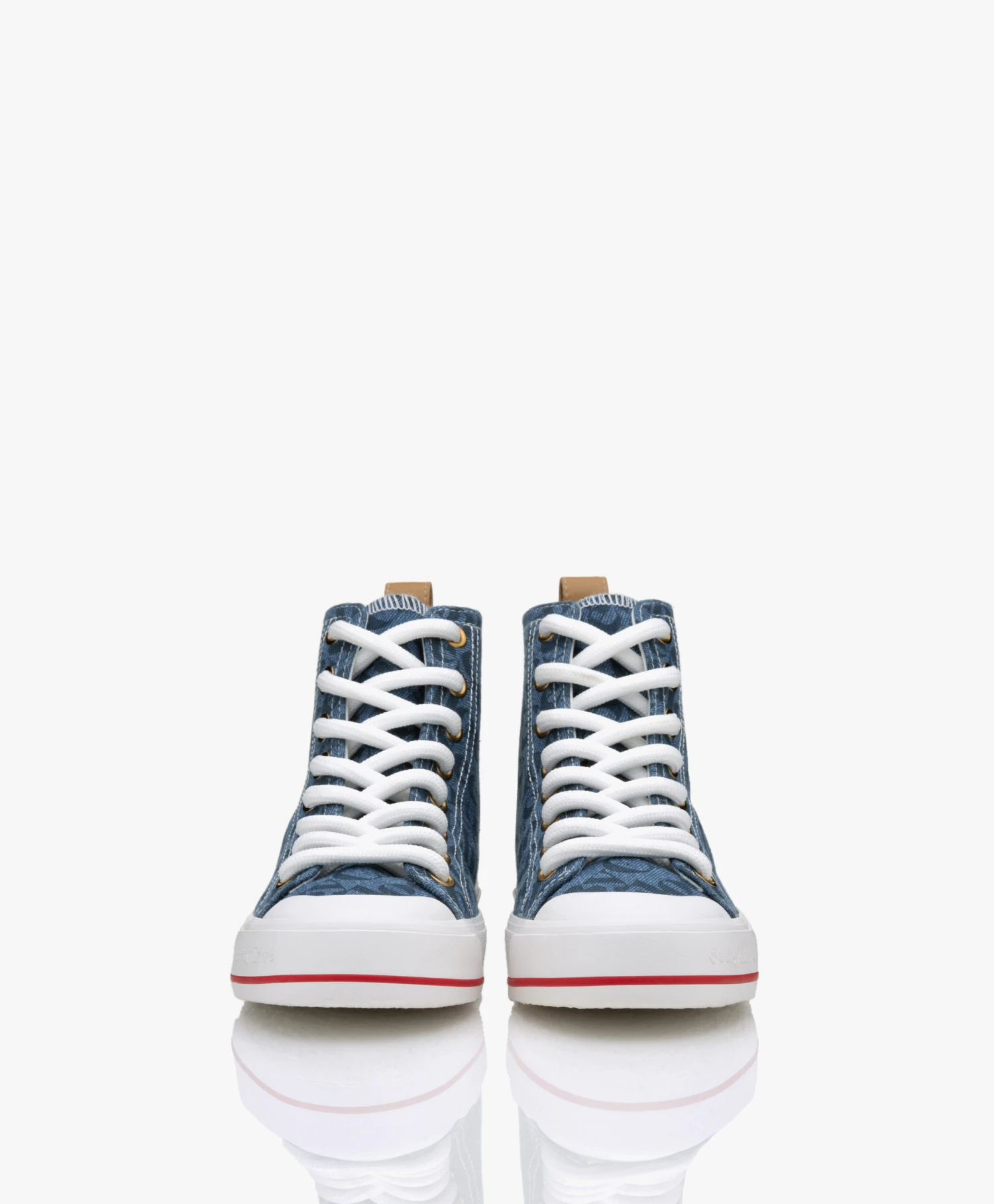 Deze Aryana old-school high-tops in blue denim van See By Chloé zijn all-over bedrukt met de merknaam en geven je casual look een high-end finish. De Aryana sneakers zijn ontworpen met oog voor detail: de hiellus is van naturel leer met embossed logo en de witte veters zijn rond en chunky. Goudkleurige veterogen geven deze sportieve sneakers een luxe vrouwelijke touch.