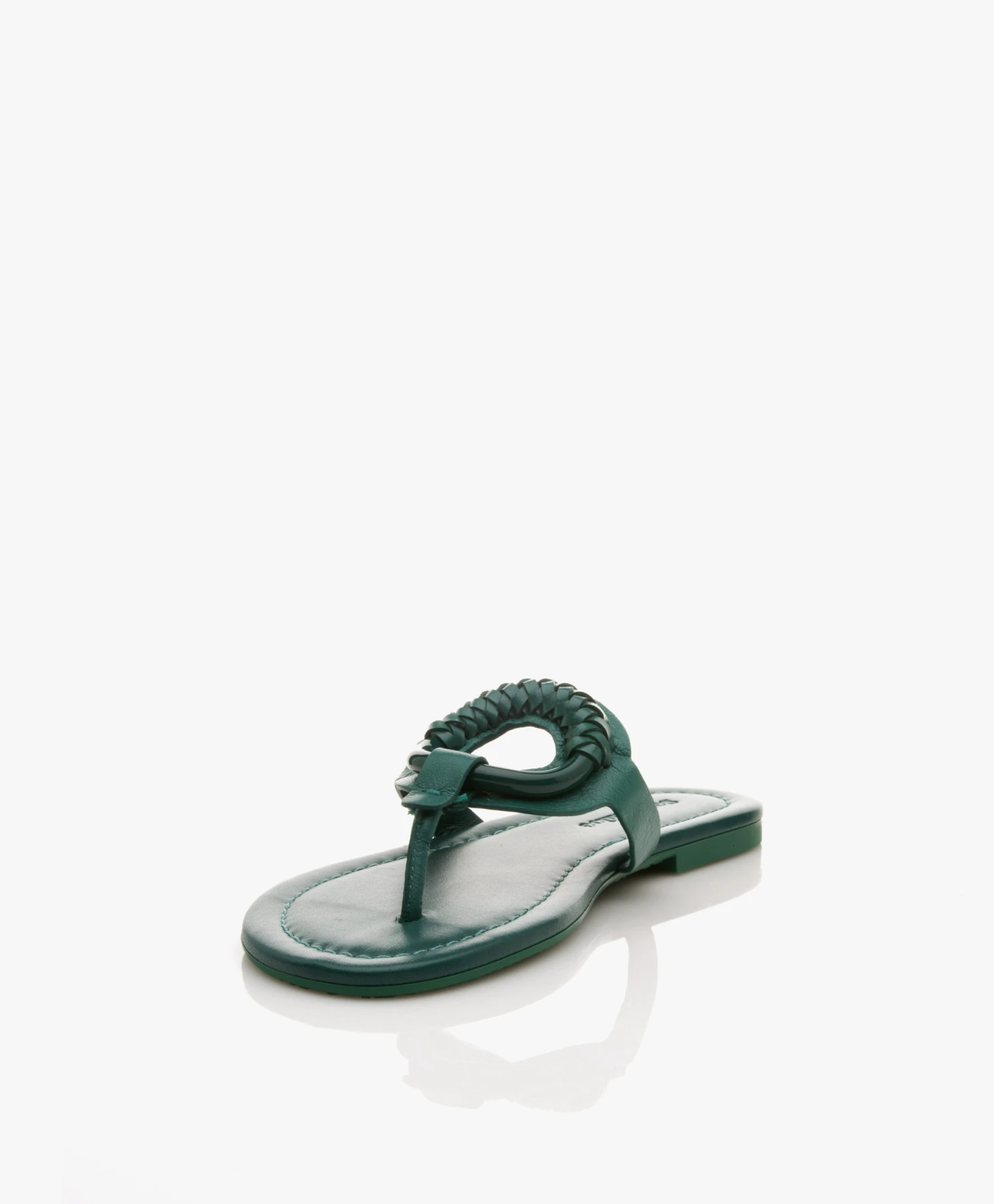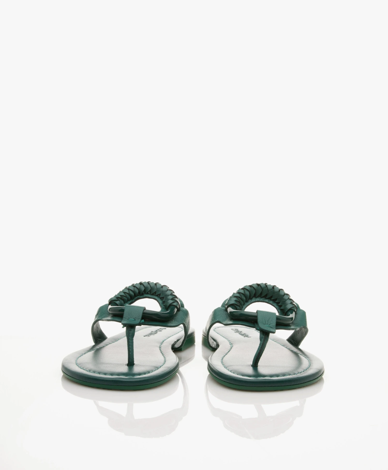 Deze groene Hana teensandalen van See by Chloé worden gekenmerkt door de – voor het merk zo iconische – ring die de leren wreef van de slippers siert – ditmaal uitgevoerd in eigentijds groen. Gemaakt van een soepele kalfsleren kwaliteit die in combinatie met het leren voetbed en gelaagde hak optimaal comfort garandeert. What’s not to love?
