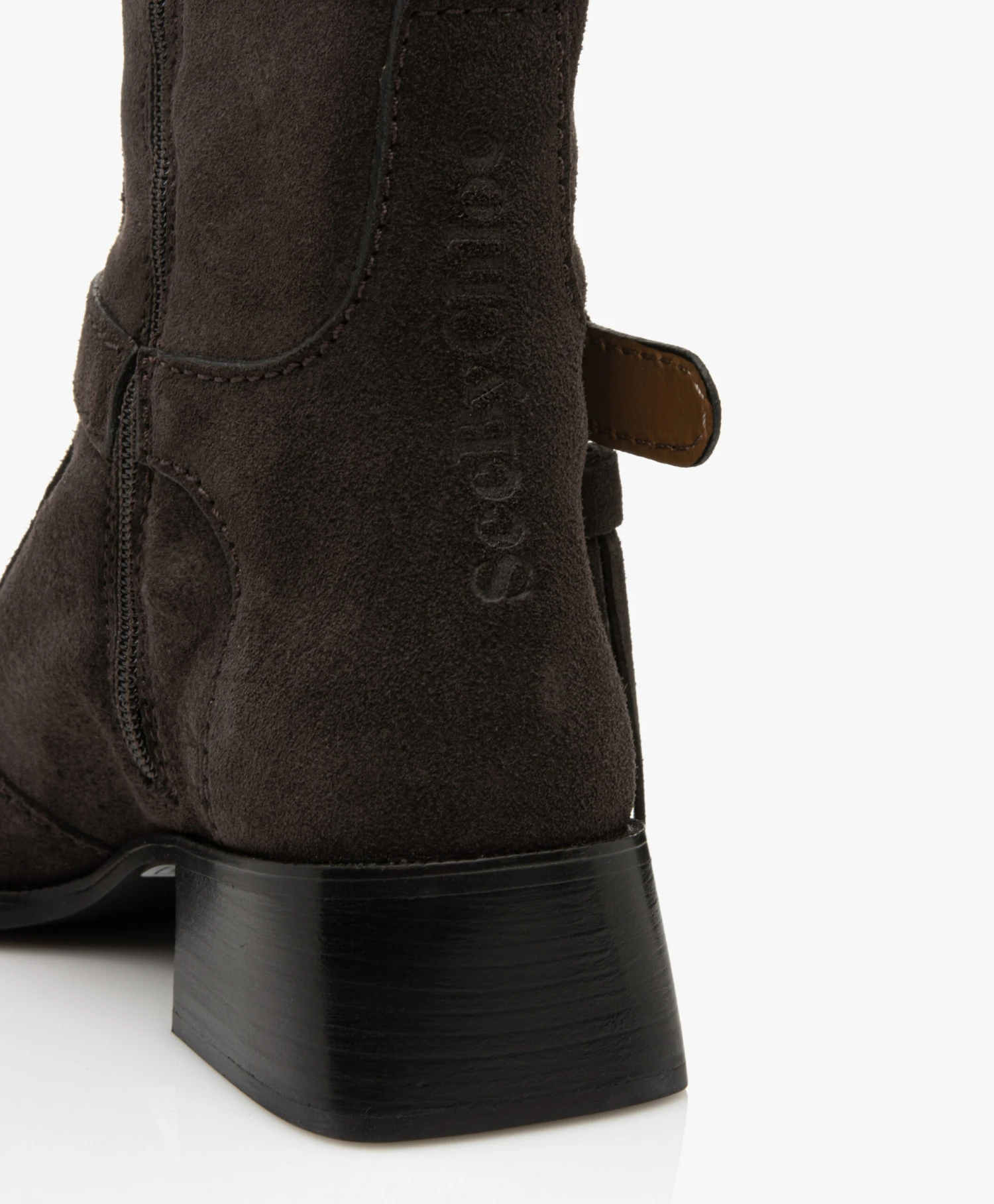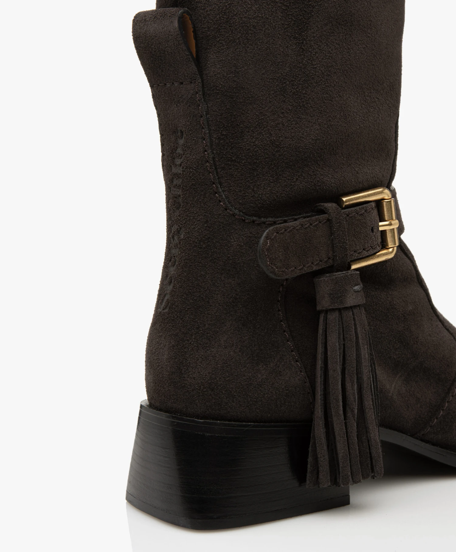 Hello beauties! De overknee Lory laarzen, uit de collectie van See by Chloé, komen in een vergrijsd bruine kleurtint die door de subtiele vleug van de hoogwaardige suède kwaliteit soms wat lichter of donkerder lijkt. Details zijn er in overvloed: doorgestikte deelnaden, een leren kwastje aan de goudkleurige gesp en het merklogo debossed aan de achterkant voegen een chique touch toe. Het extra soepele leergedeelte bij de knie heeft een afgeronde split aan de achterzijde om optimaal comfort te bieden bij het lopen of bij het aan- en uittrekken.