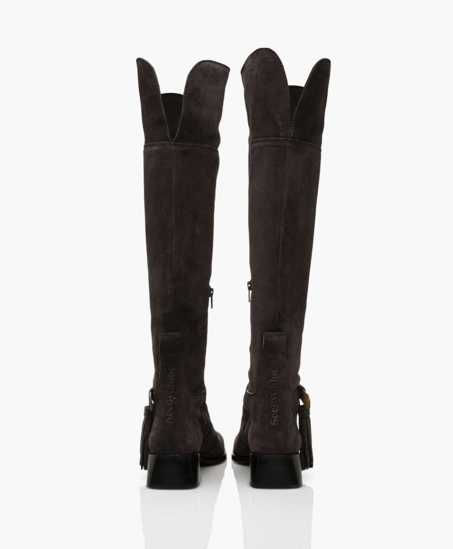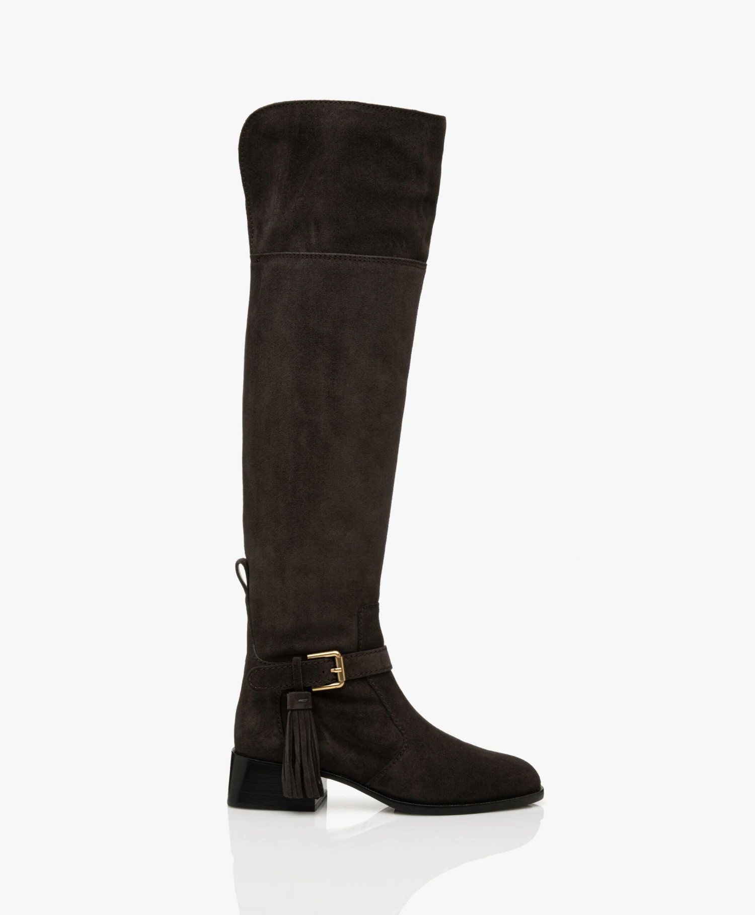 See By Chloé Lory Suède Overknee Laarzen – Grijsbruin