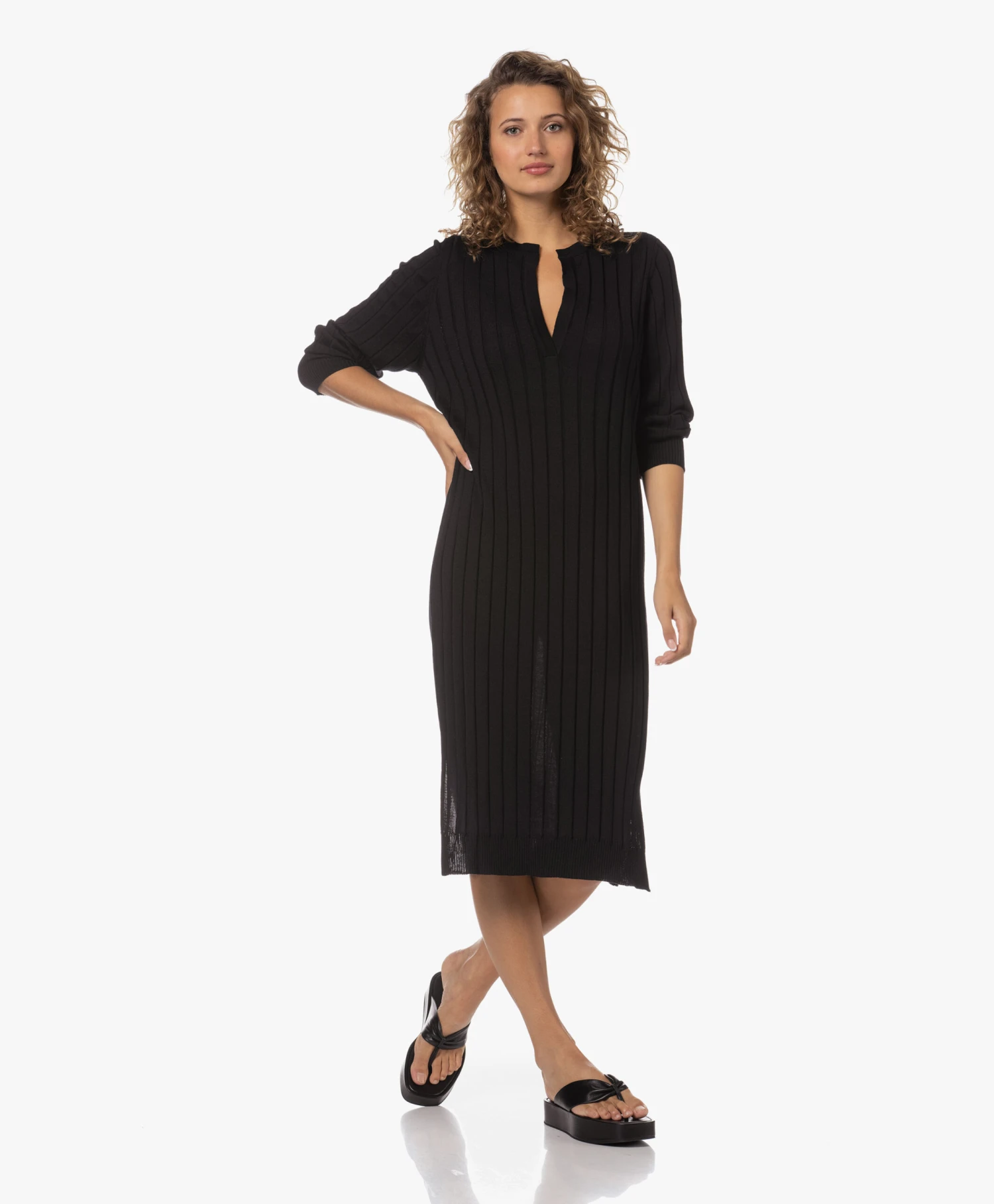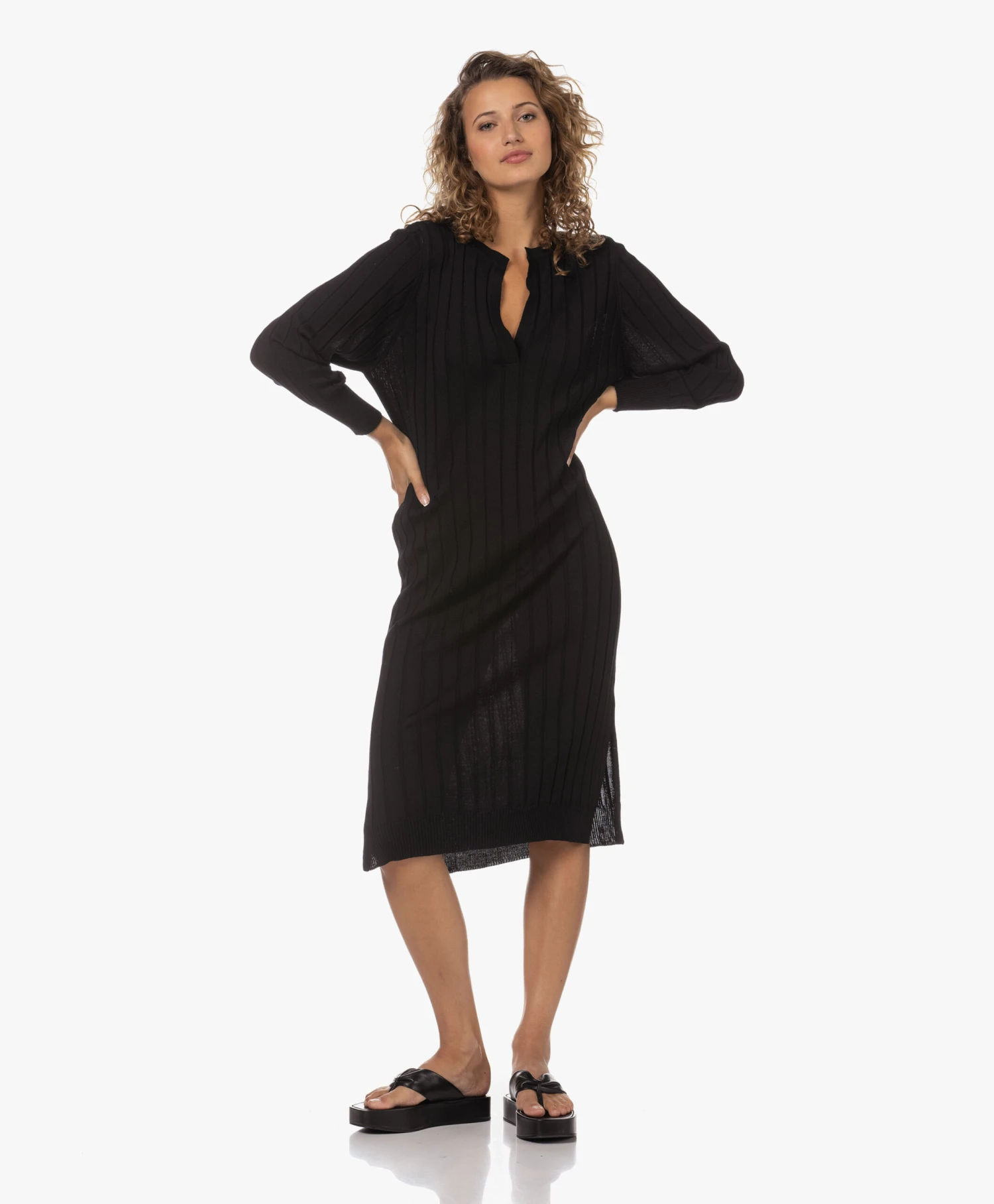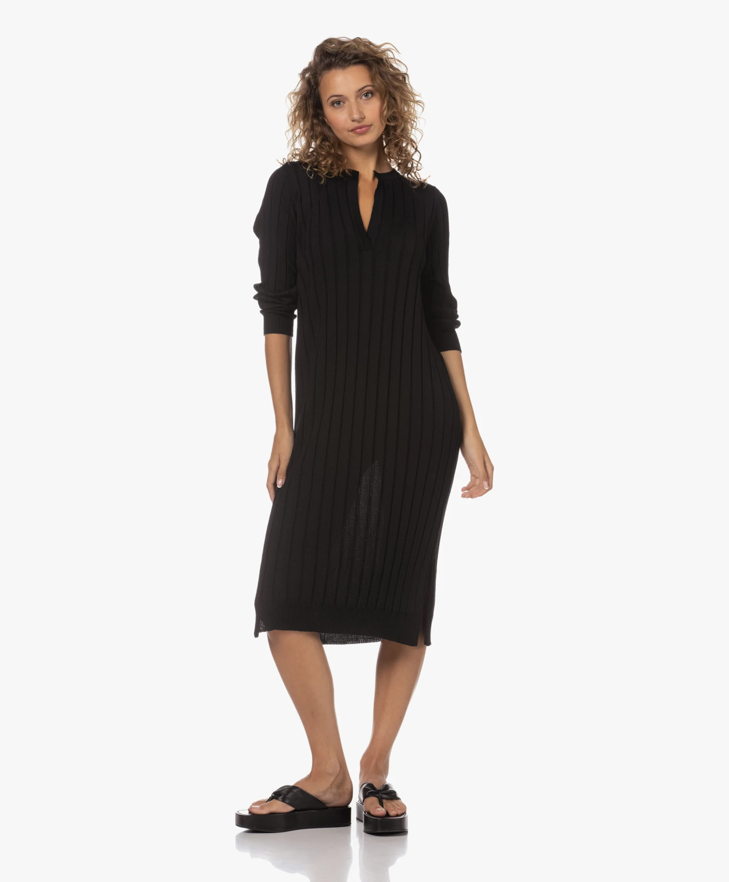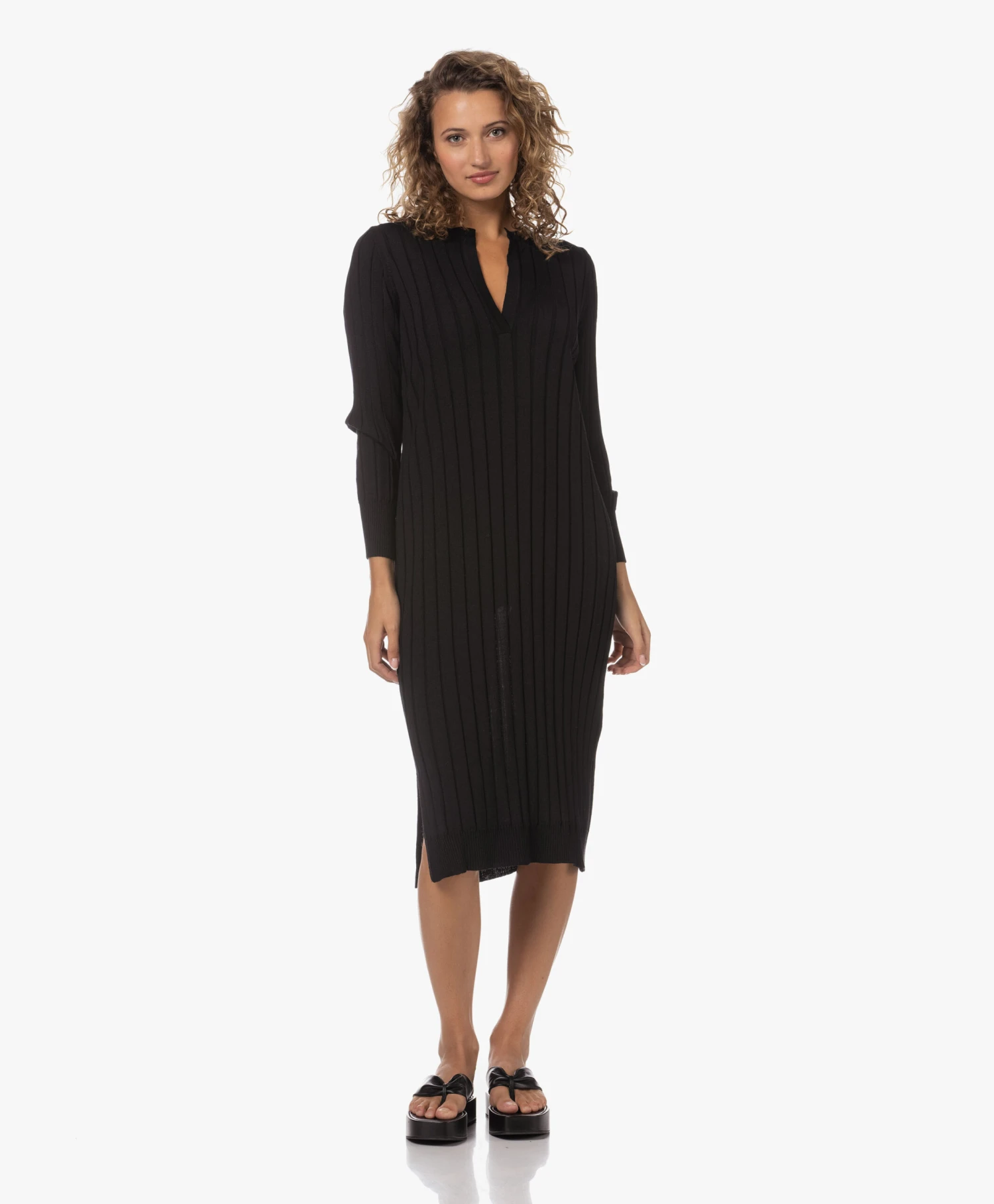 Ongeacht hoe je collectie gebreide jurken ervoor staat, voor Sibin/Linnebjerg’s zwarte Aberta jurk is vast nog wel een plekje te vinden. Daar ga je geen spijt van krijgen: de fijngebreide merinowollen jurk met brede ribstructuur en diepe halssplit straalt tijdloze klasse uit en draagt heerlijk comfortabel. Ons advies? Doen!