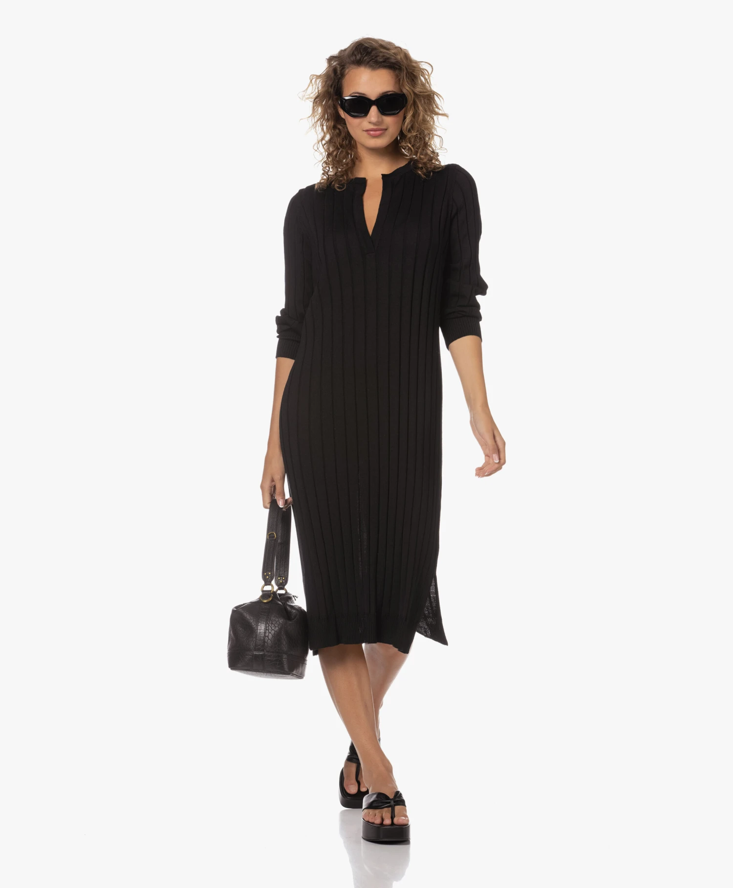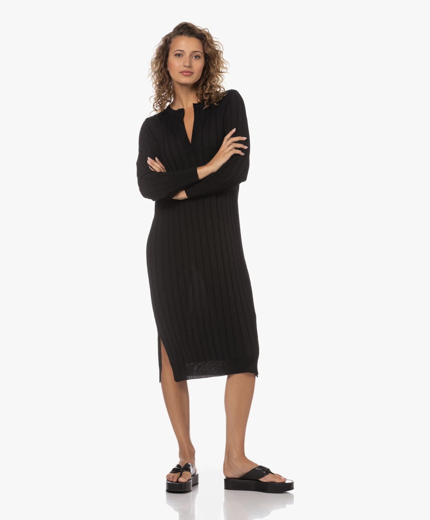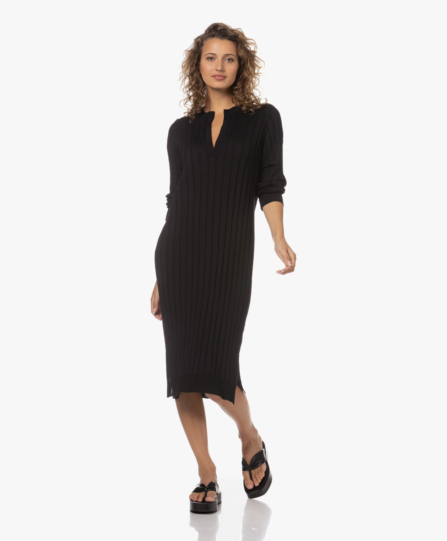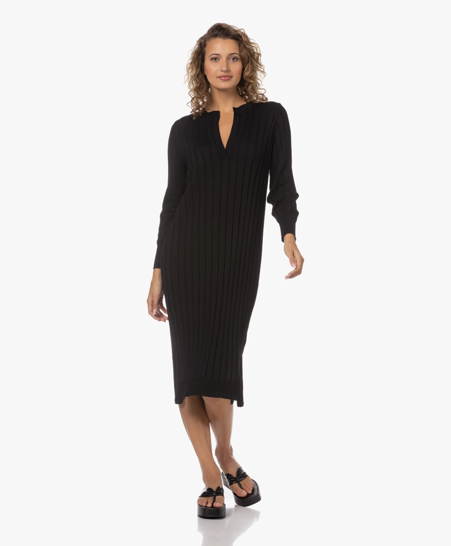 Ongeacht hoe je collectie gebreide jurken ervoor staat, voor Sibin/Linnebjerg’s zwarte Aberta jurk is vast nog wel een plekje te vinden. Daar ga je geen spijt van krijgen: de fijngebreide merinowollen jurk met brede ribstructuur en diepe halssplit straalt tijdloze klasse uit en draagt heerlijk comfortabel. Ons advies? Doen!