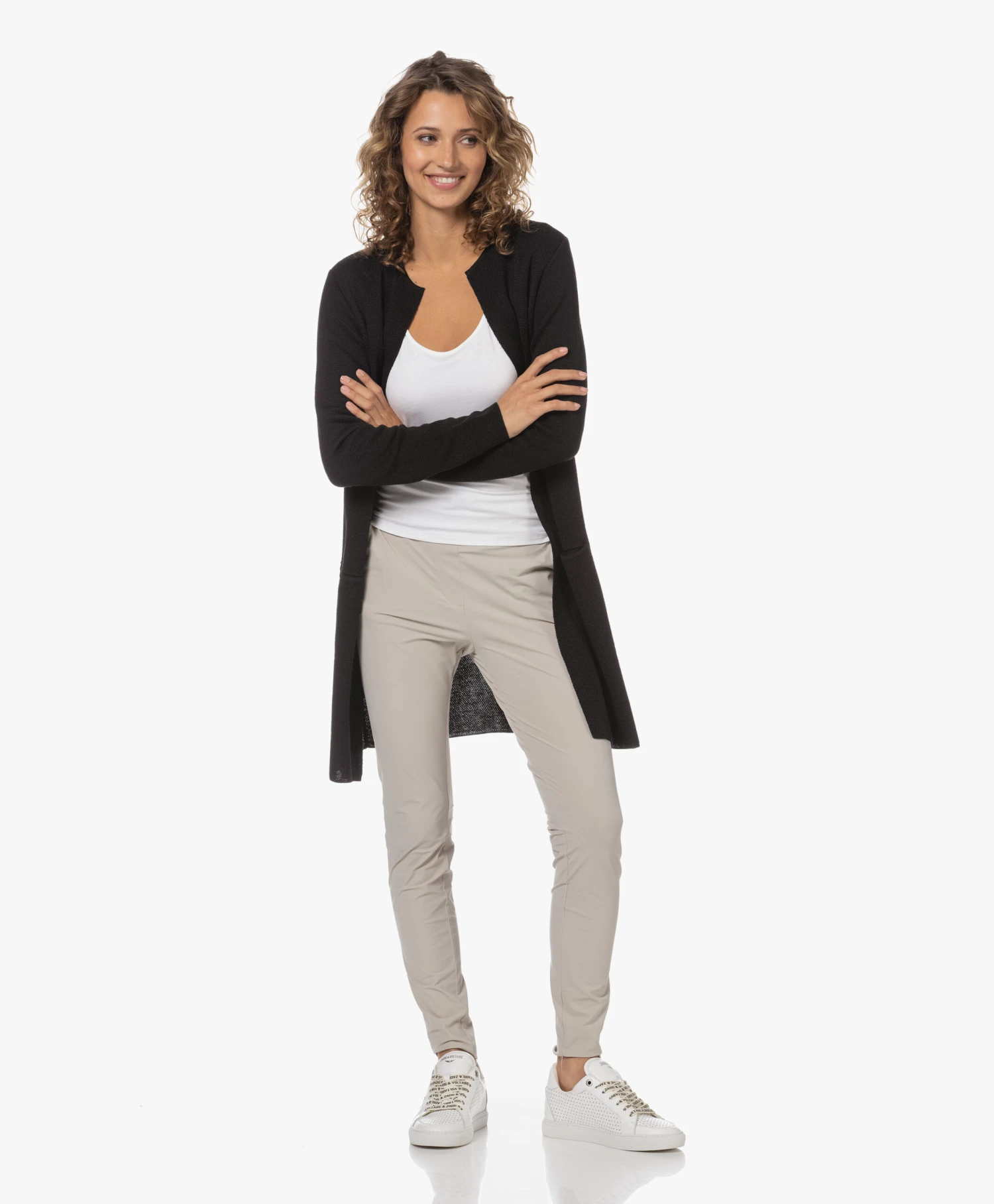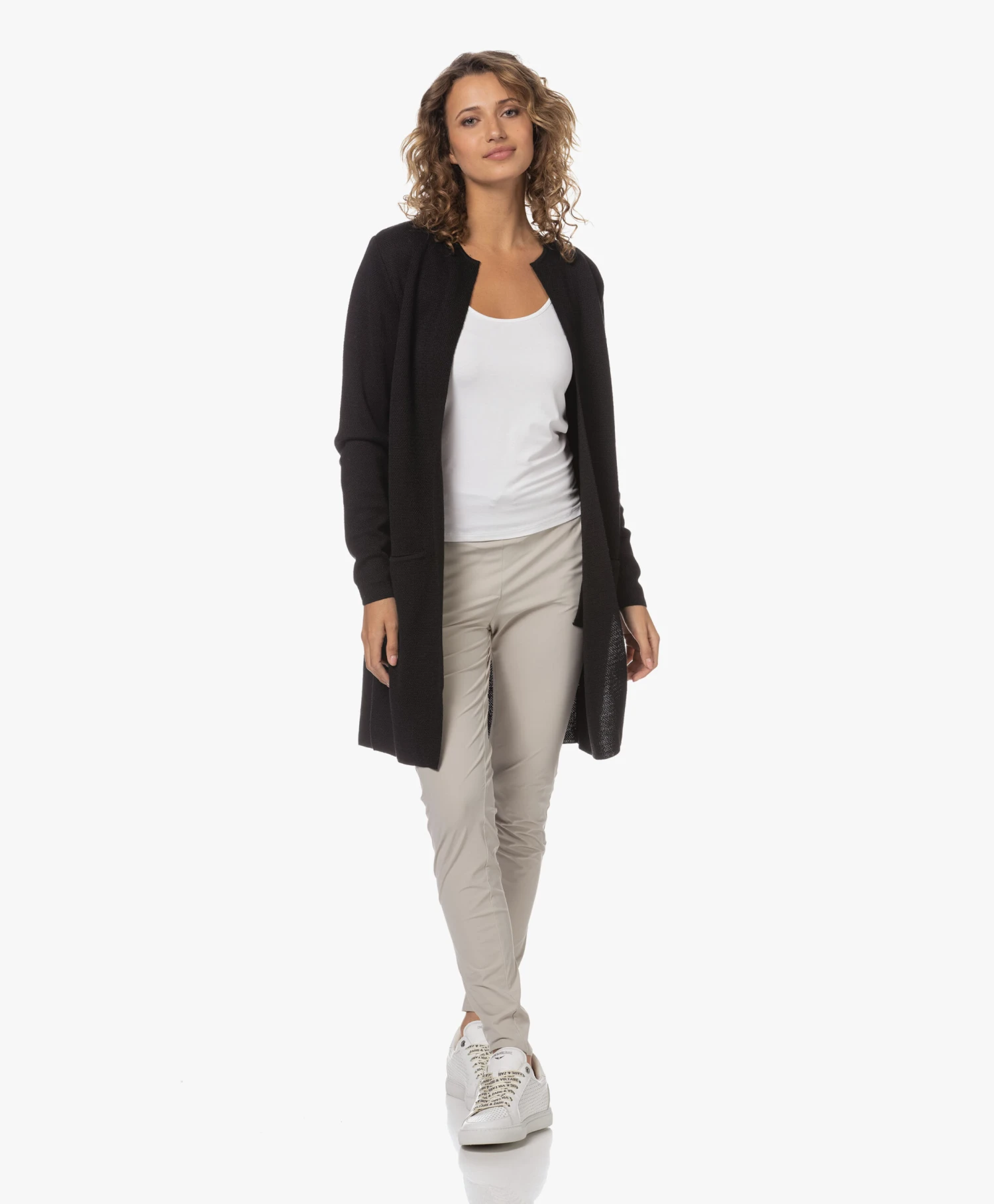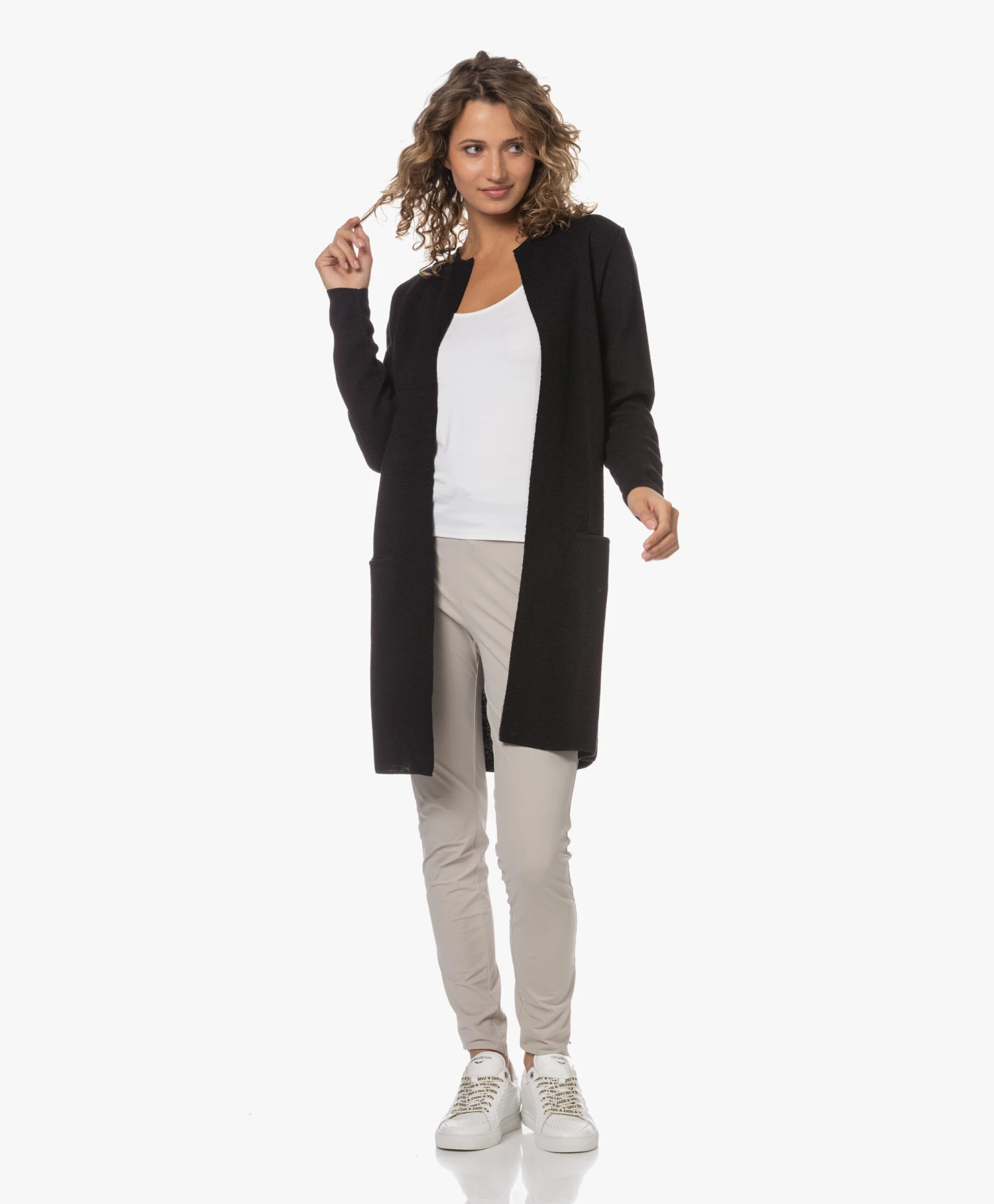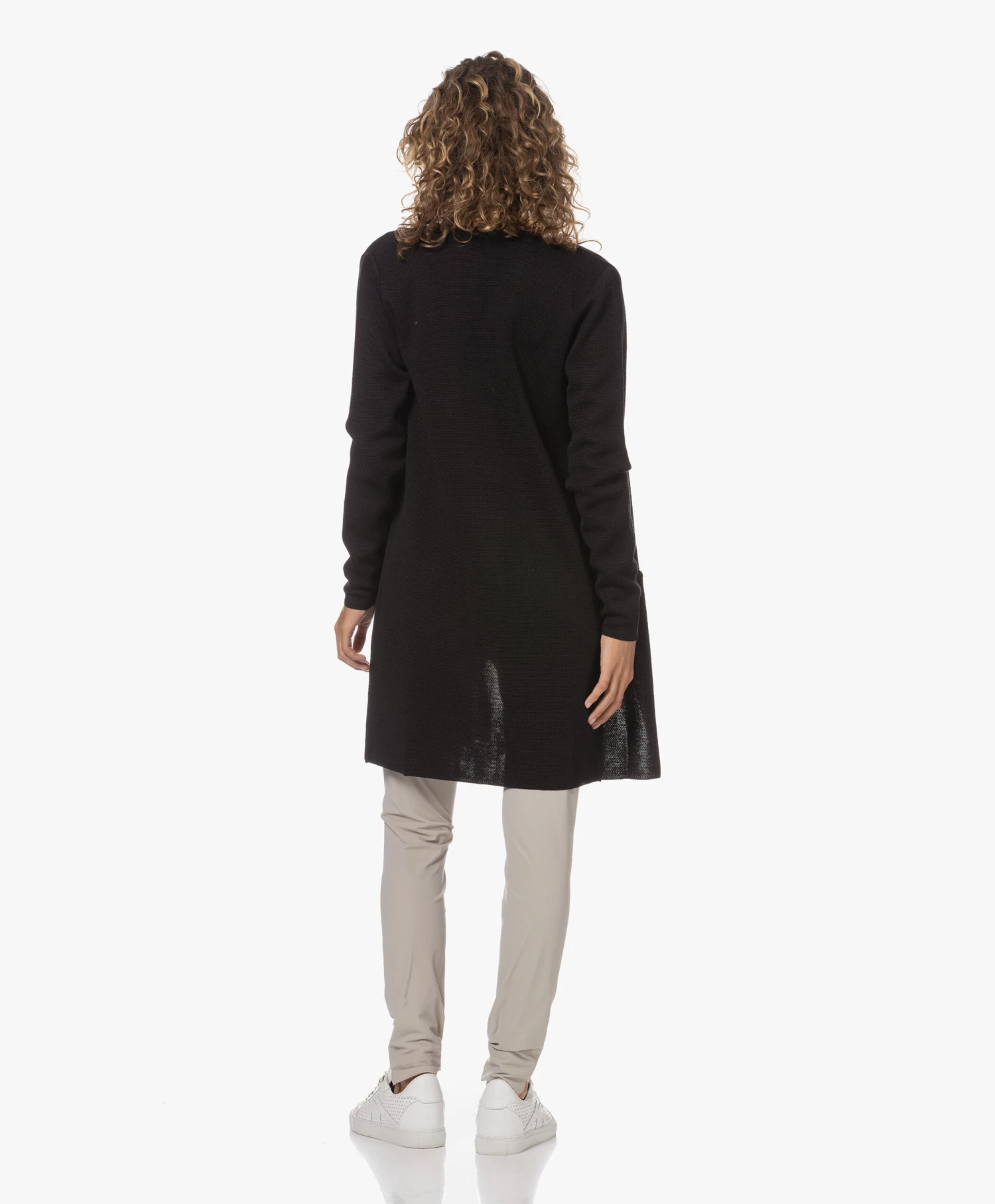 Een klassieker uit de Sibin/Linnebjerg collectie – dit zwarte Zuni vest in een modern, medium gebreide merino wolmix. De dijlange stijl is een veelzijdige keuze om gelaagd te combineren en draagt heerlijk comfortabel door de zachte materialenmix en de relaxte, rechte pasvorm.