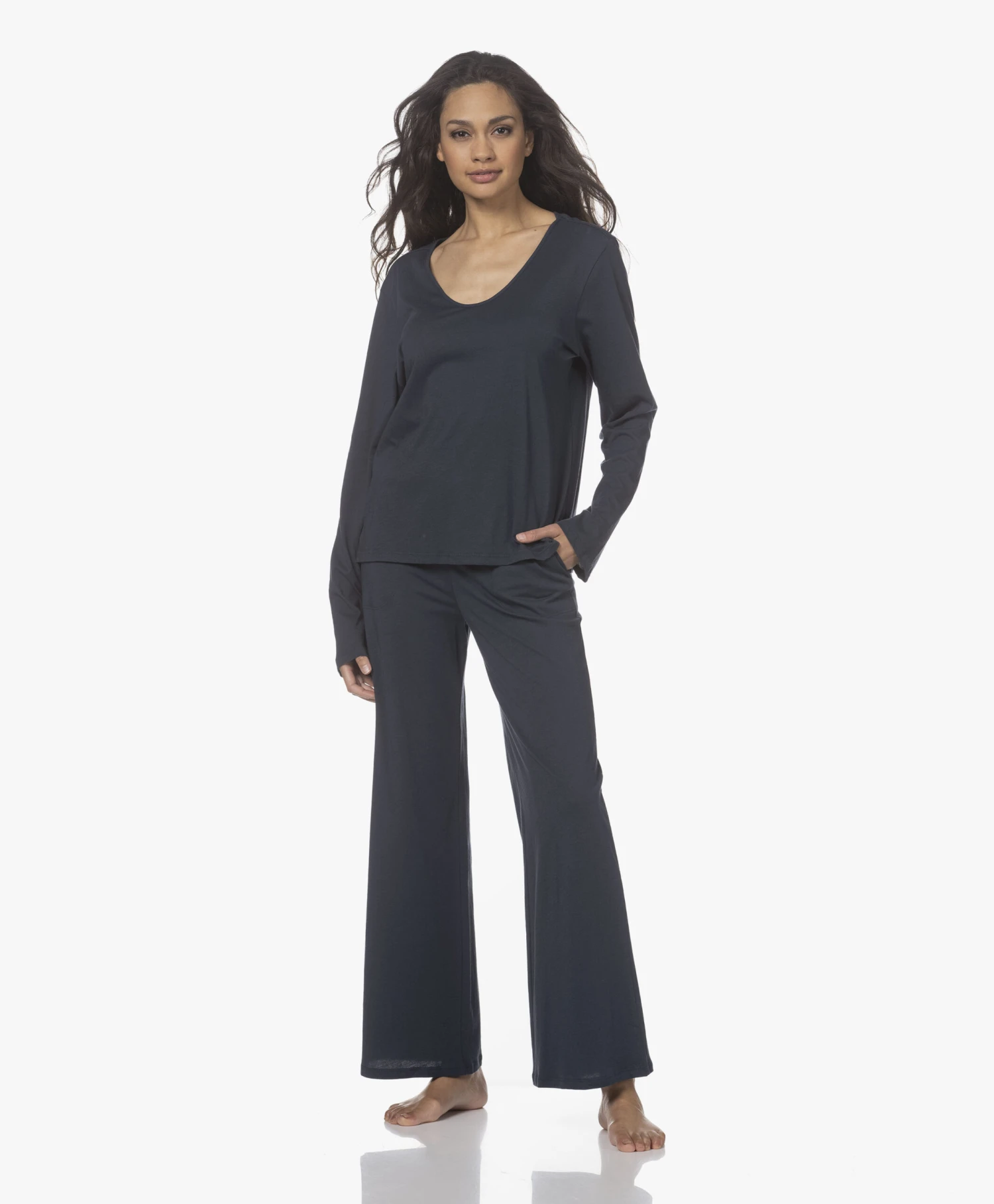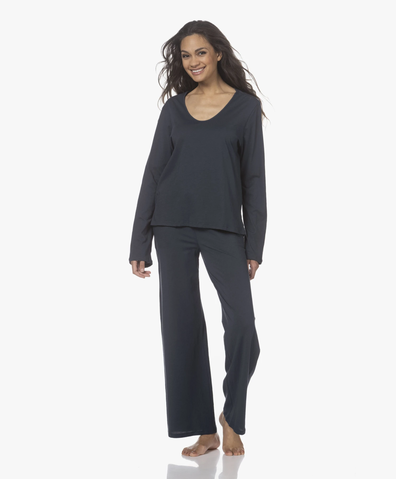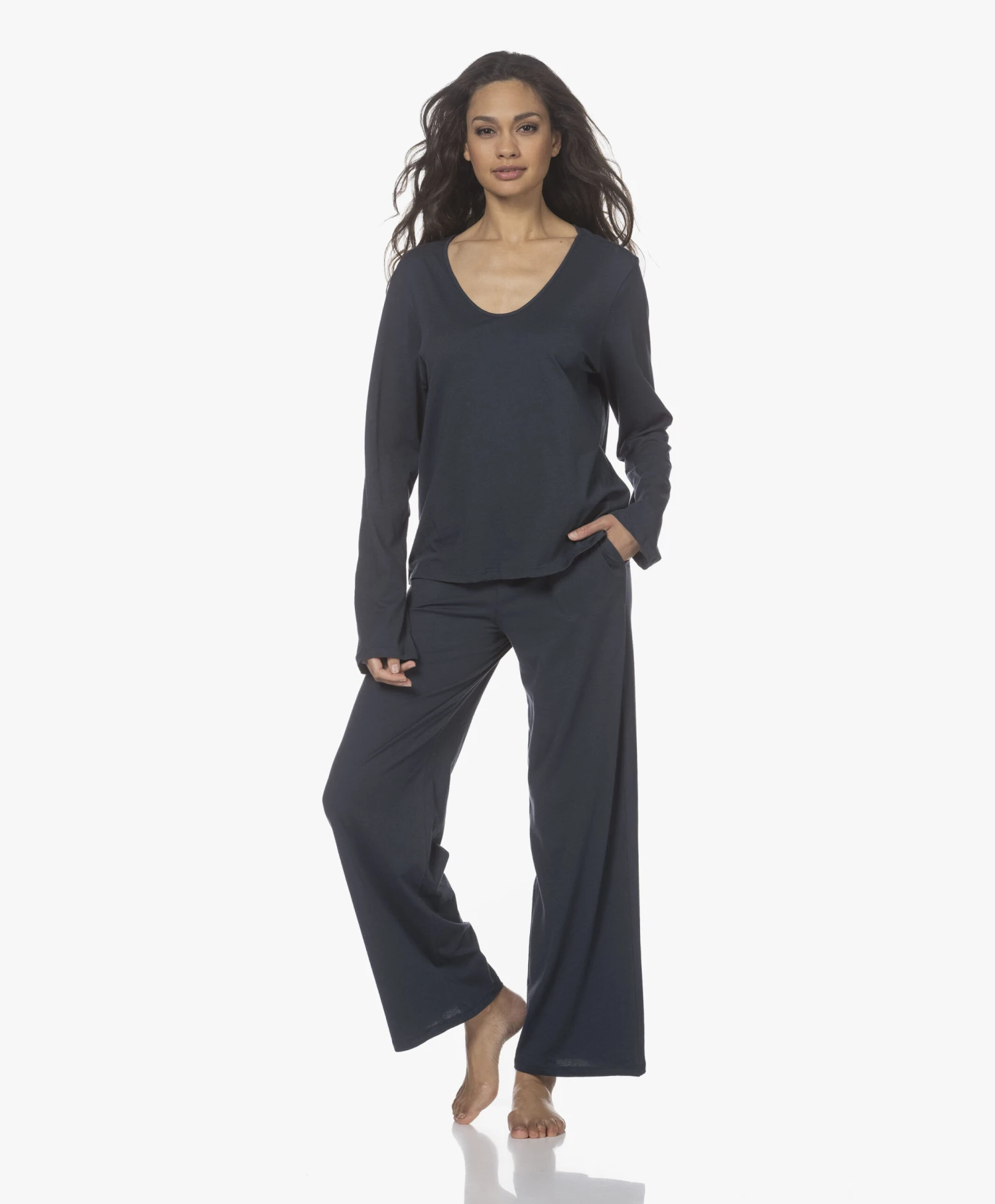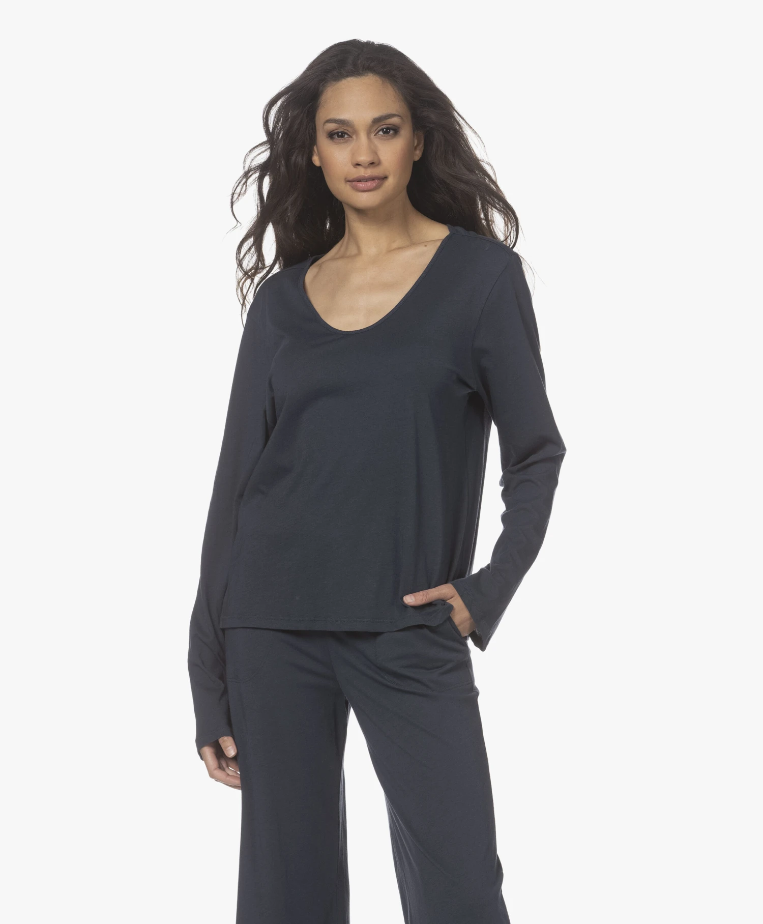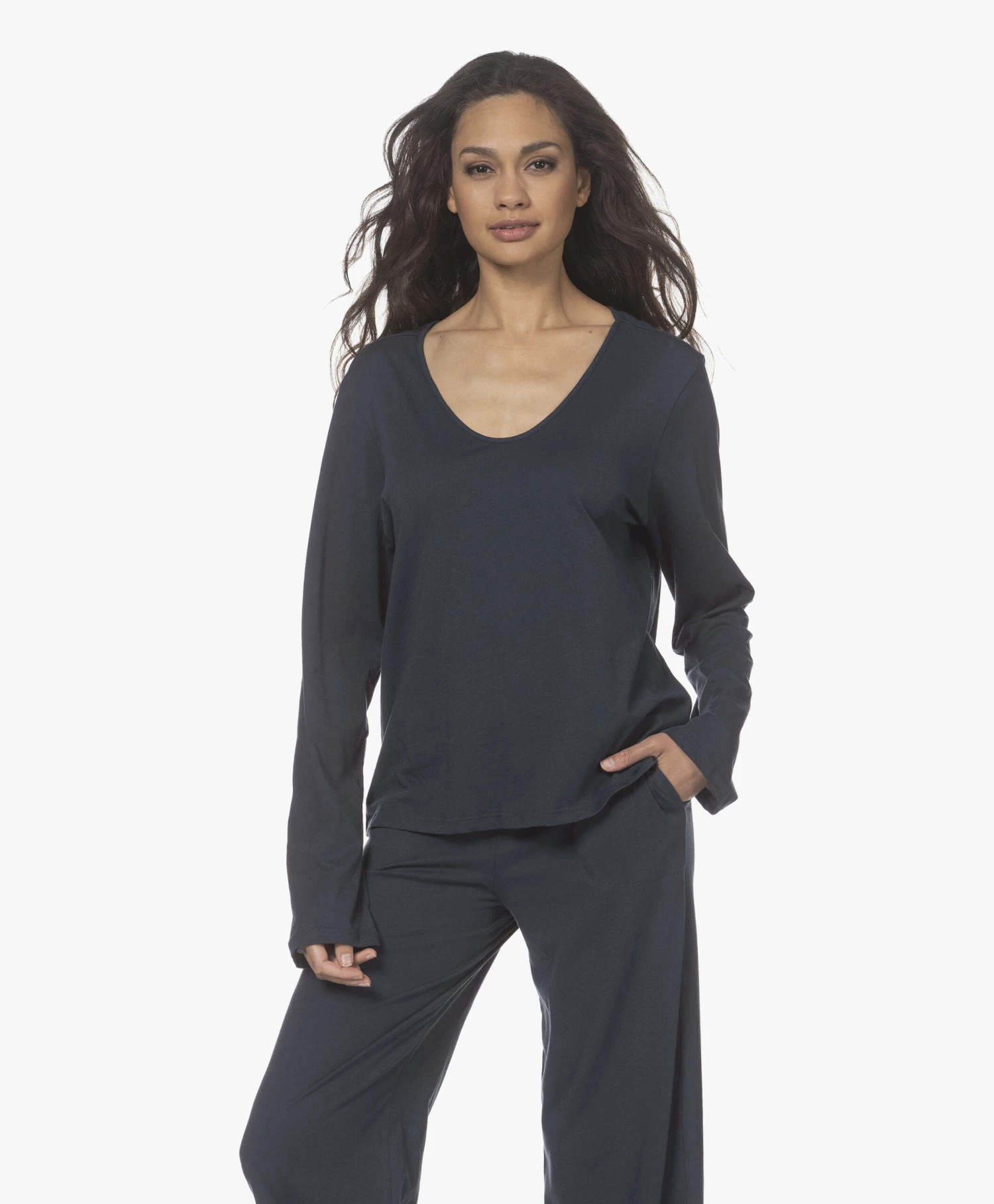 Skin is trots op haar single jersey van biologische pima katoen, en terecht: het is zachter en tegelijkertijd sterker dan ‘gewone’ katoen. The Caileigh longsleeve is met haar afgeronde V-hals zacht en vrouwelijk. De rechte relaxed-fit pasvorm is in gelijke delen comfortabel en stijlvol. Uitgevoerd in een donkerblauwe kleur.