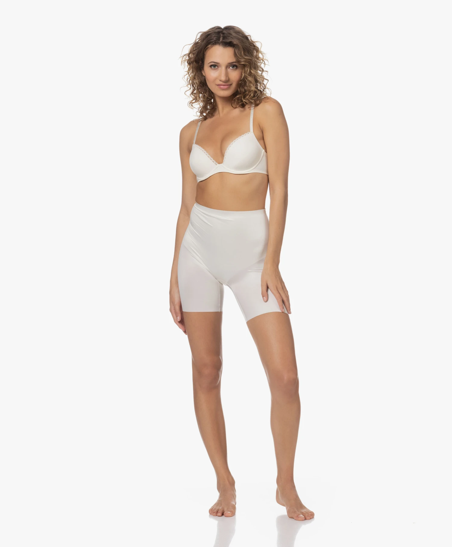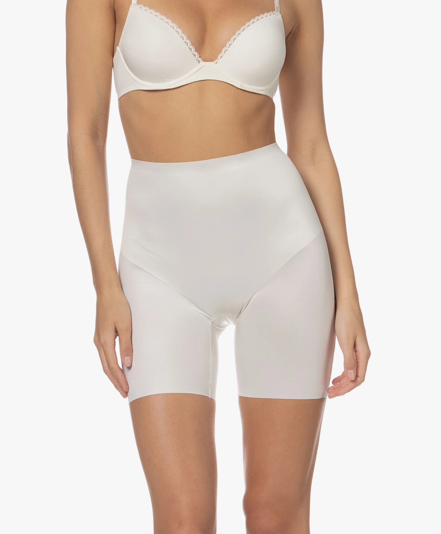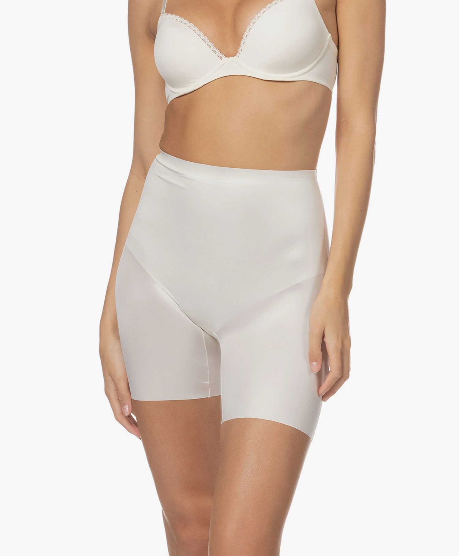 Shapewear alleen functioneel? Vooral bedoeld om te verstoppen onder kleding? De Shaping Satin collectie van SPANX brengt daar verandering in. Want naast dat de corrigerende en gladmakende eigenschappen van deze hoog getailleerde short een mooi gevormd silhouet creëren, doet de off-white glanzende satijnkwaliteit met daar nog een schepje bovenop: die laat je op en top vrouwelijk voelen.
