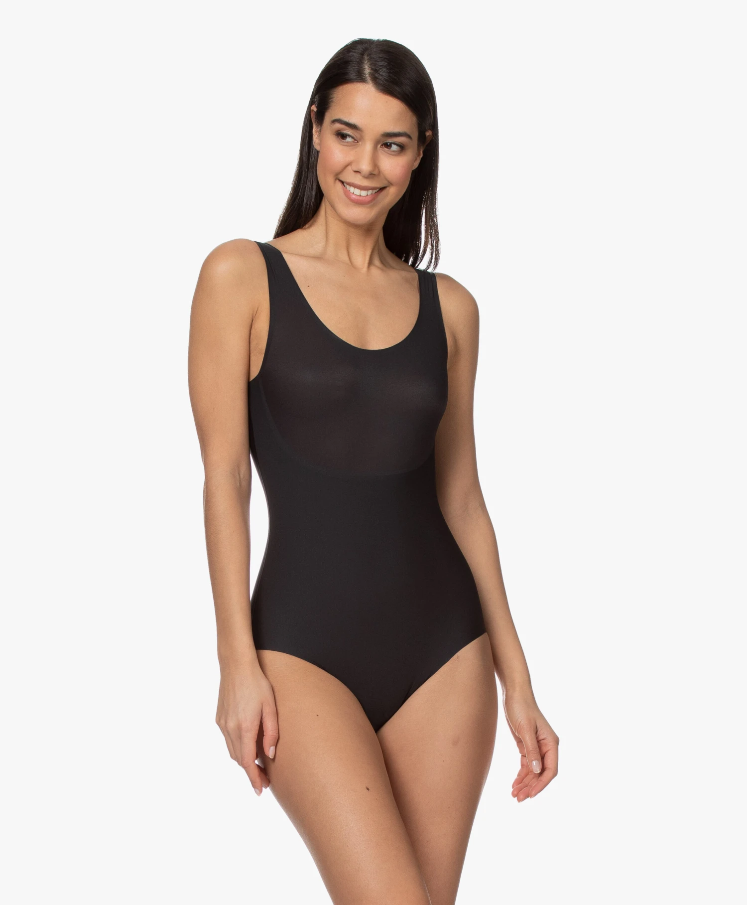 Deze zwarte bodysuit uit de Thinstincts collectie van SPANX is dankzij de ultra-dunne, ademende en lichtgewicht kwaliteit dé perfecte basis onder je favoriete kledingstukken. De lichte shaping en het gladmakende effect maakt de bodysuit met compressievrije buste perfect voor dagelijks gebruik. PS: de innovatieve SmartGrip technologie gaat oprollen tegen.