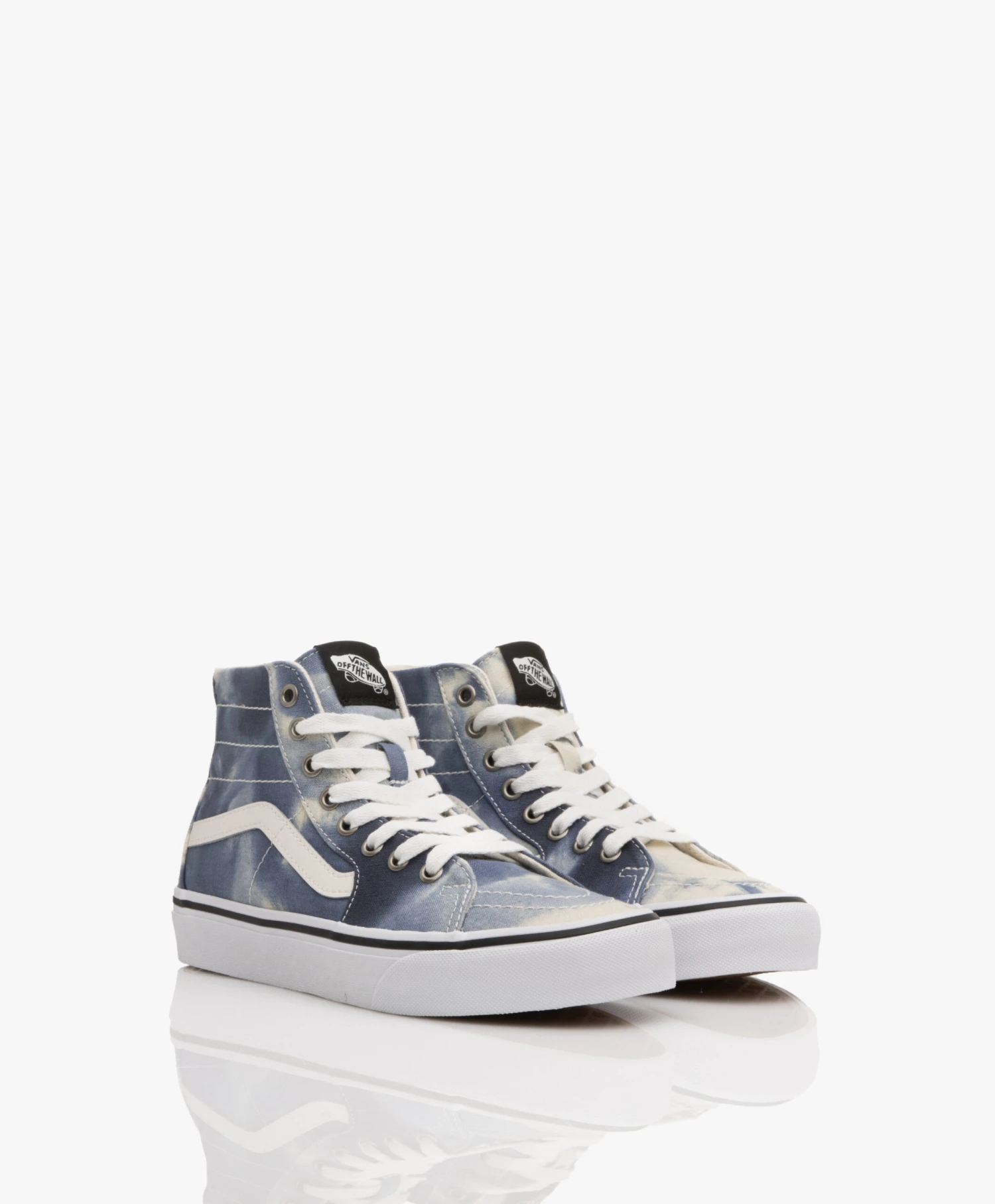 Een unieke variant op de o-zo iconische SK8-HI high-top sneakers van Vans. Deze sneakers vallen op met hun tie-dye print in blauwtinten: een match made in heaven met al je denim items. De mix van een canvas kwaliteit, doorgestikte details en een wit-leren logo is perfect op elkaar afgestemd. Een echte all-rounder die symbool staat voor comfort en ‘everyday’ stijl.