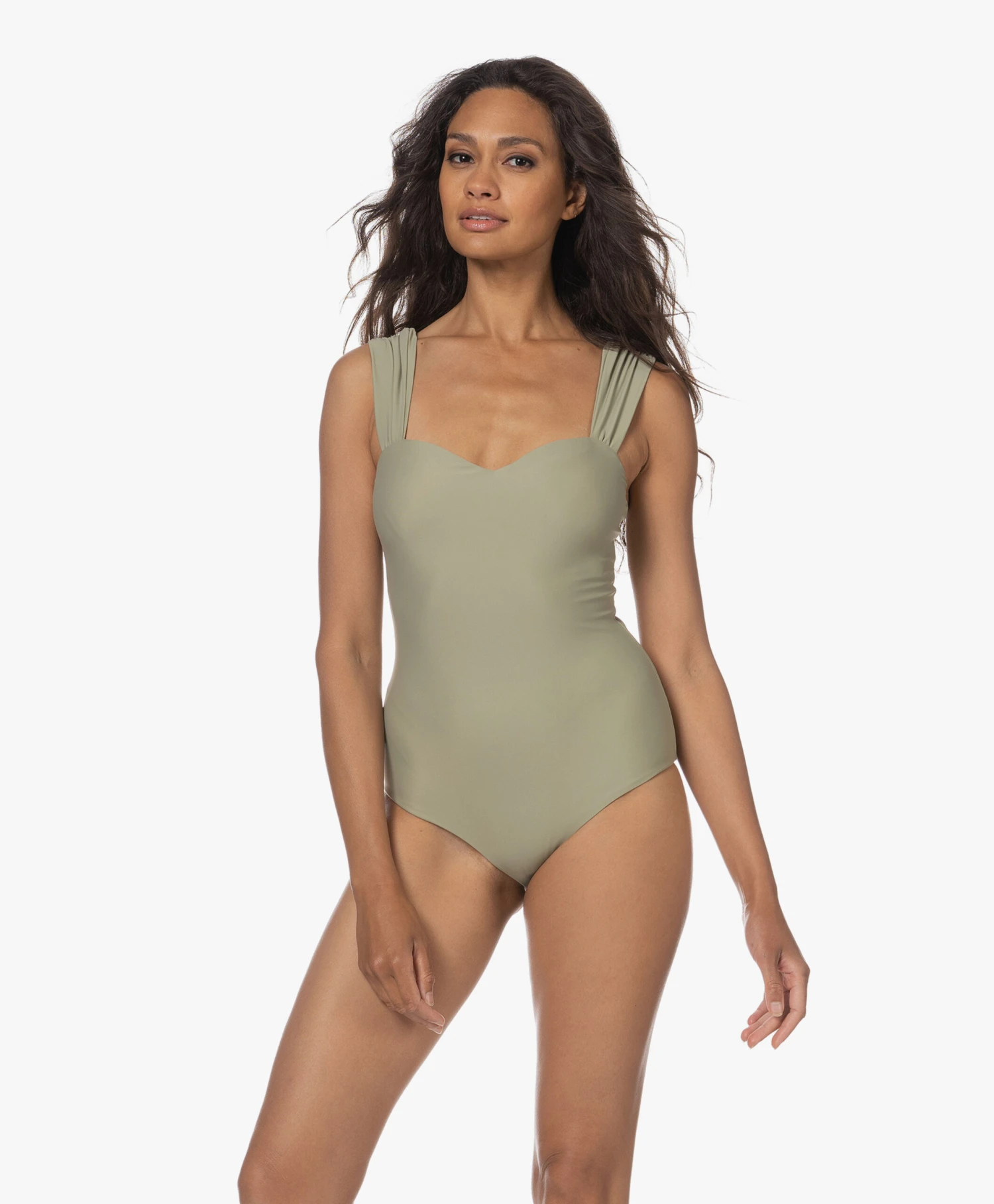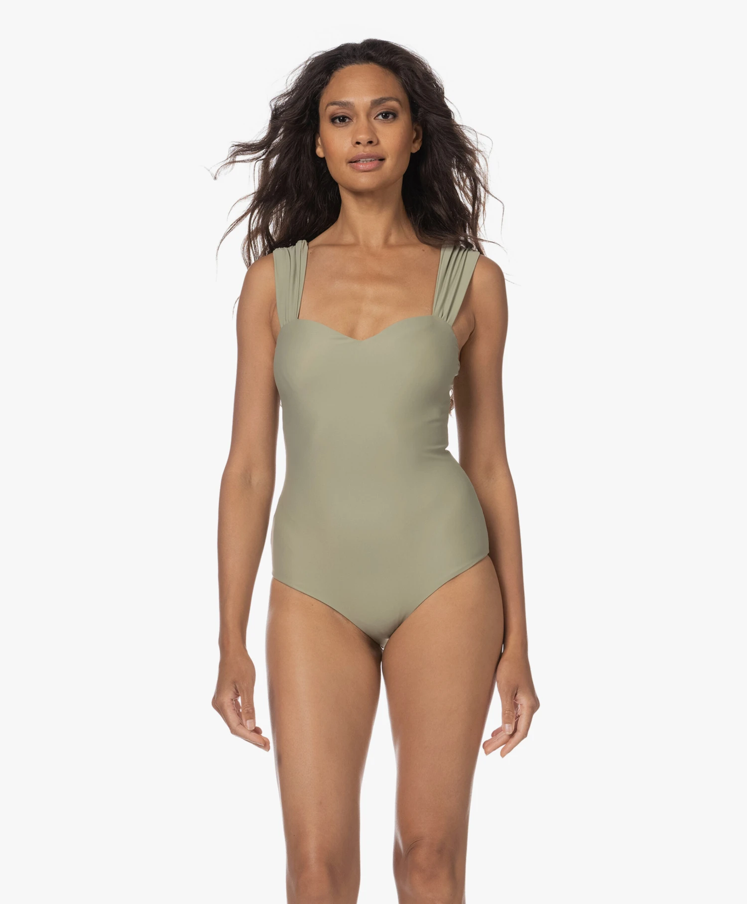 Zoals alles binnen de collectie van VIVEH, is ook het lindegroene Cinn badpak ontworpen om je curves te omarmen – in dit geval vrij letterlijk. Het ontwerp met ‘sweatheart’ halslijn en ingebouwde cups geeft je een klassiek en bovenal tijdloos silhouet. De extra-brede, verstelbare schouderbandjes zijn niet alleen een bepalend onderdeel voor de stijlvolle look, ze zorgen ook voor voldoende ondersteuning.