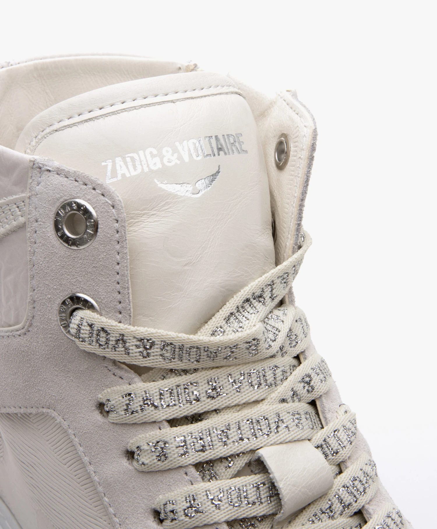 – Klassieke vetersluiting, ton-sur-ton veters met zilverkleurige merknaam
