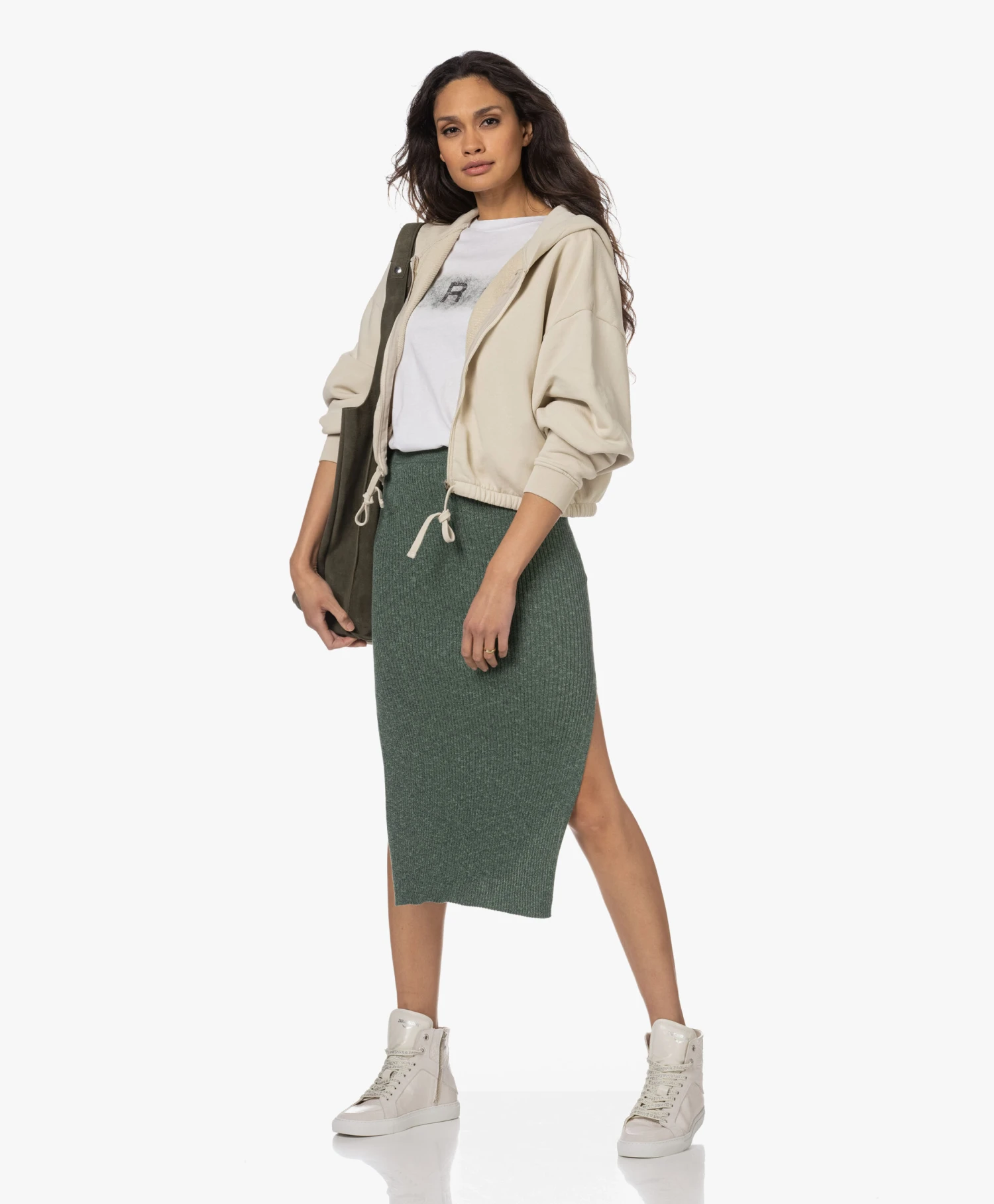 – Ritssluiting aan de binnenkant, zilverkleurige hardware